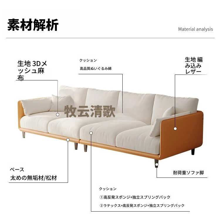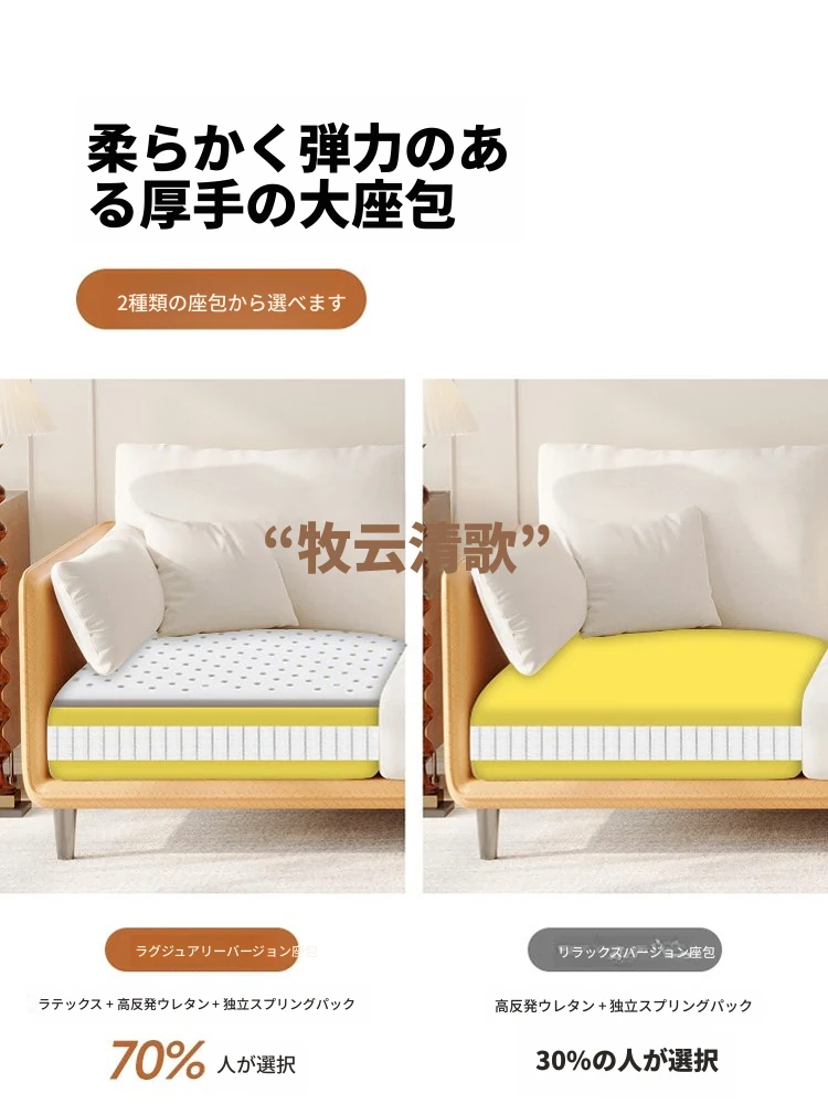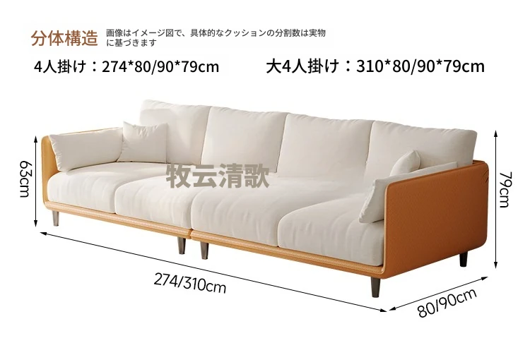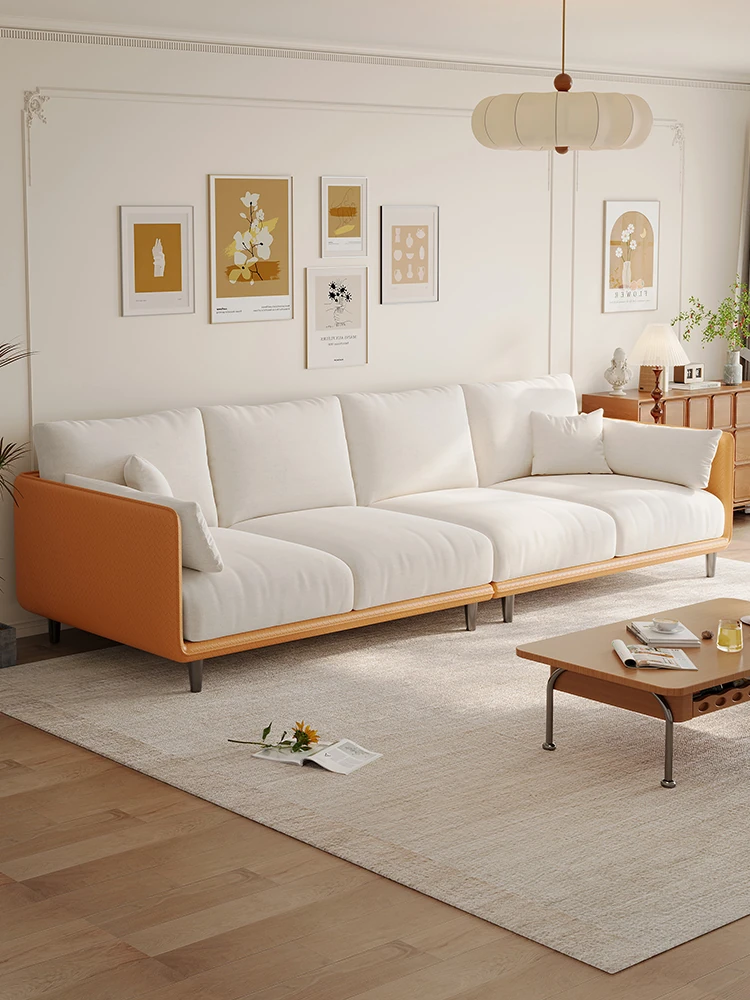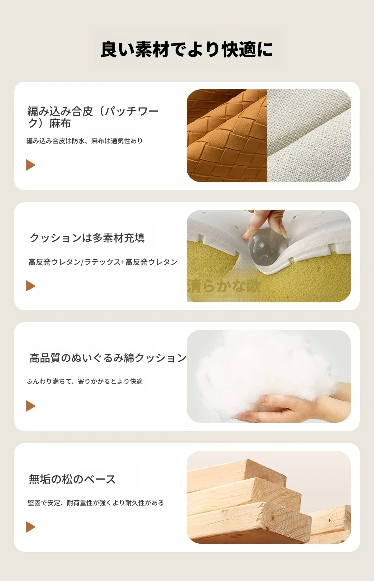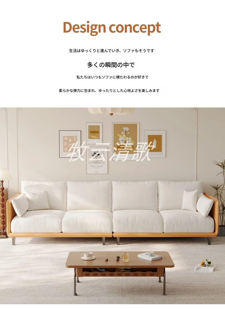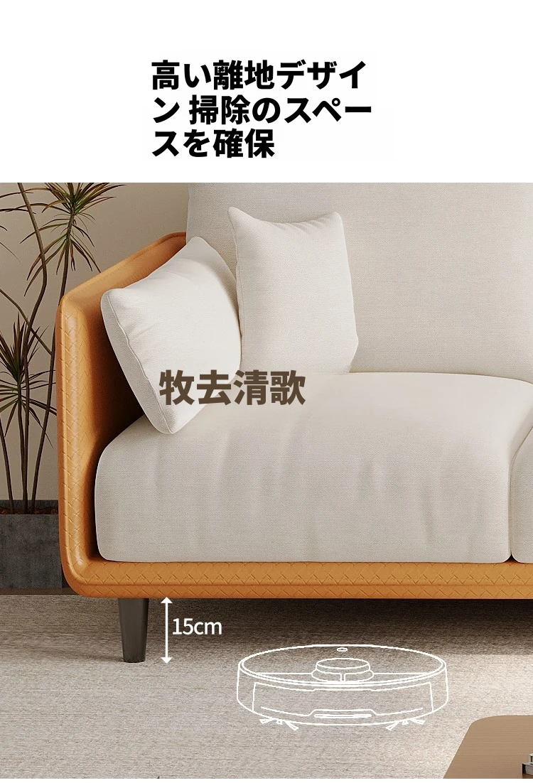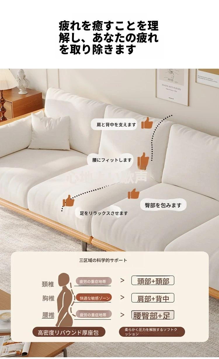 フランス風クリーミーなデザインの洗えるリビングソファ!現代的でシンプルな小型アパートや民宿にぴったりなストレート布製ソファ。快適さとスタイリッシュさを両立させたおしゃれなインテリアを実現!