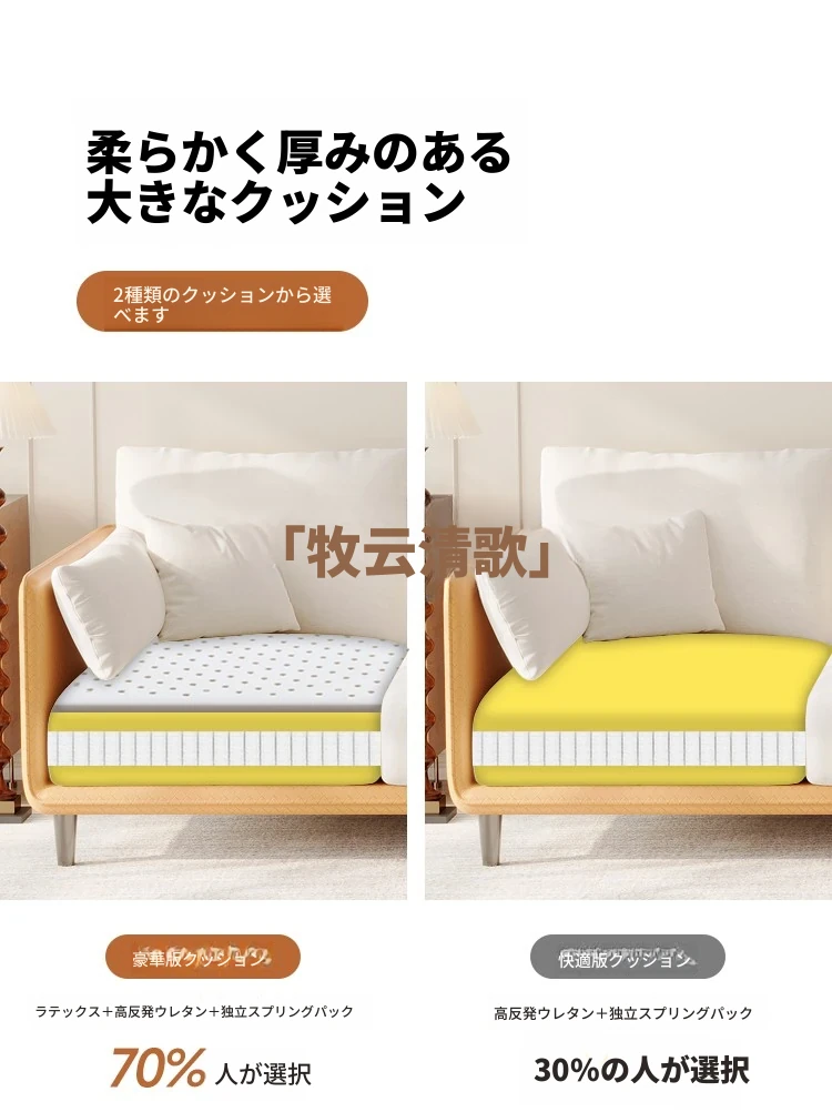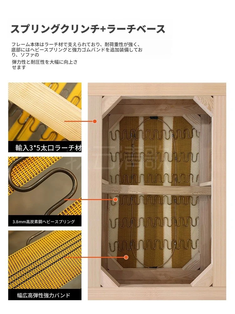 四人掛け2.7m|弾力のある座り心地【水感ラテックスクッション+太めの輸入無垢木フレーム