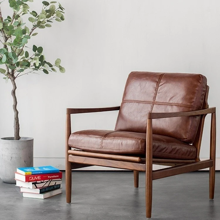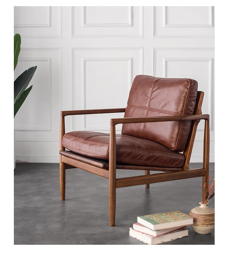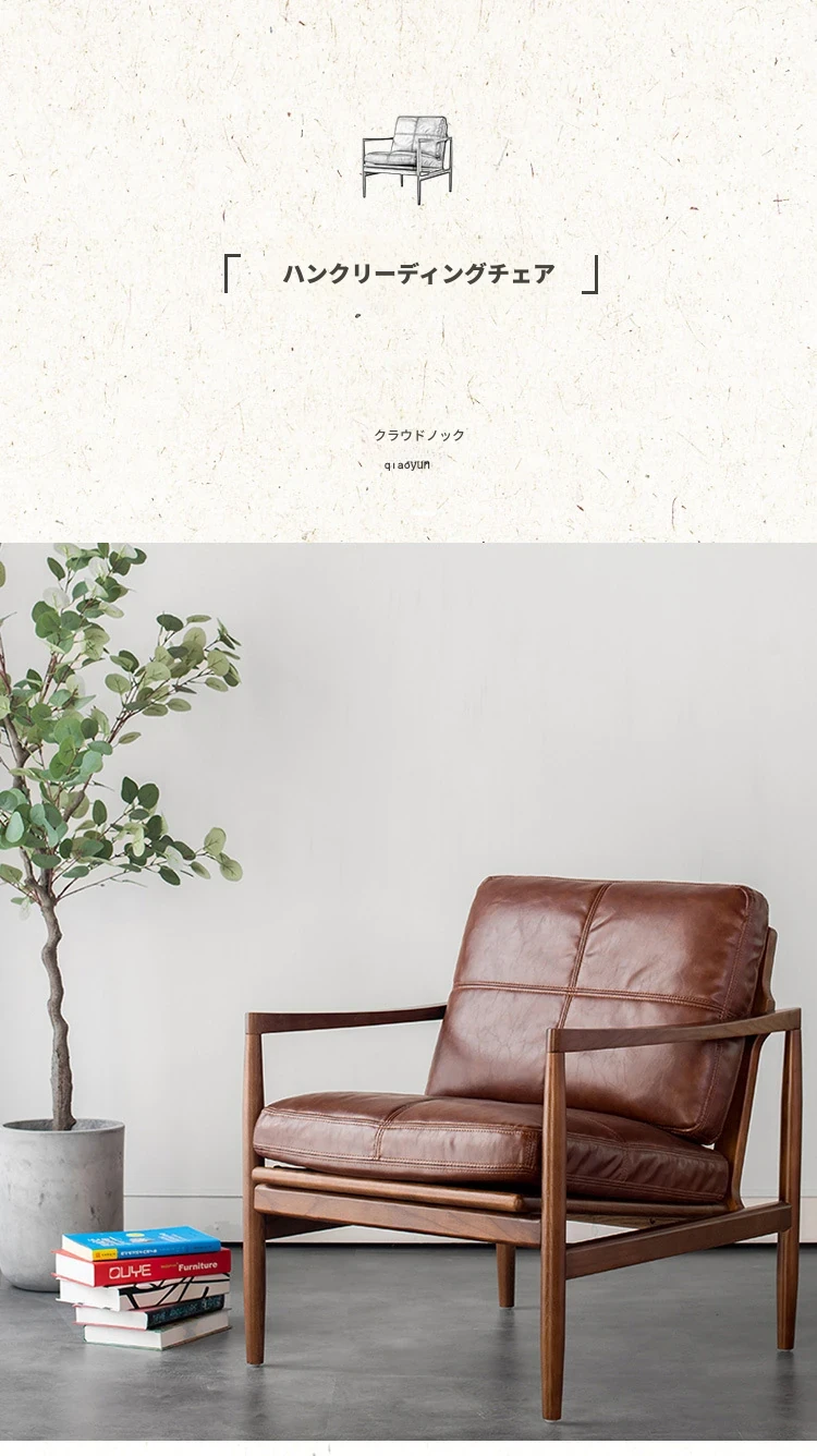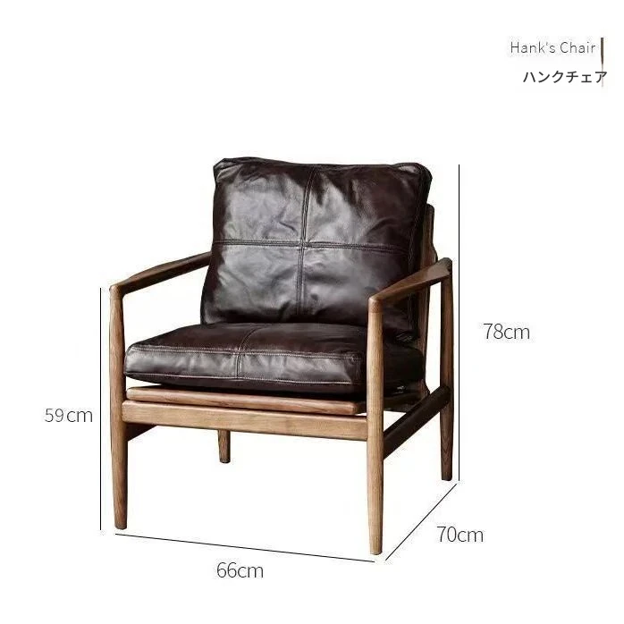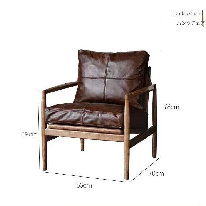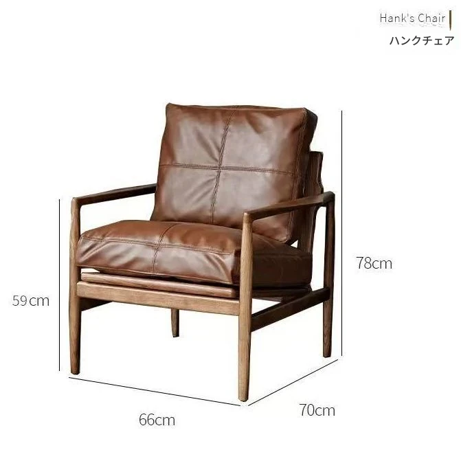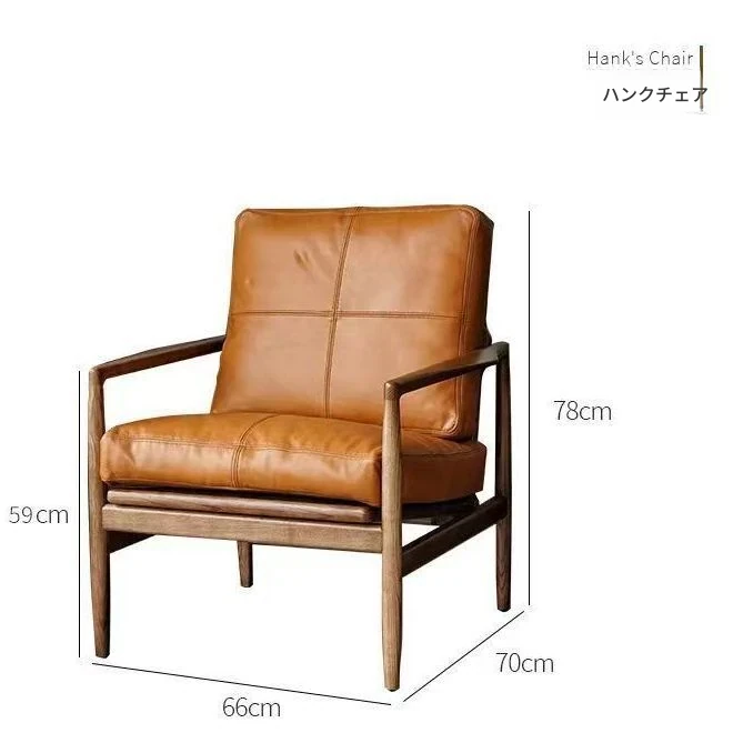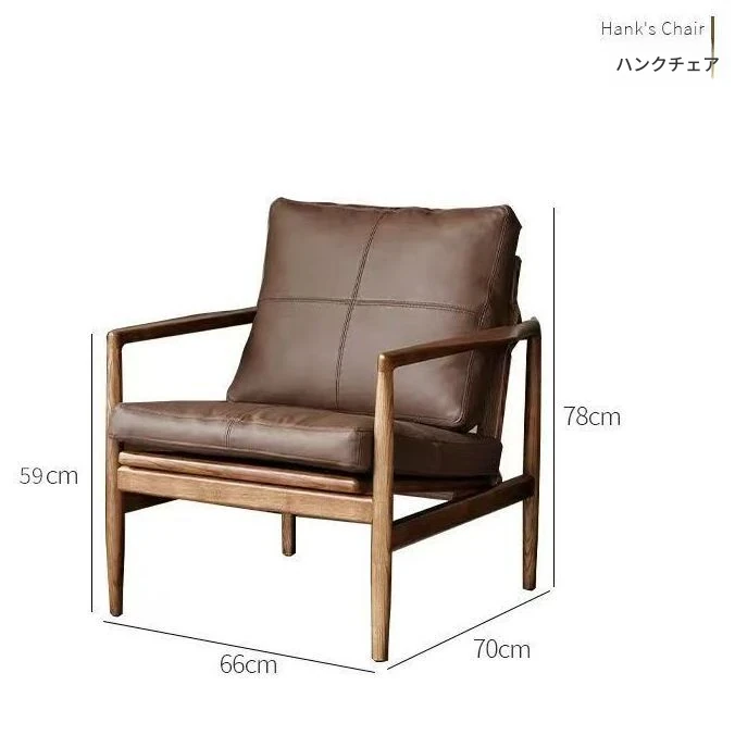 ハンクチェア月光ソファチェア|本革&無垢材使用|北欧デザインのヴィンテージスタイル|高級感あふれるモダンな軽奢書斎椅子|おしゃれで快適な空間を演出します!