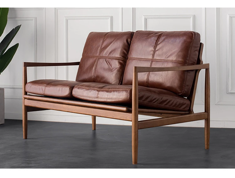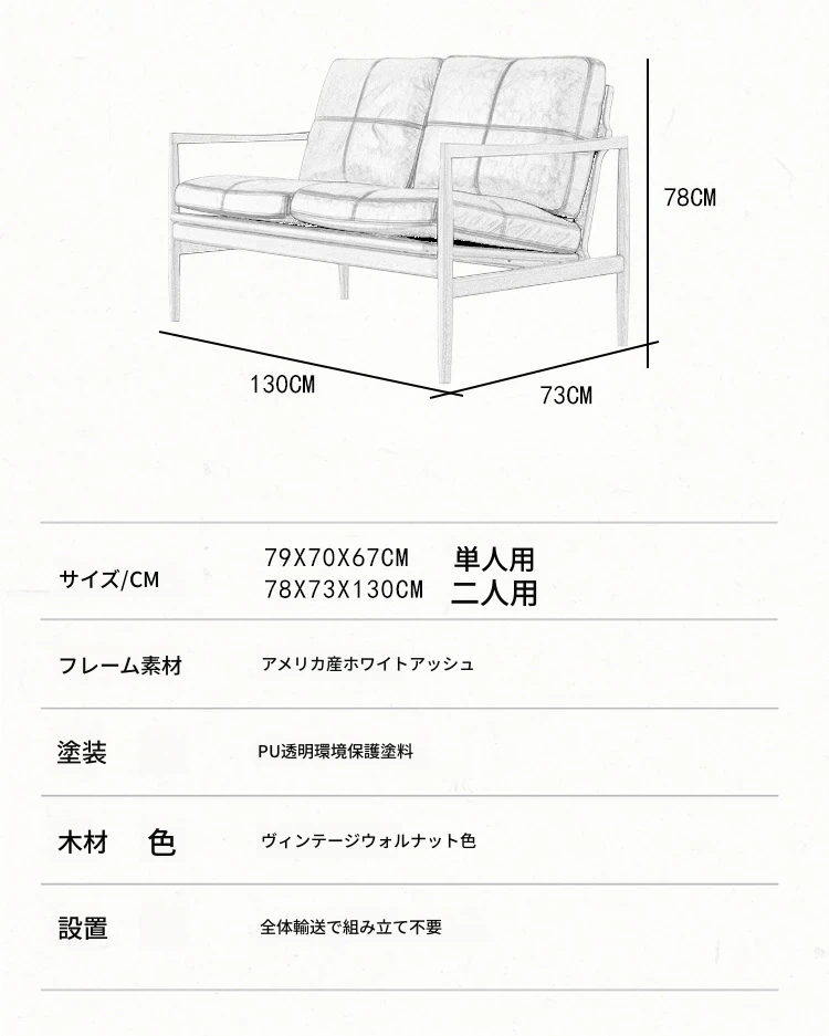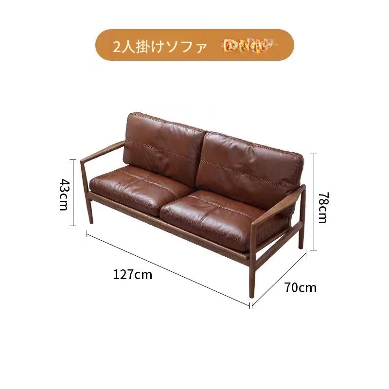浅茶色の皮+クルミ色の木枠(牛皮)二人用