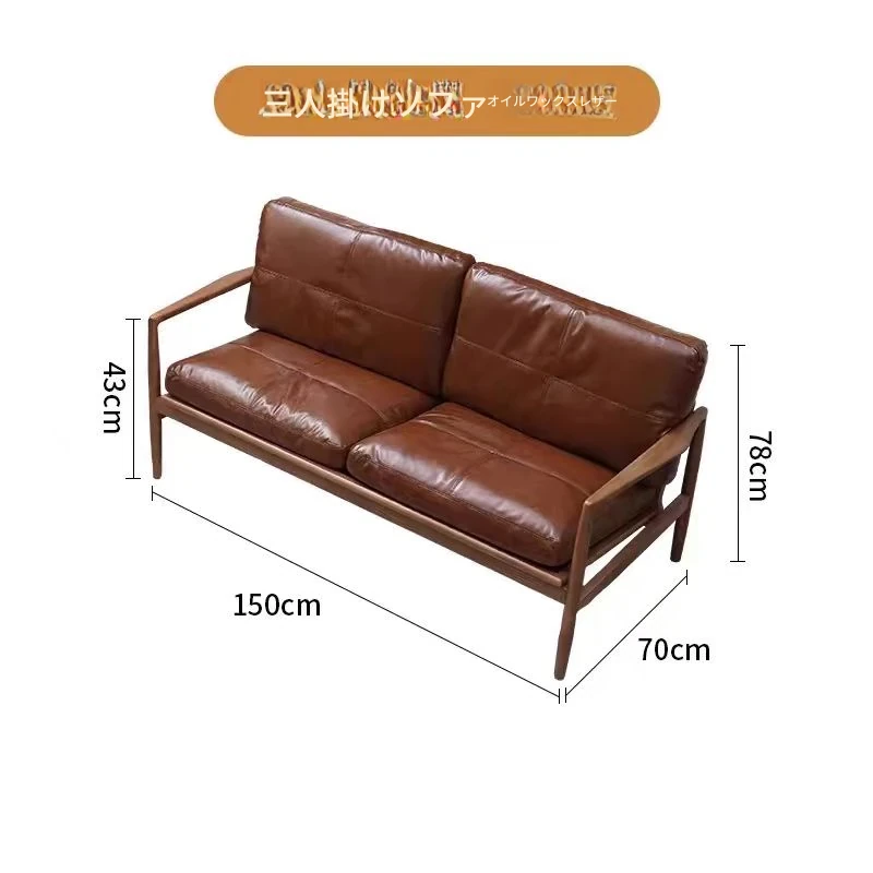 浅茶色の皮+クルミ色の木枠(牛皮)三人用