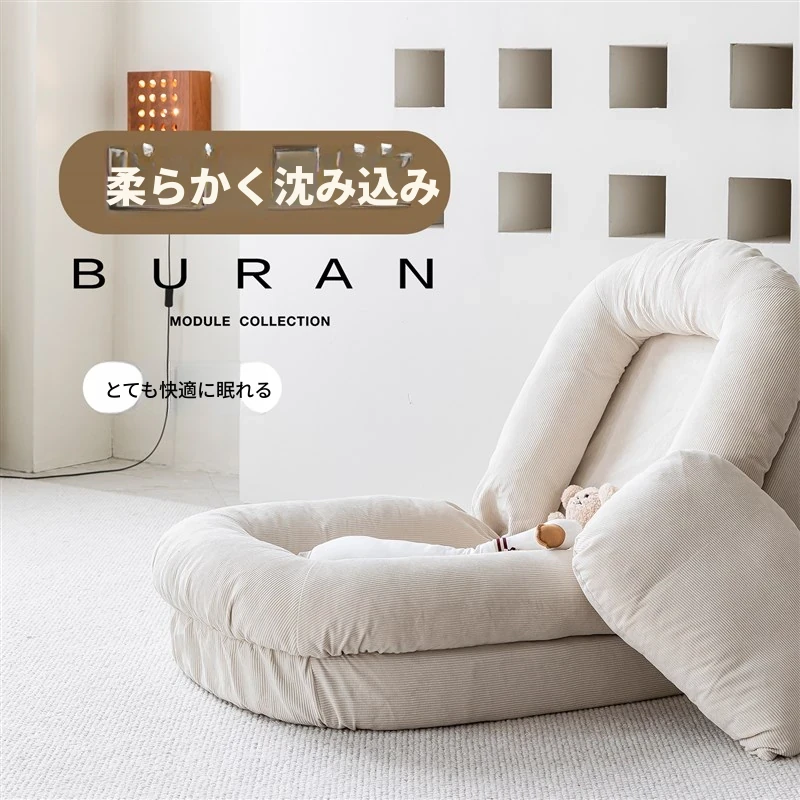 人間用ドッグハウス風クリームカラーの折りたたみモジュラー畳ソファベッド、防水・洗濯可能、くつろぎのリラックスソファ!