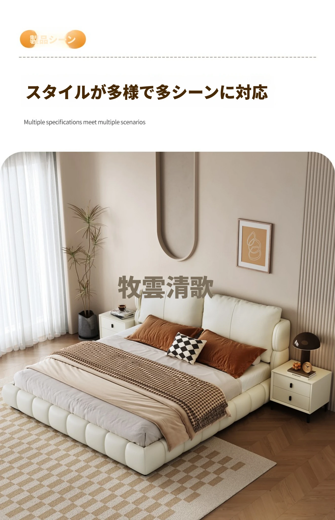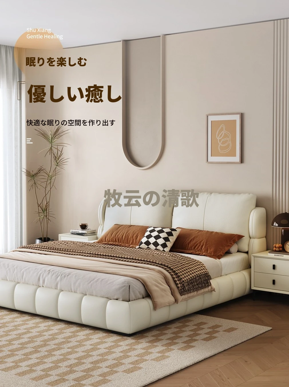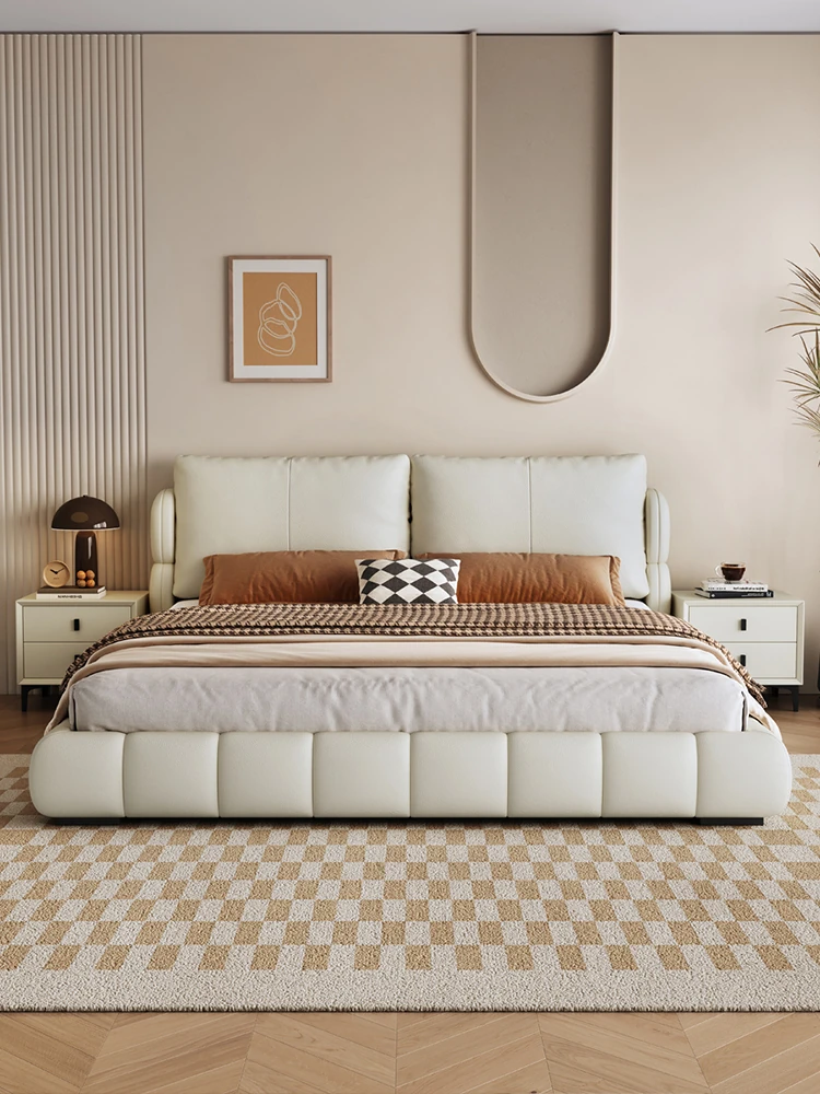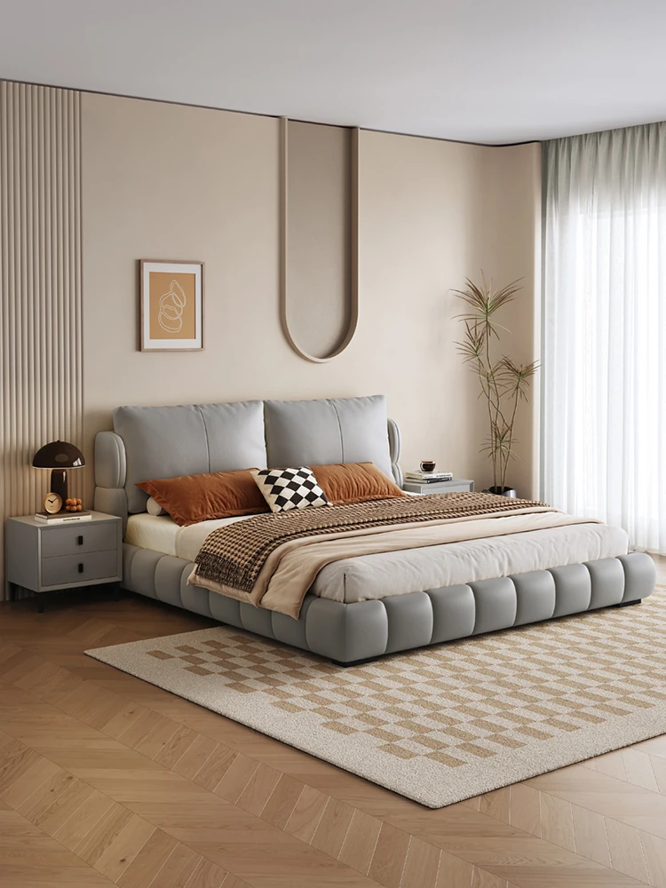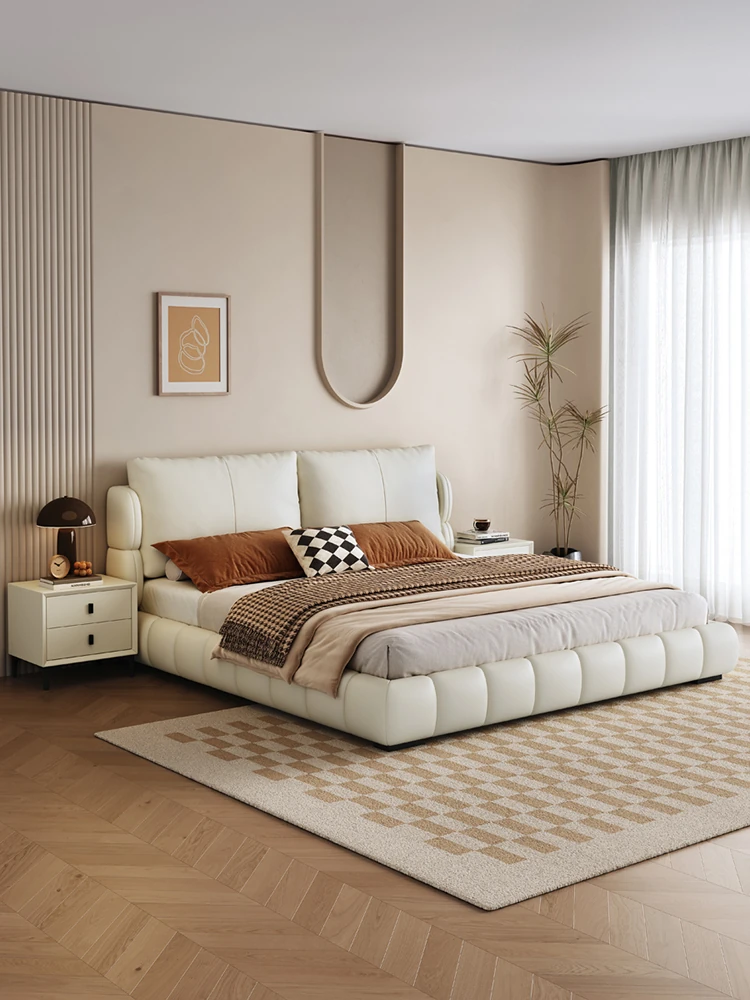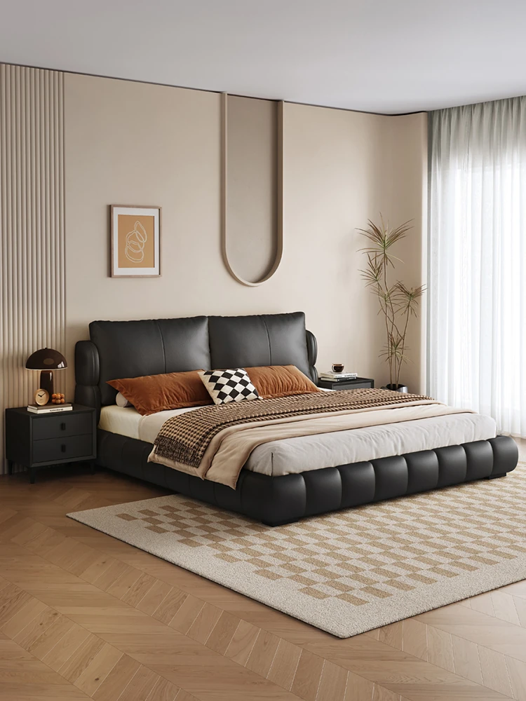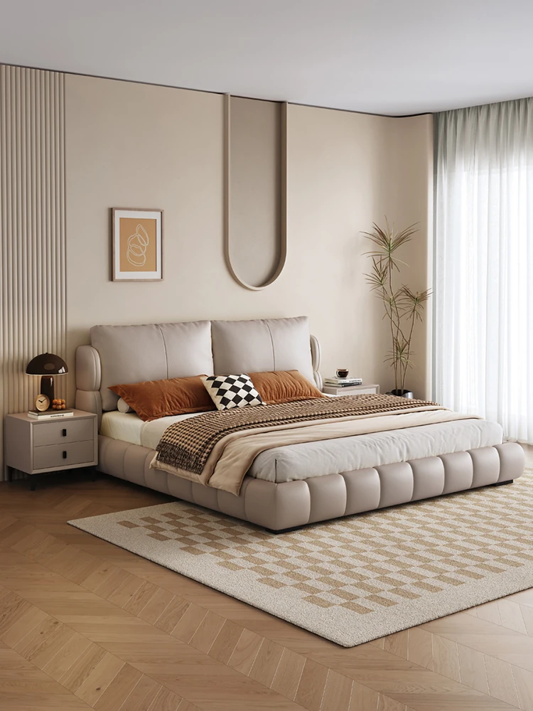 イタリアンミニマリスト本革ダブルベッド|現代的でシンプルなデザイン、包み込まれるような快適さを提供するソフトレザー婚礼ベッド。おしゃれで洗練された寝室を演出!