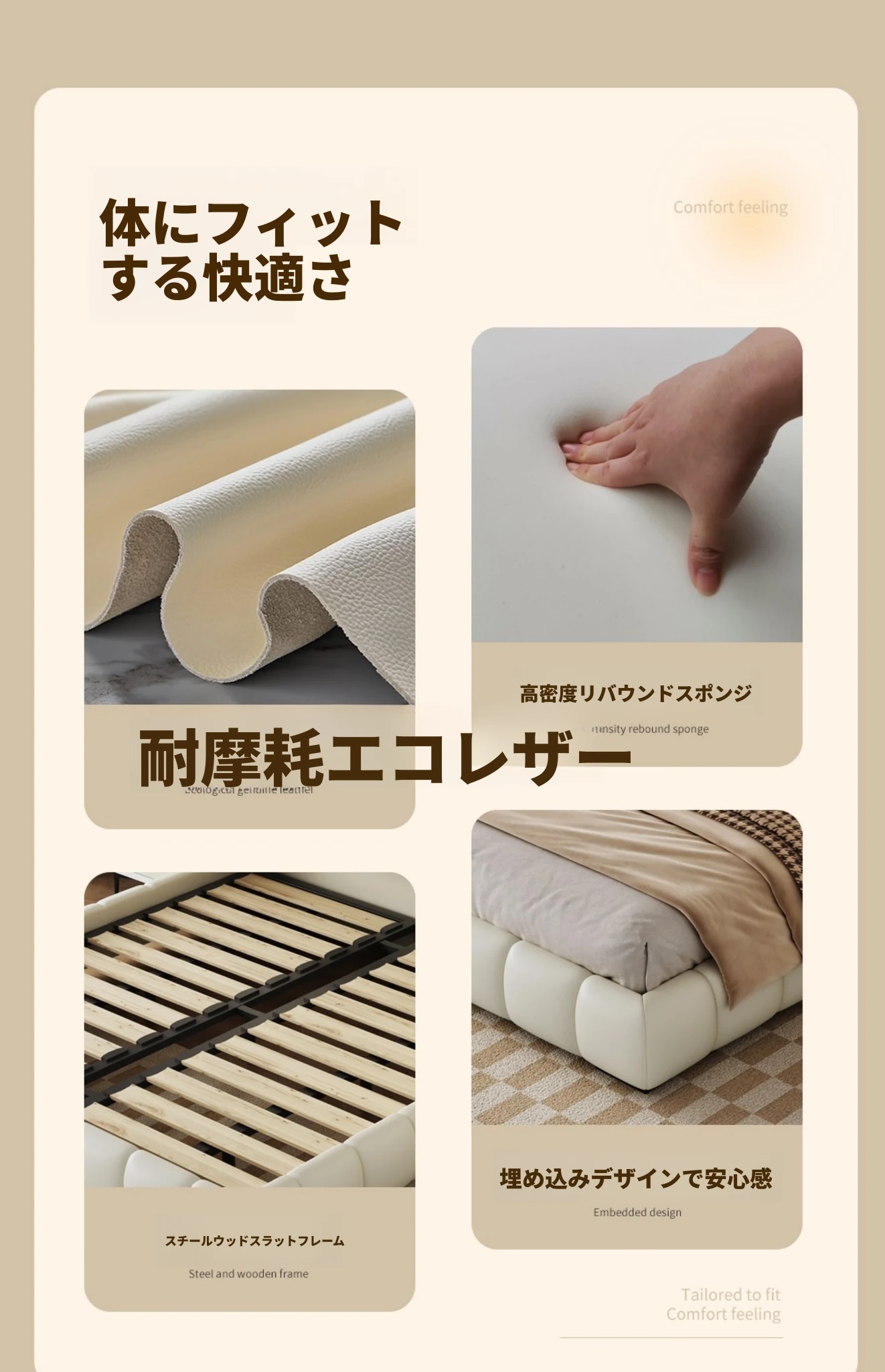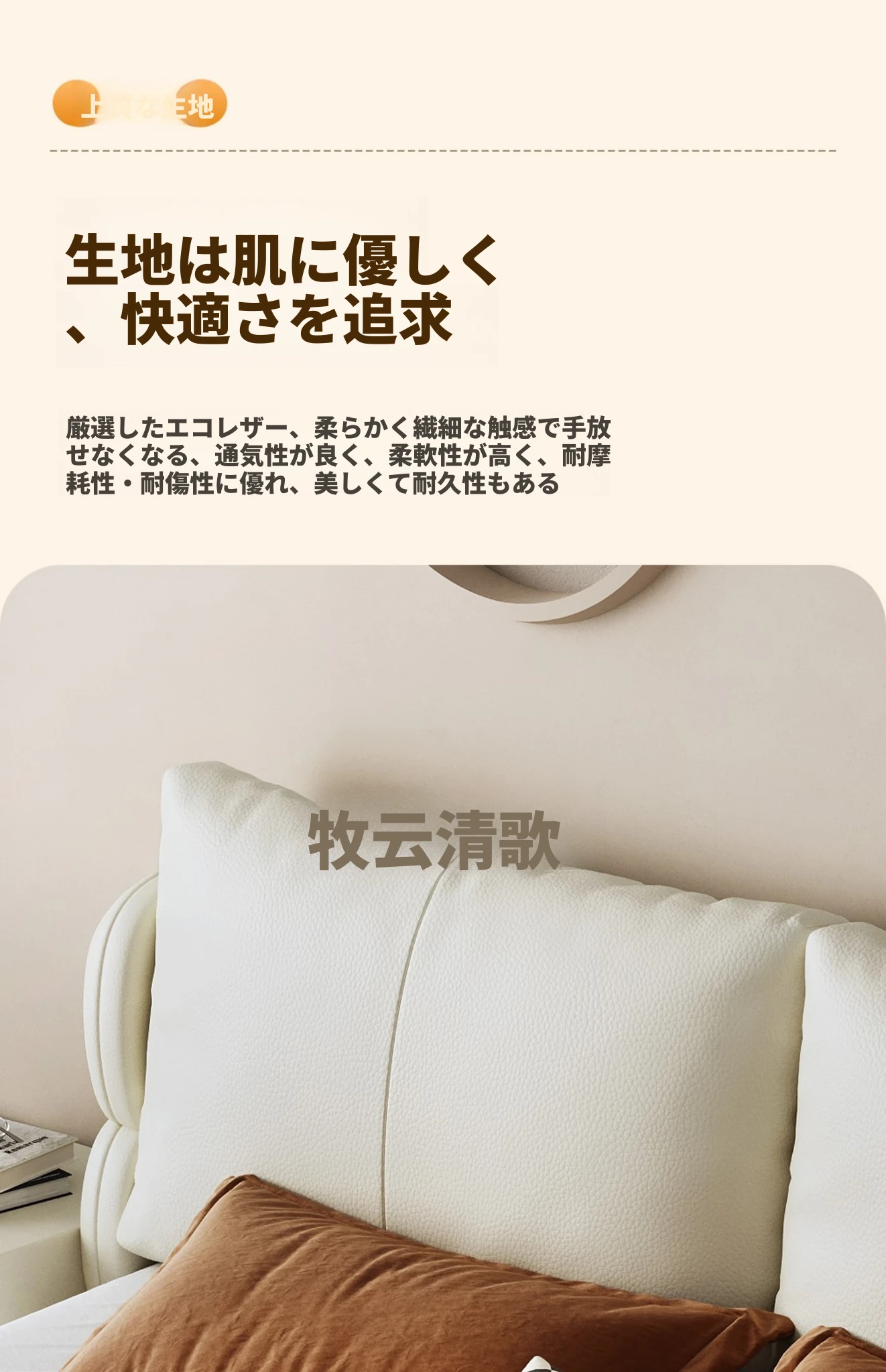 【耐磨耐刮エコレザー】シングルベッド+エイジングアートシルクマットレス