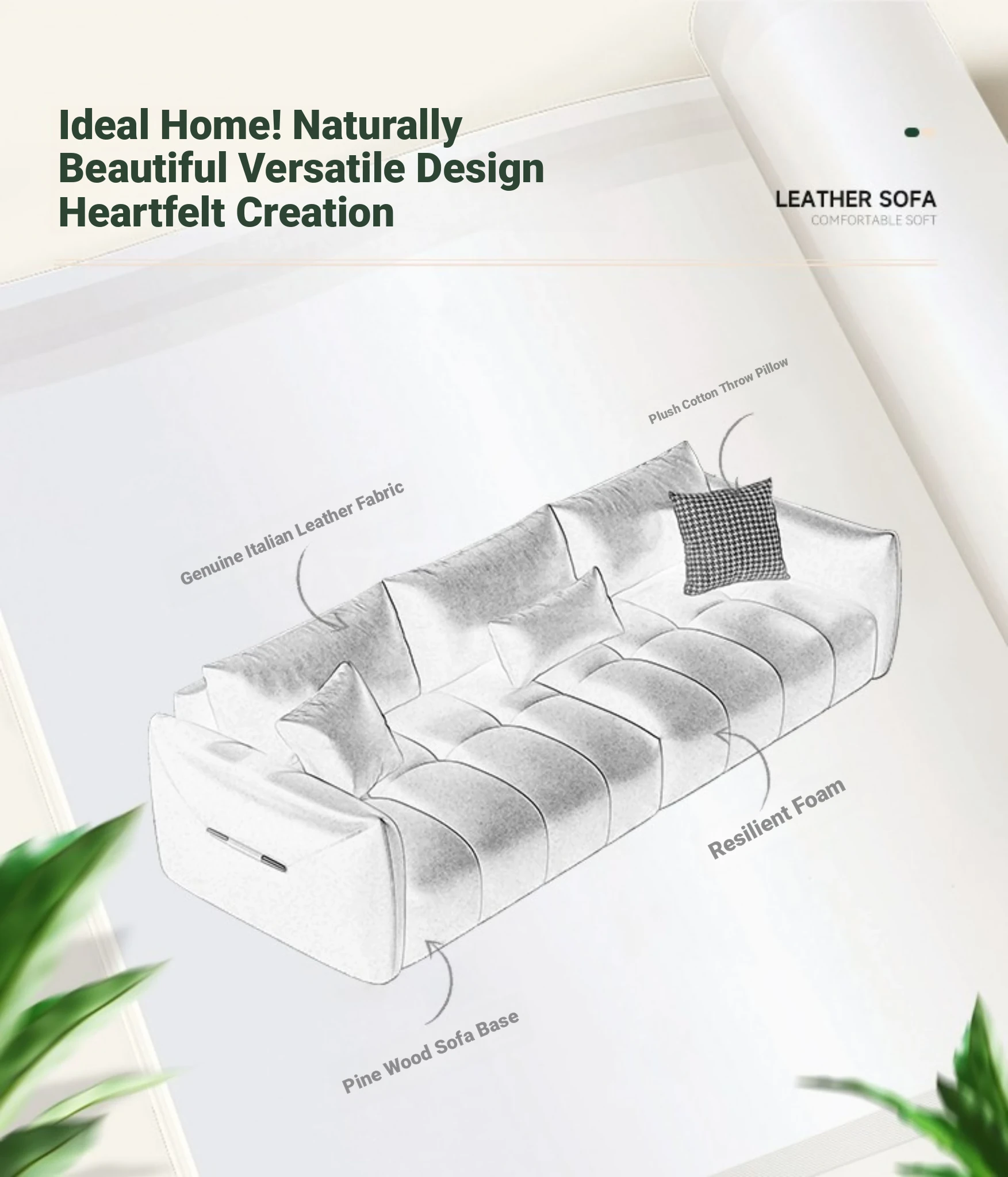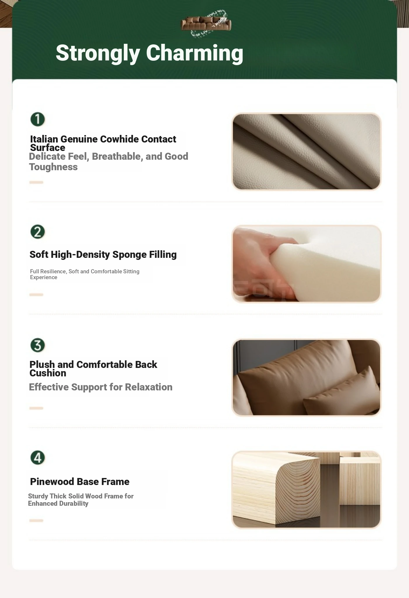 Four people 102.36 ins [Italian real cowhide + Violet second rebound sponge + Import larch base]]