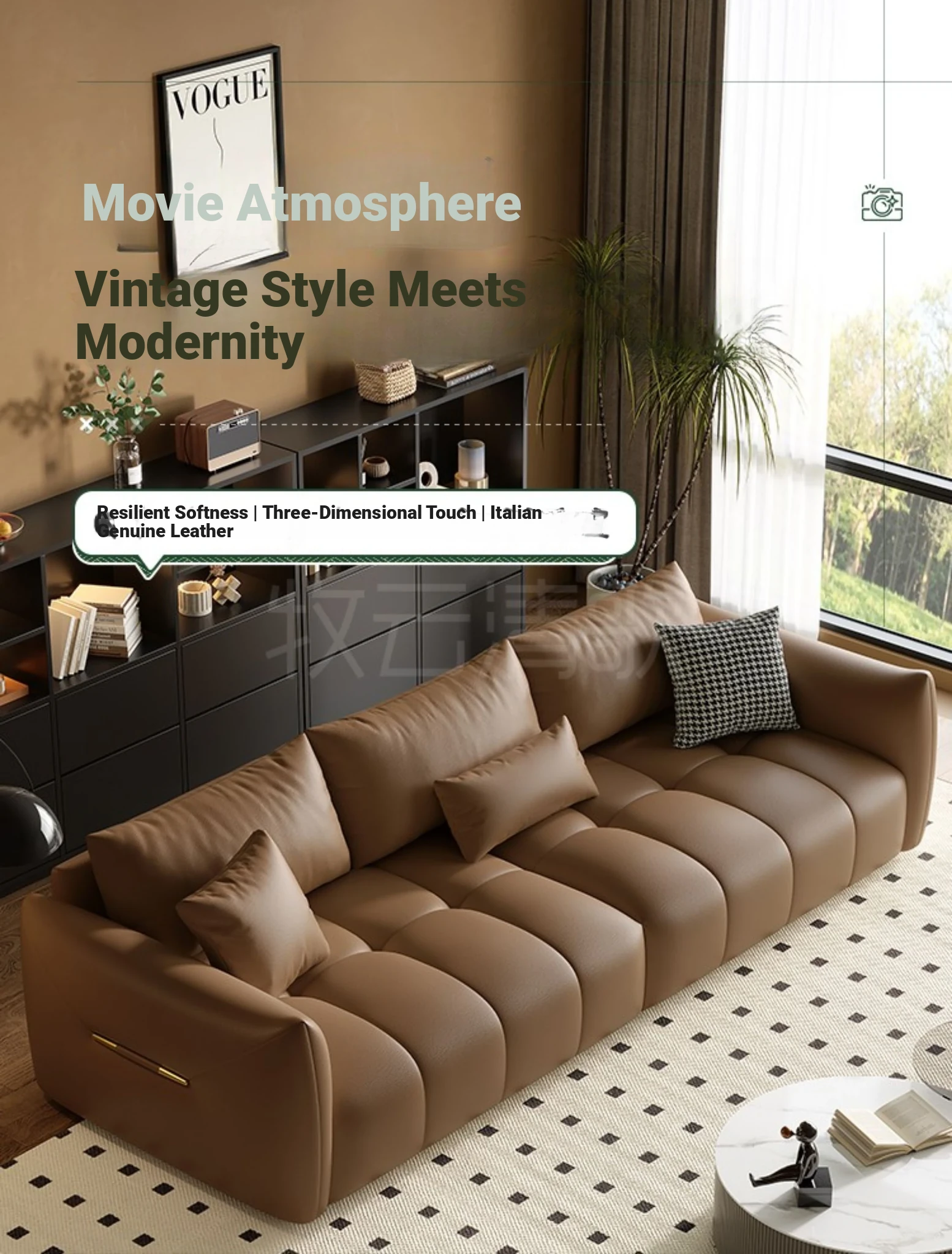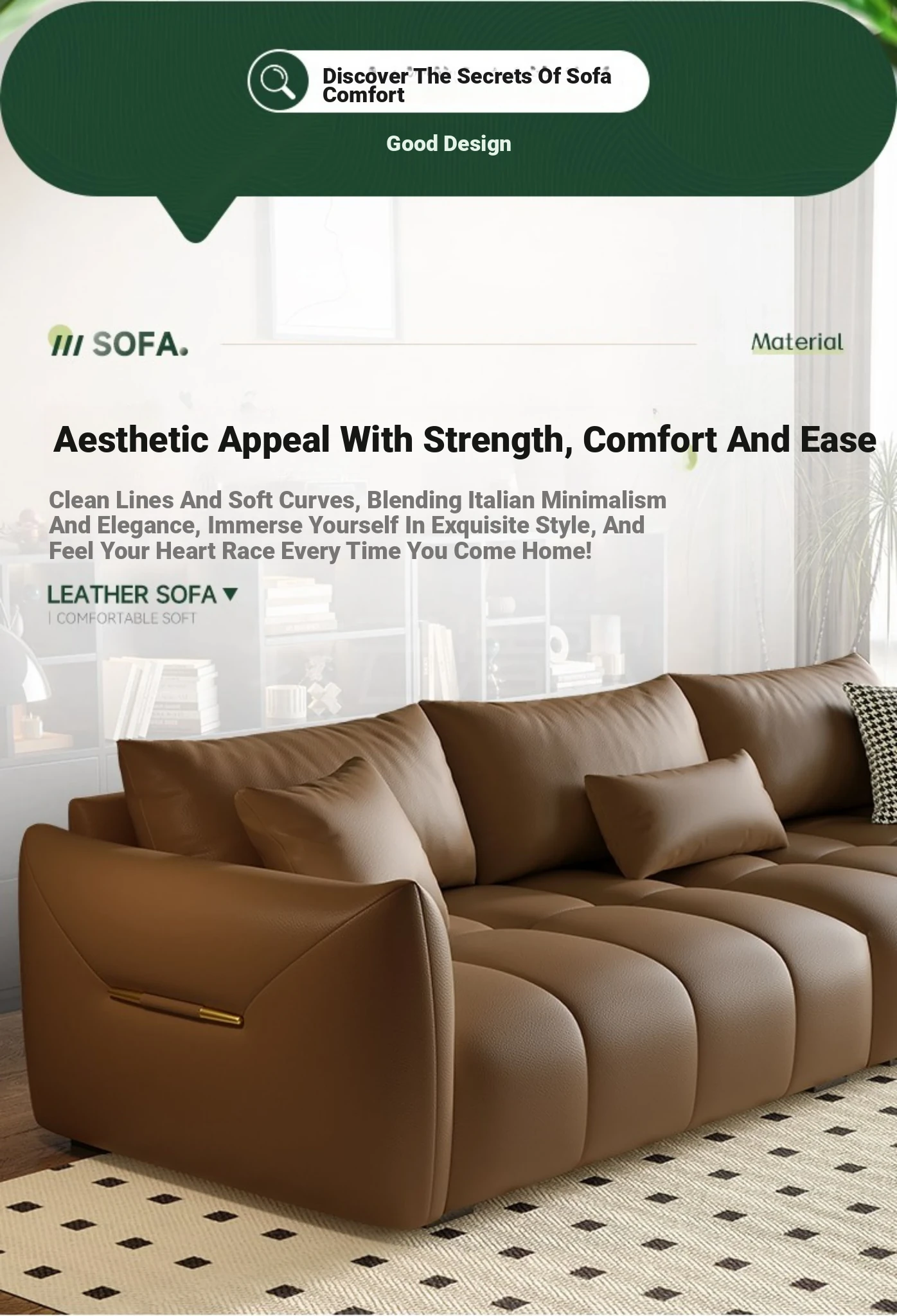 Italian Minimalist Genuine Leather Sofa - Luxurious Yet Affordable for Small to Medium Living Rooms - Perfect for 3-4 People, Sleek Piano Key Design