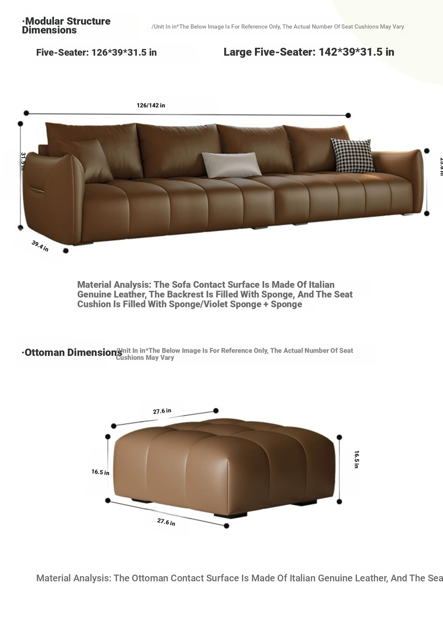 Five people 125.98 ins [Italian real cowhide + Violet second rebound sponge + Import larch base]]