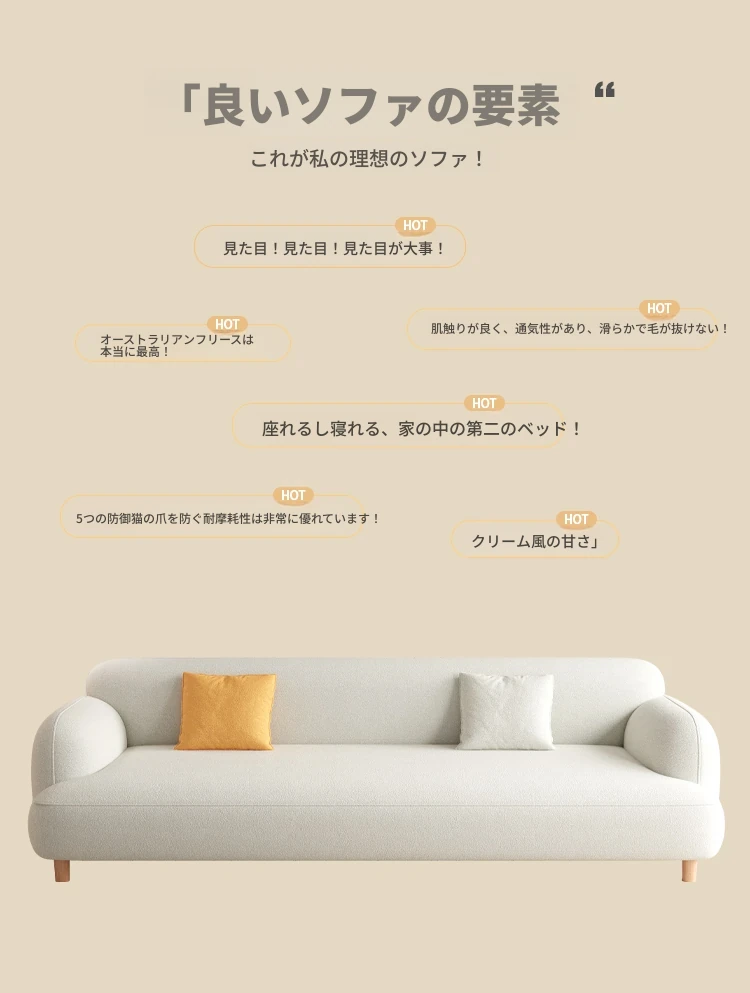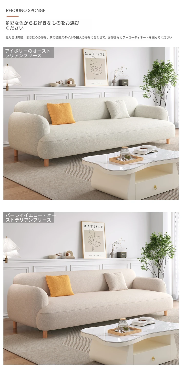 イタリアンミニマルな軽やかさを持つオーストラリア産フリース使用の小型ストレートソファ【2025年新作】。モダンでシンプル、インスタ映え間違いなしのリビングにぴったり!