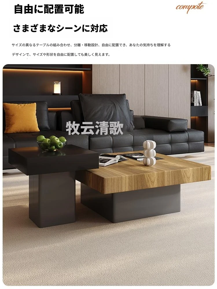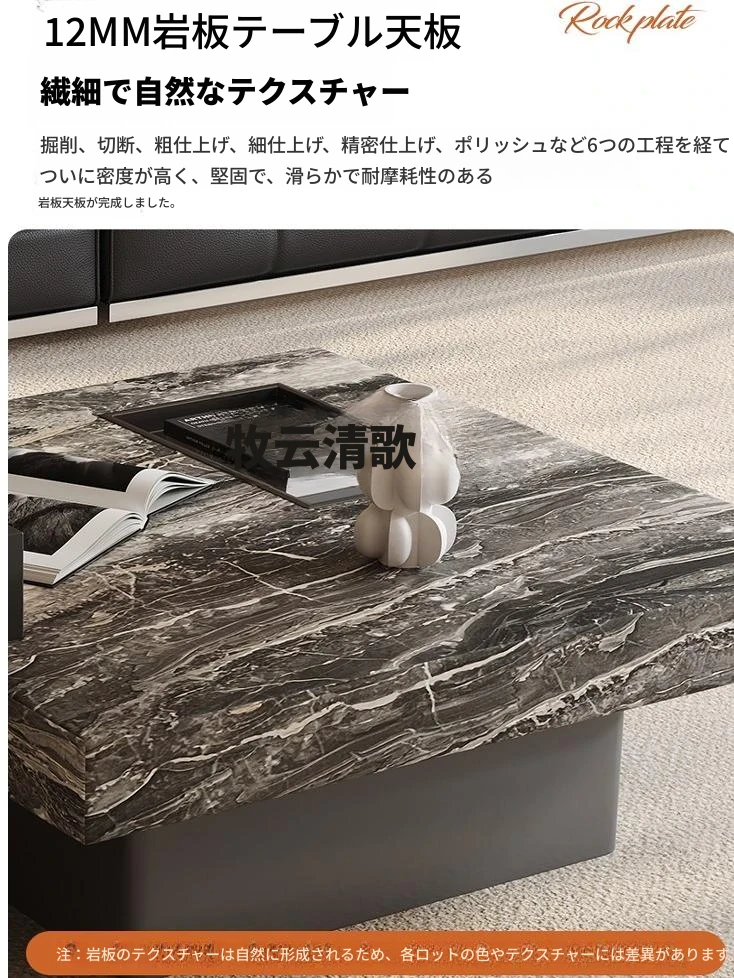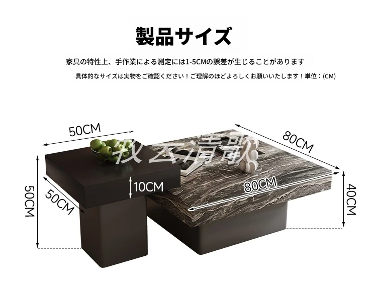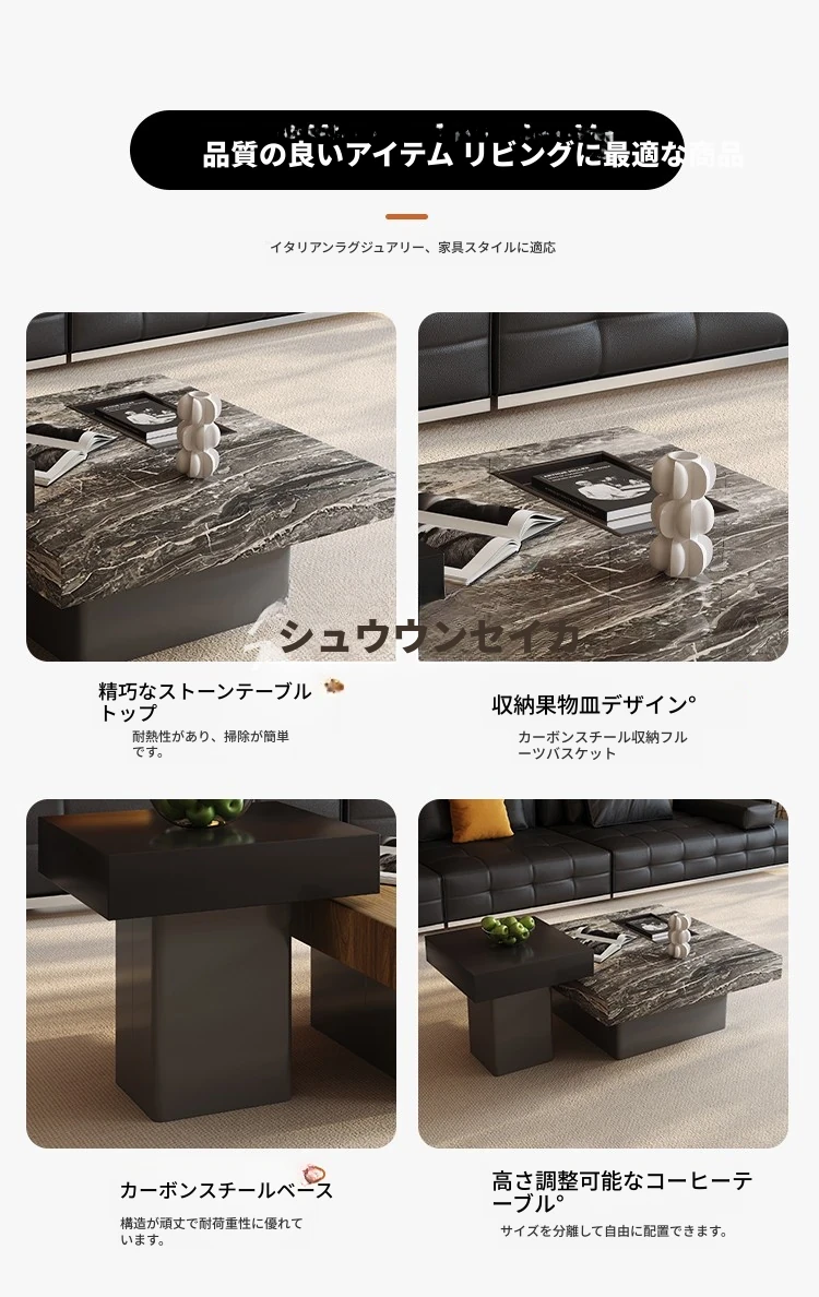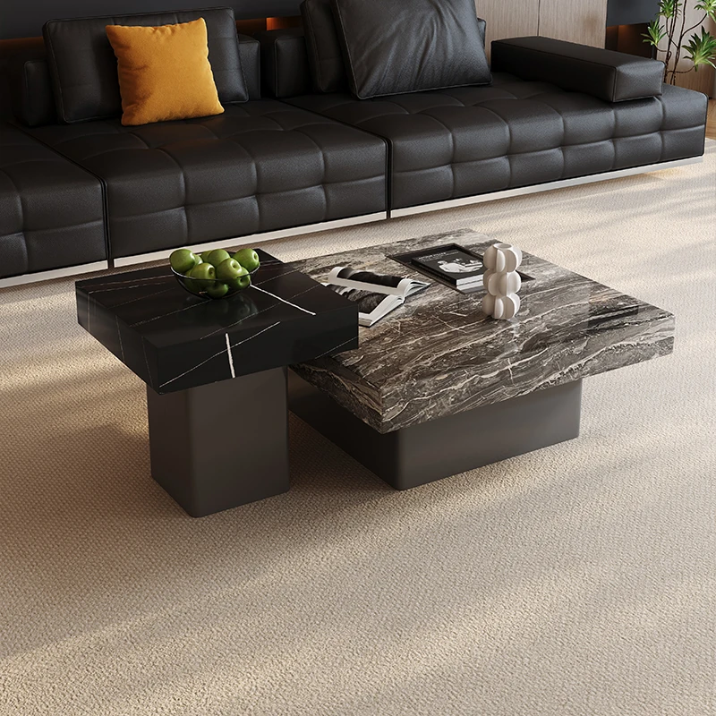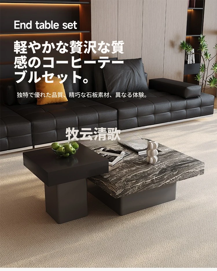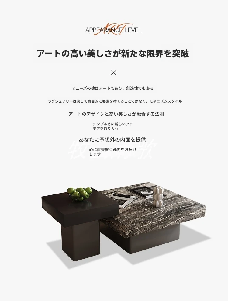イタリアンミニマリズムの大理石コーヒーテーブル - モダンでシンプル、小型住居に最適なラグジュアリーなデザイン。リビングルームにぴったりなスクエアテーブルのセット。