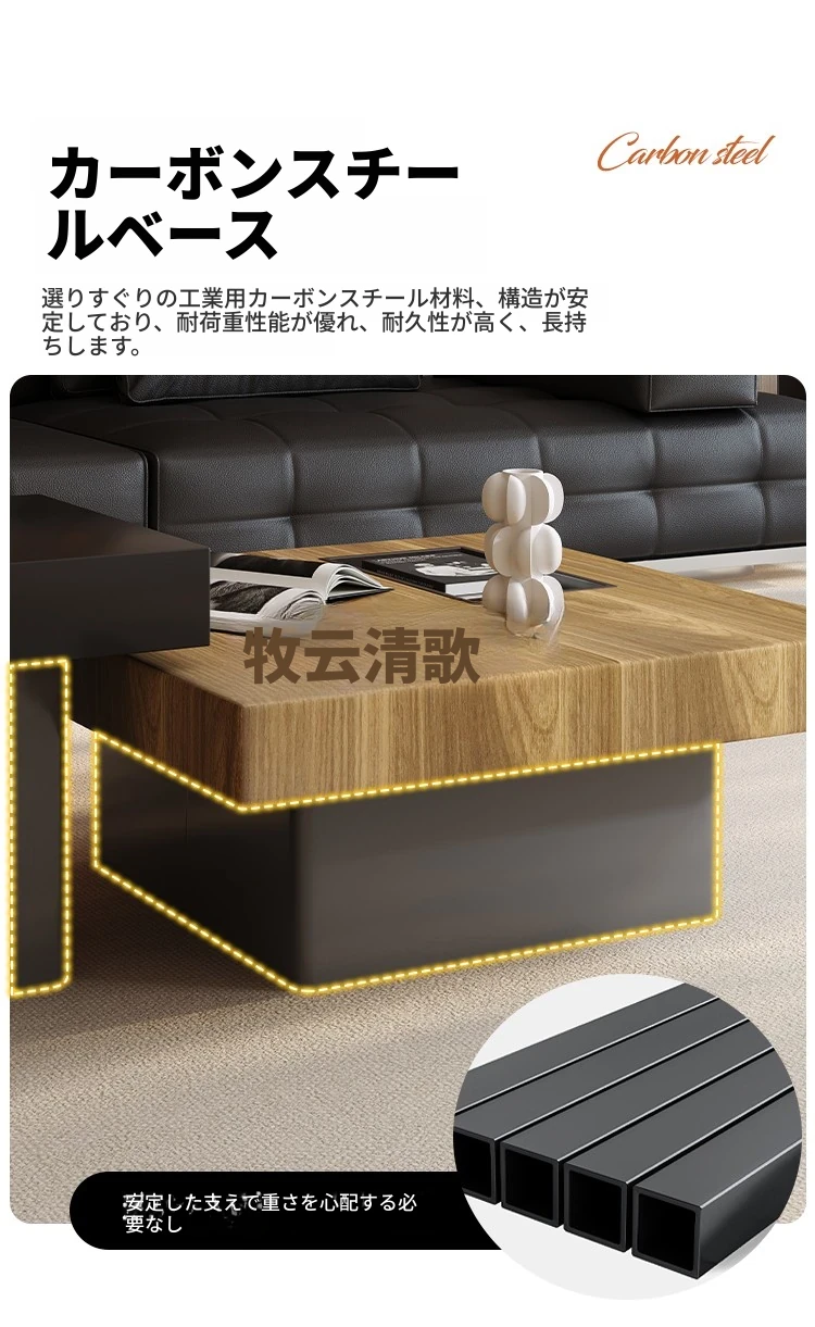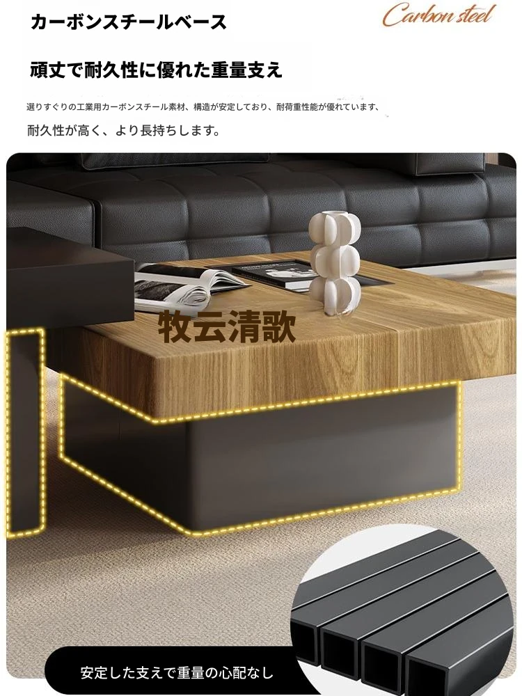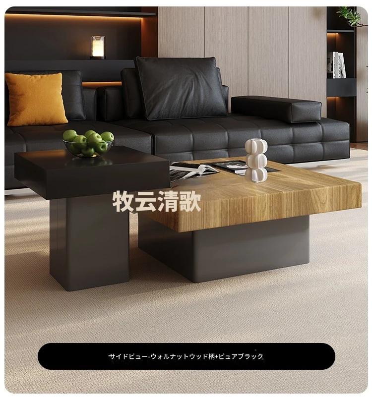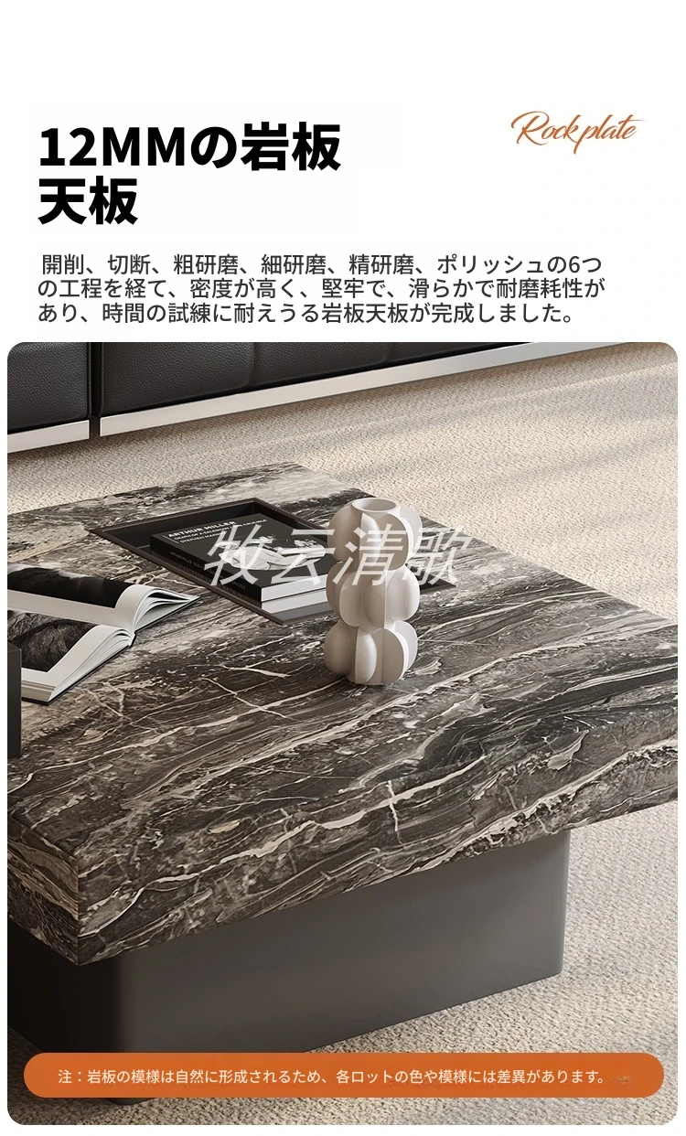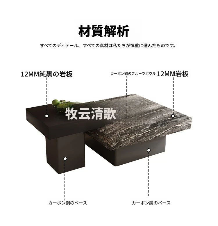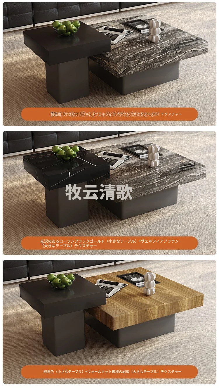 光沢のあるローレンブラックゴールド(小さなテーブル)+ウォールナット調の岩板(大きなテーブル)