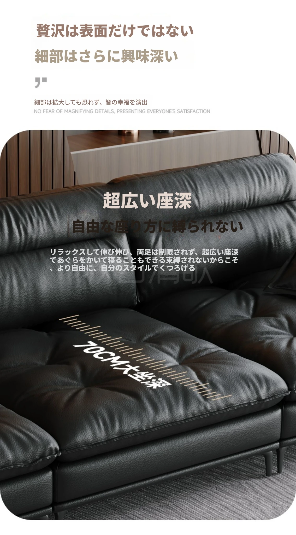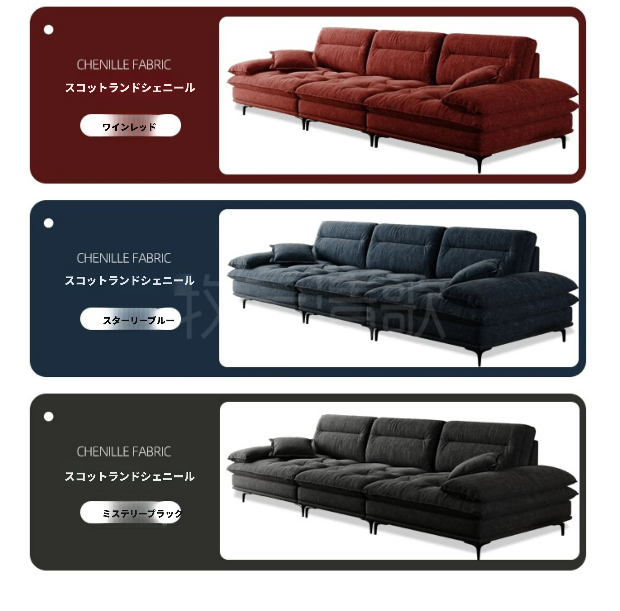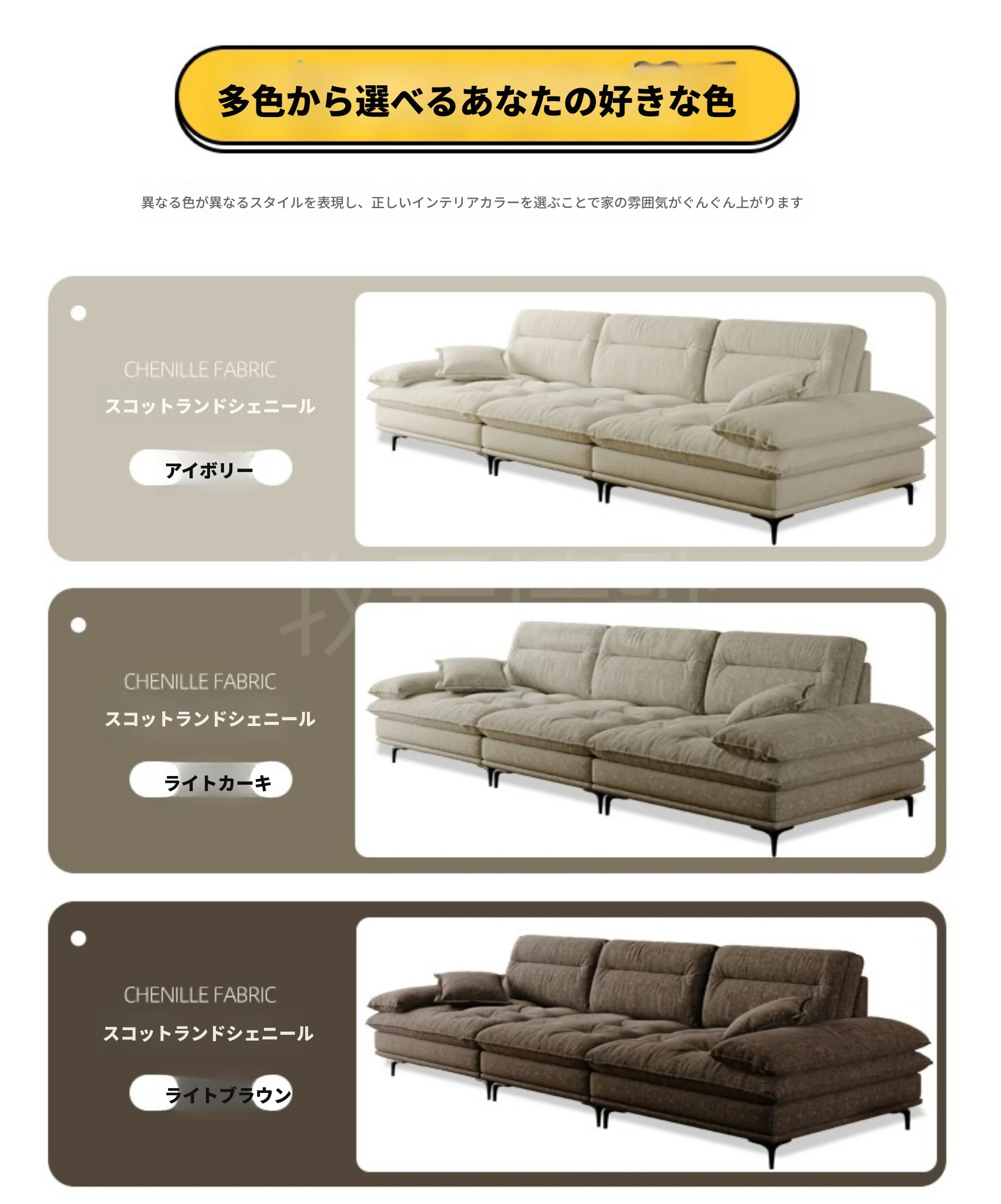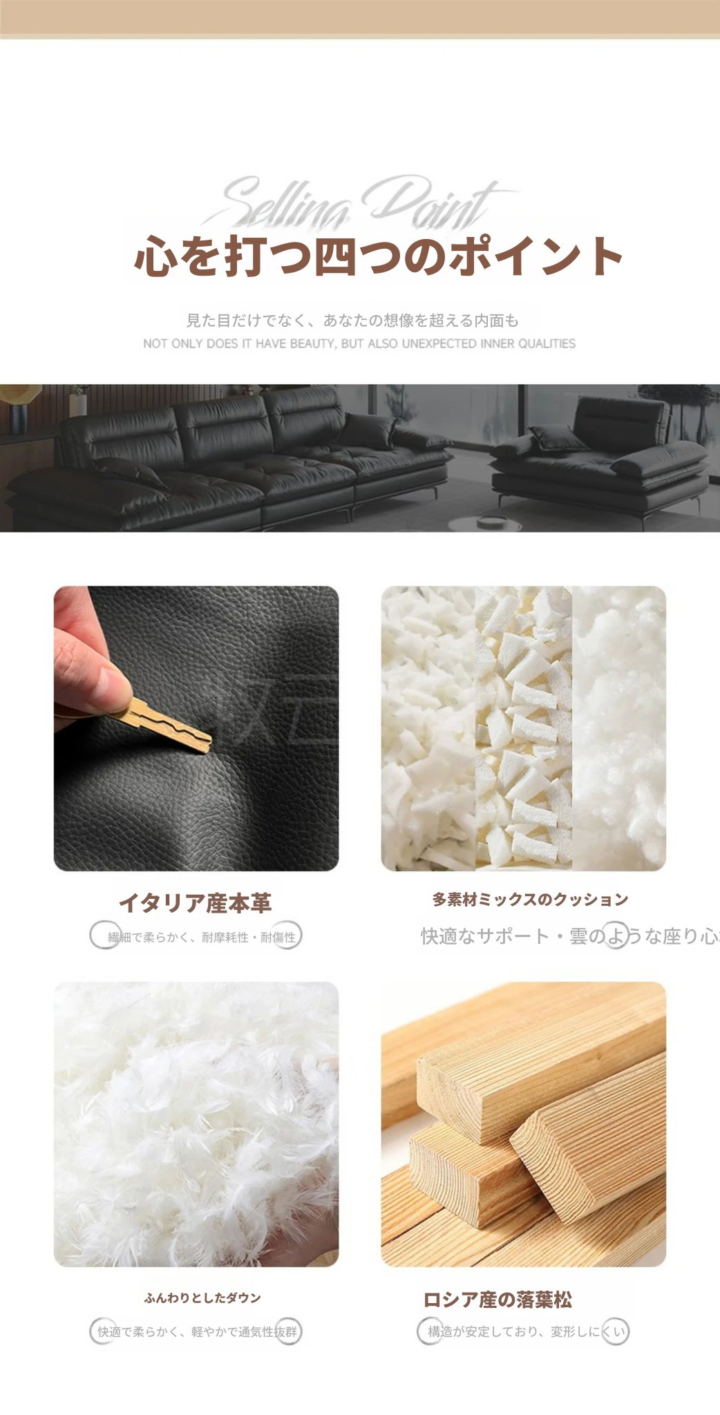 イタリアンミニマリズムのナパ本革ダウンソファ!超広々とした座面とモダンなシェニール素材で、快適さとスタイルを両立。リビングを洗練された空間に変える、理想のソファです。