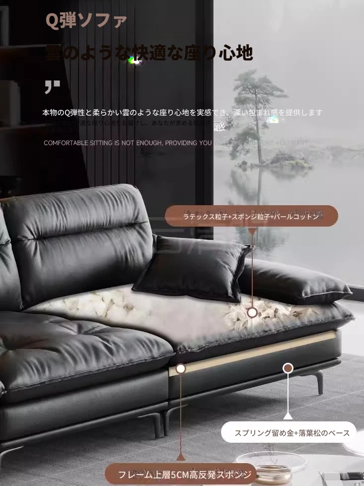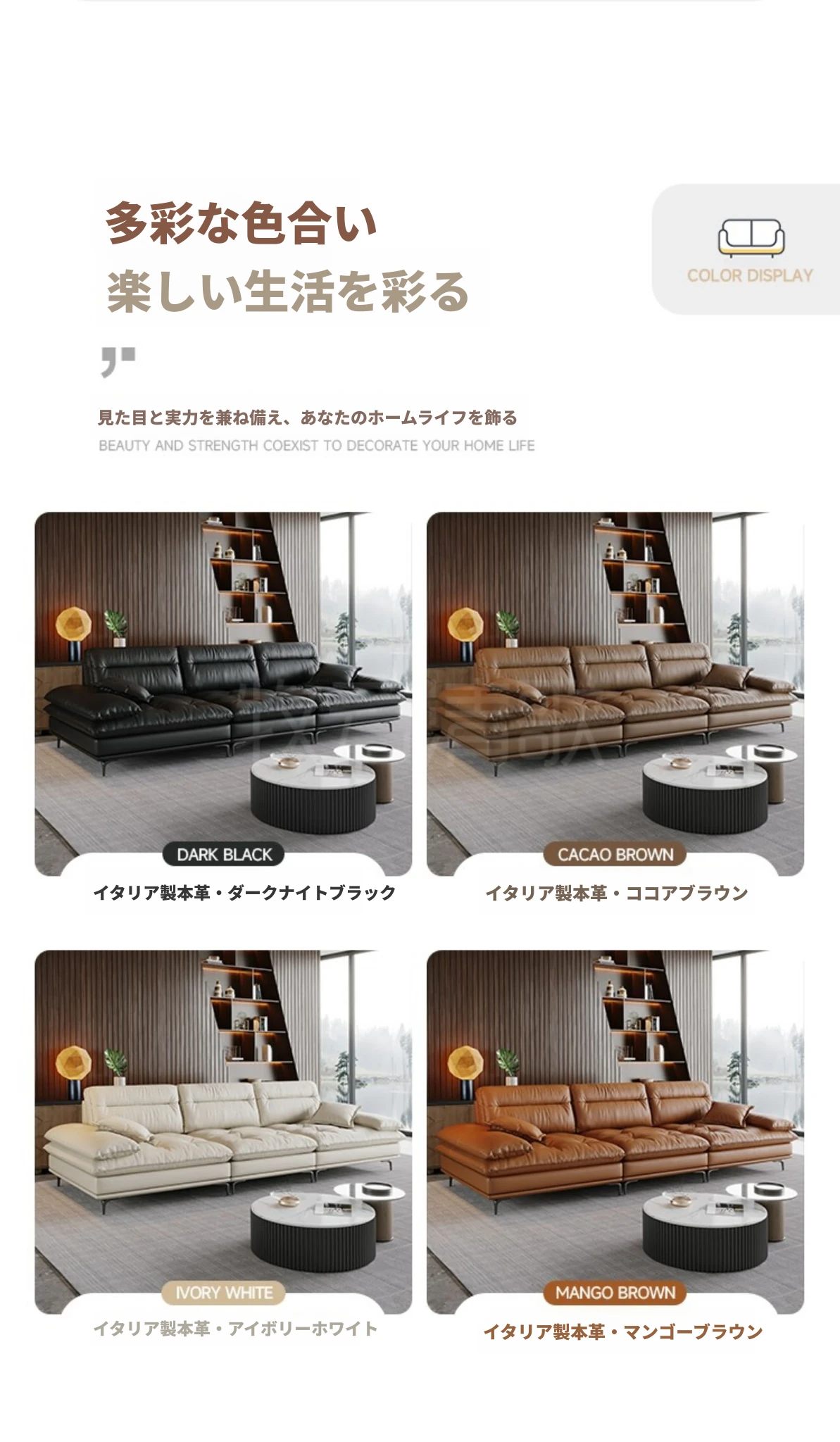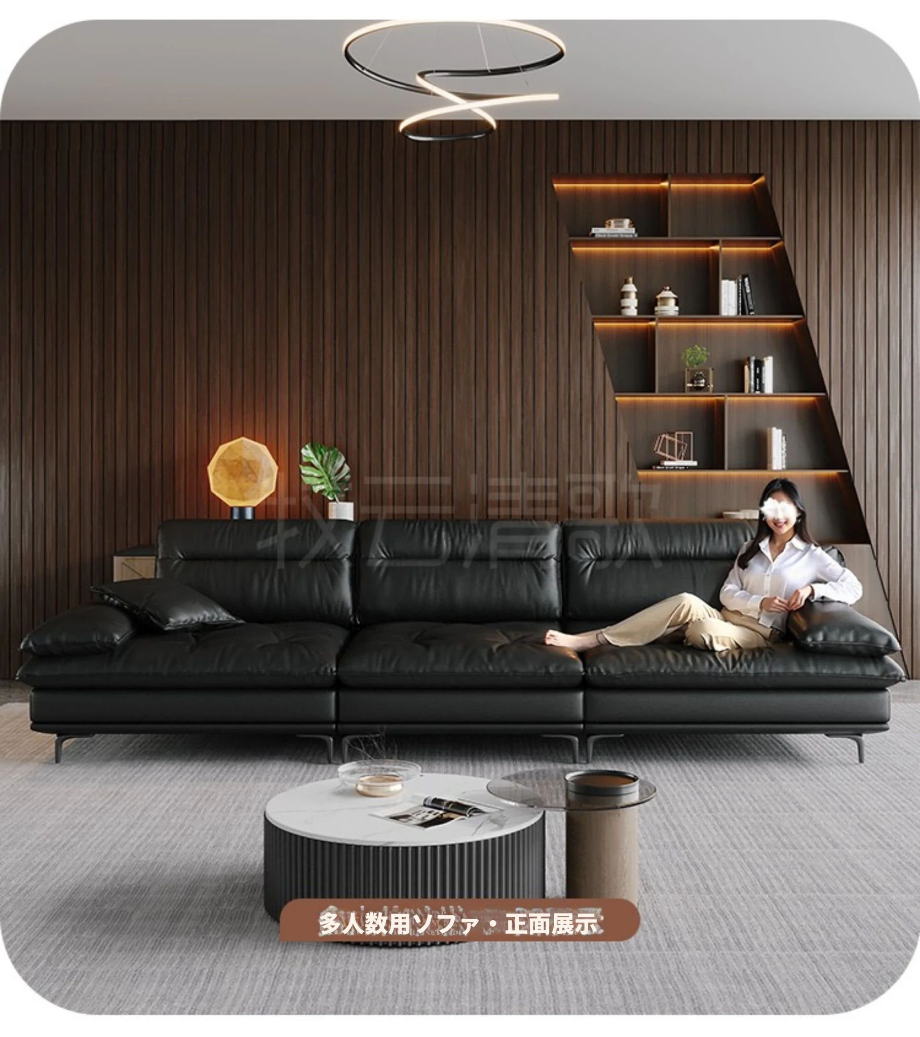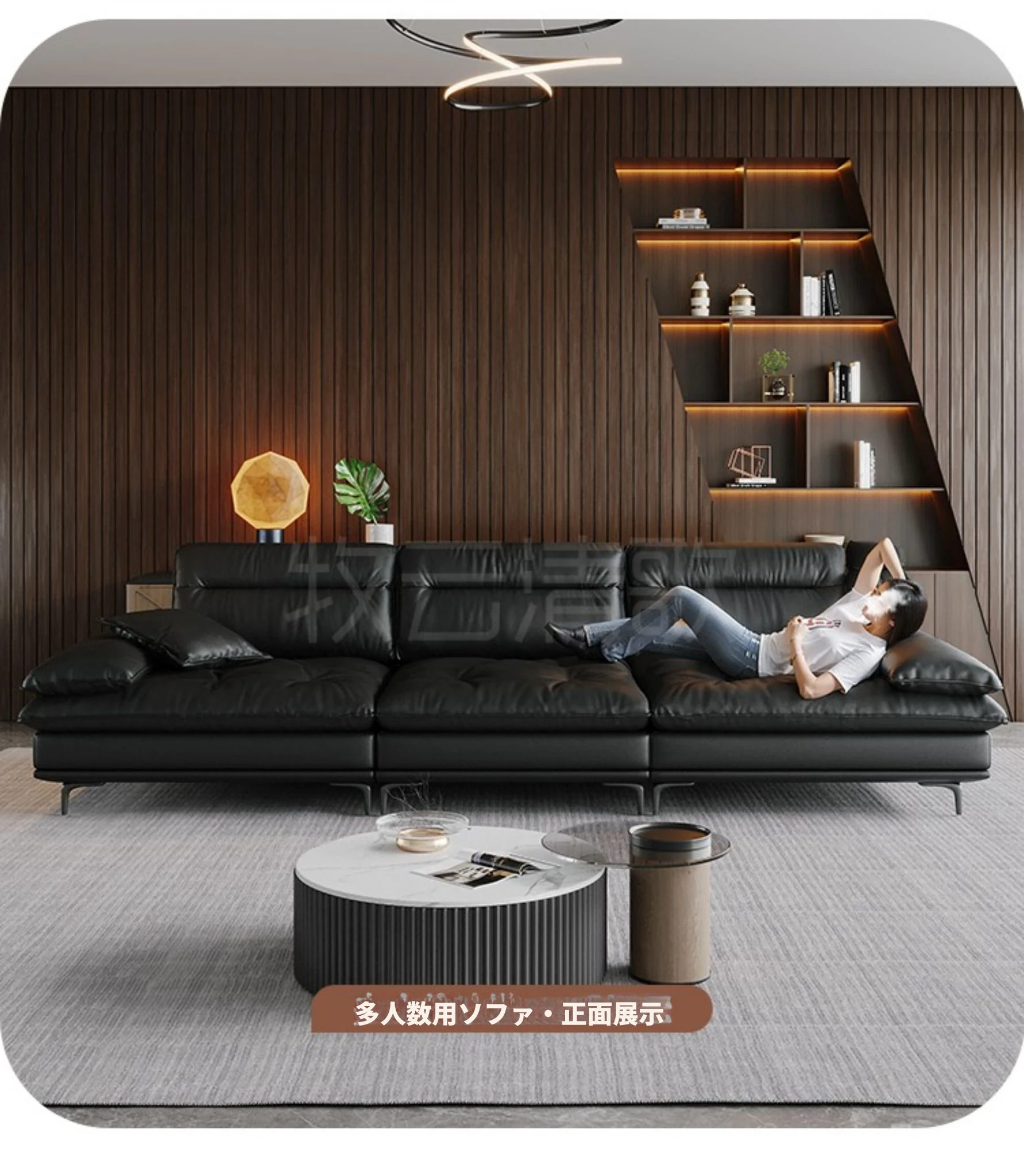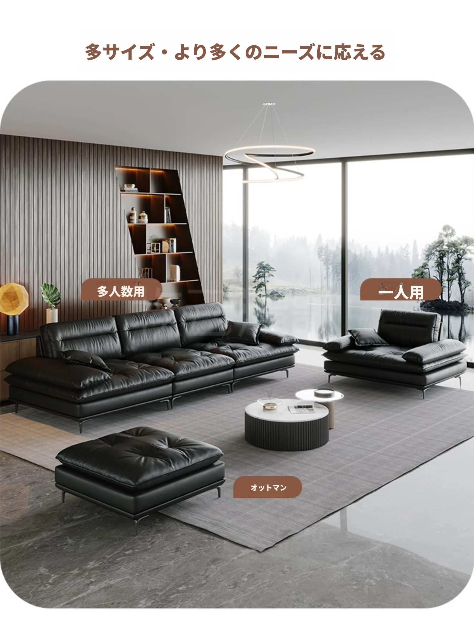 イタリアンミニマリズムのナパ本革ダウンソファ!超広々とした座面とモダンなシェニール素材で、快適さとスタイルを両立。リビングを洗練された空間に変える、理想のソファです。
