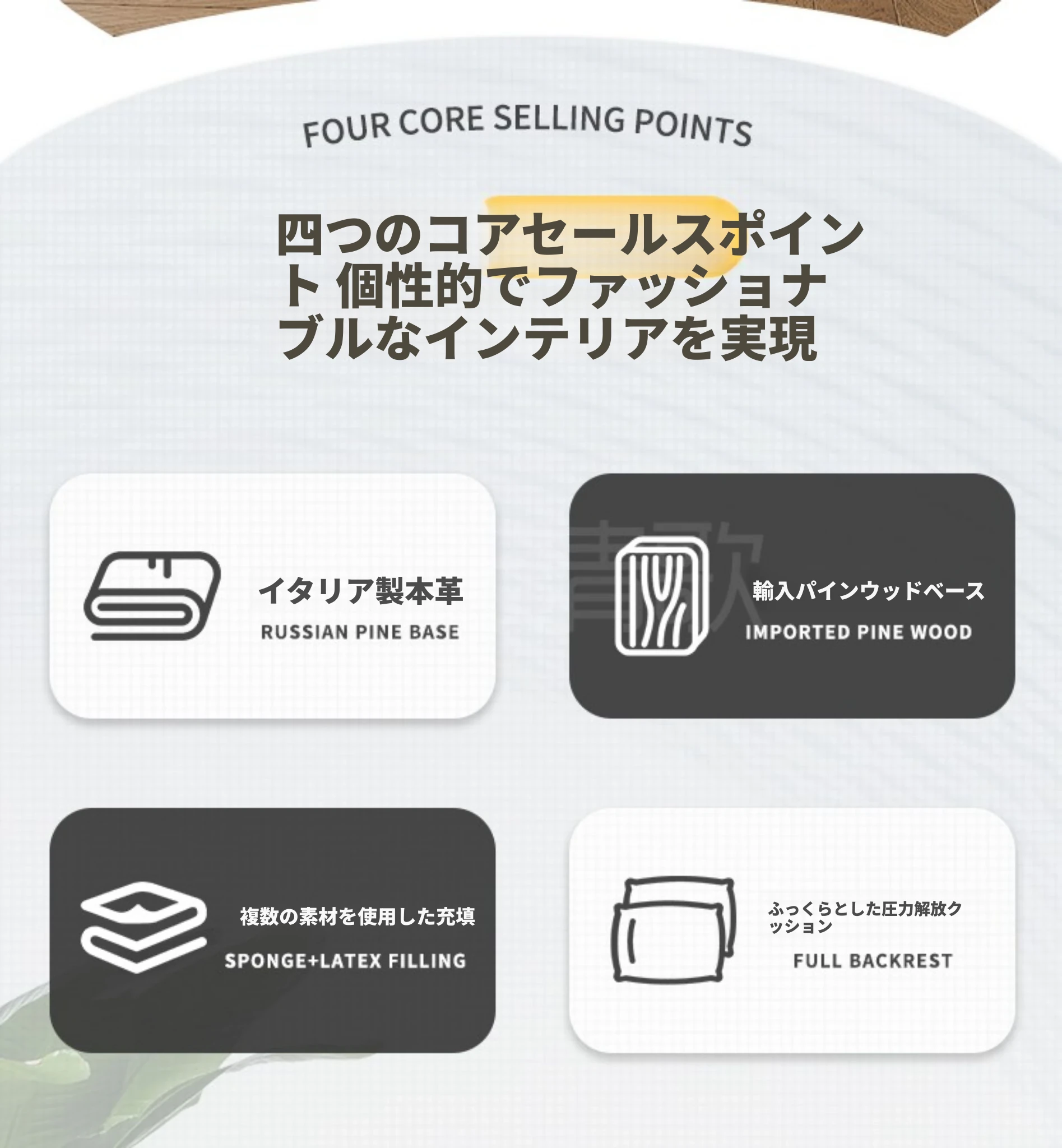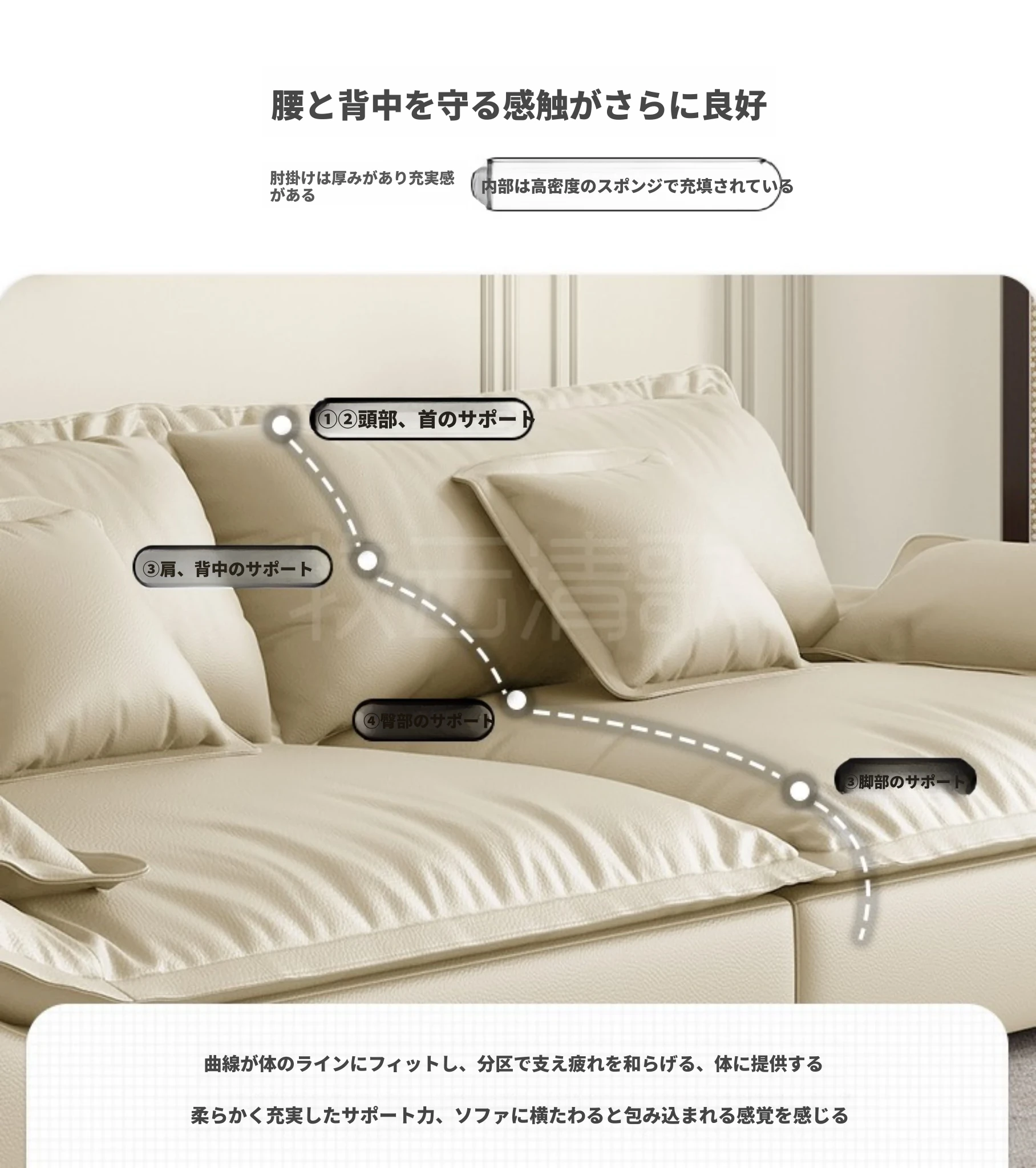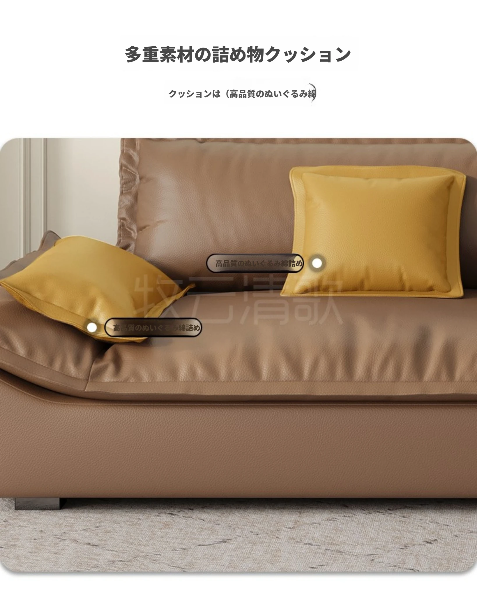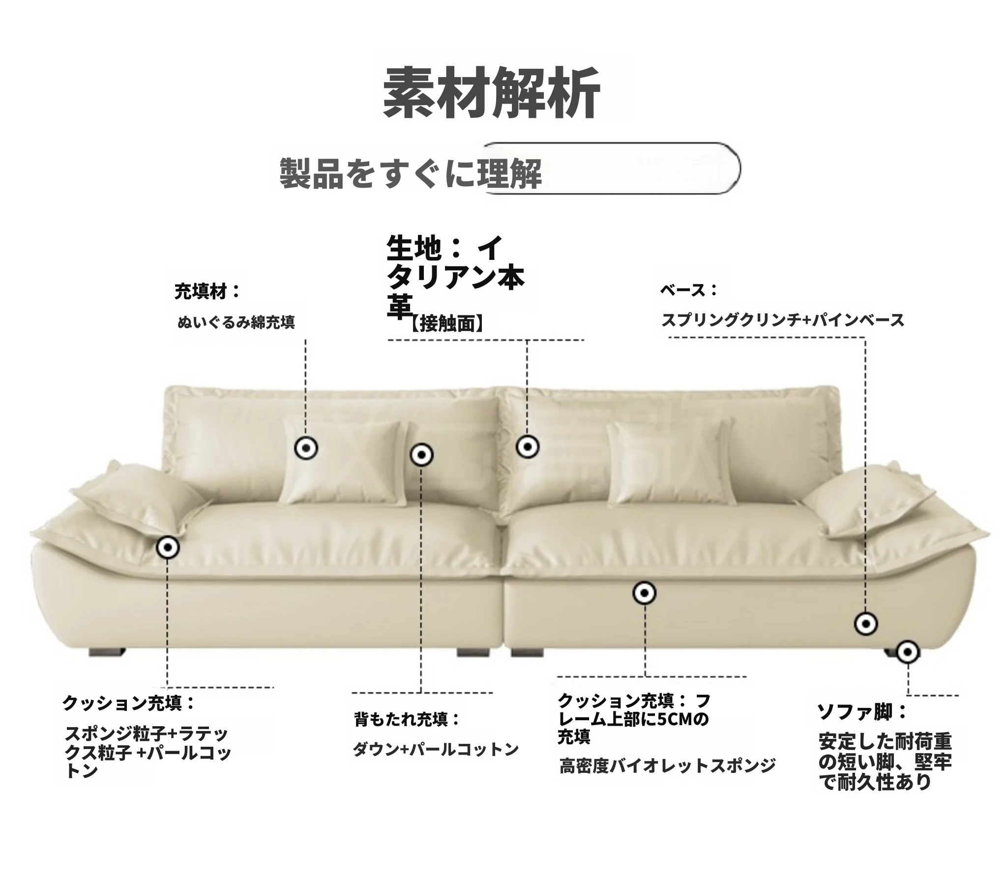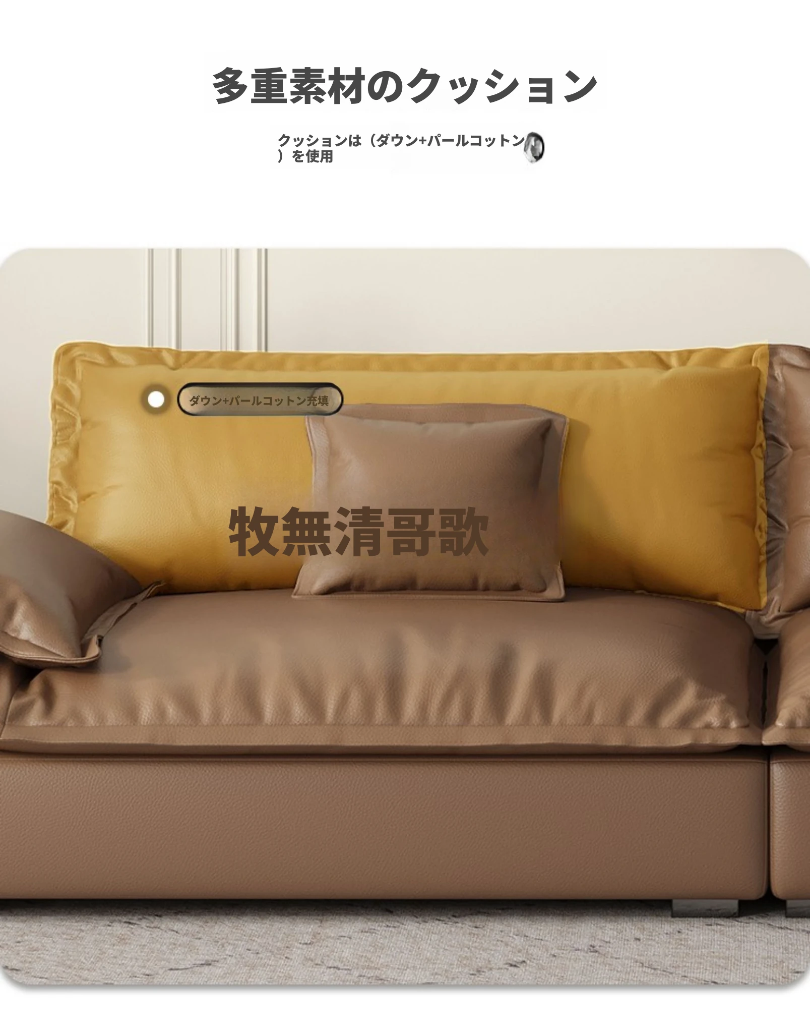 【輸入本革+ダウンクッション】四人用2.6メートル(幅1.1メートル)