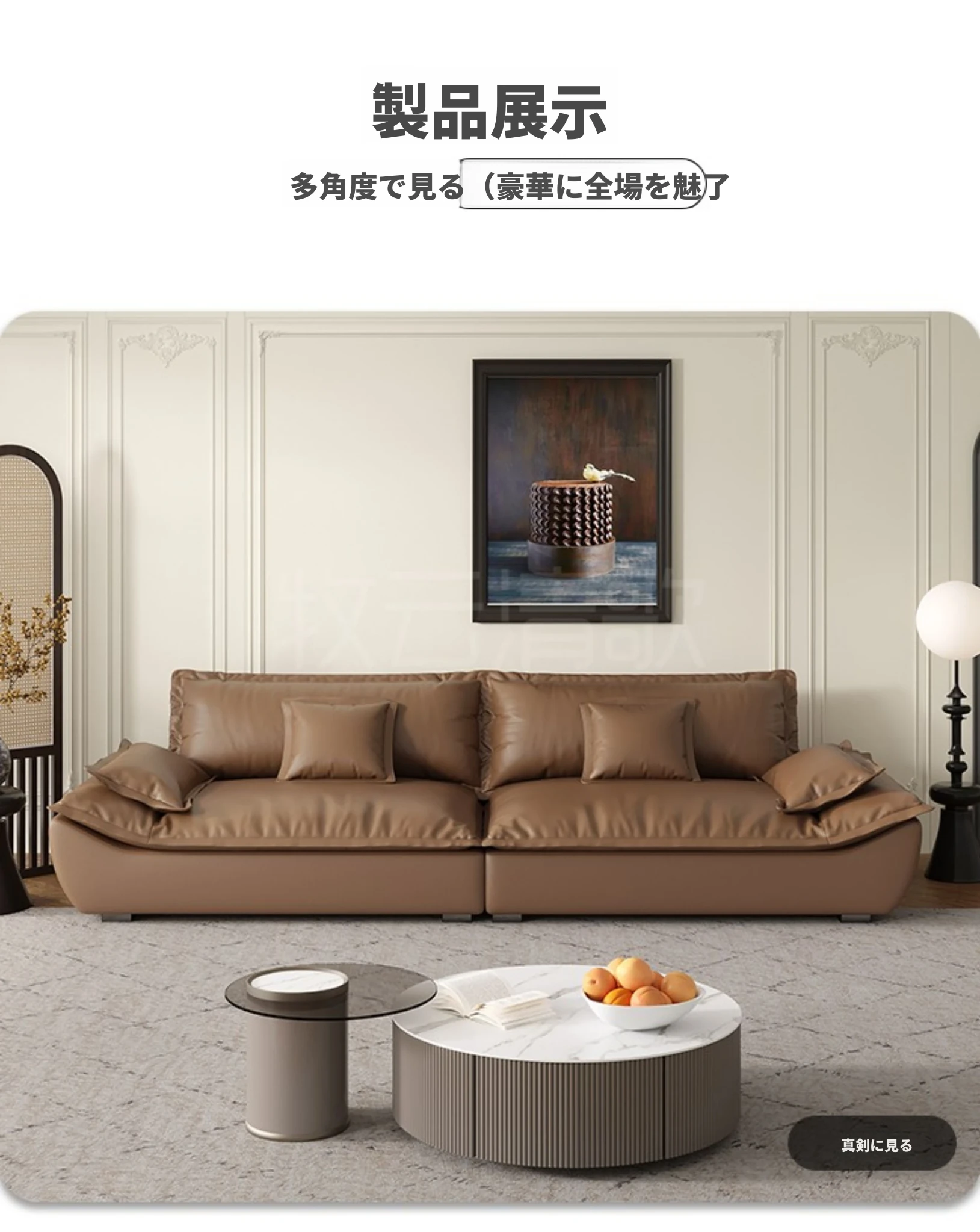 【輸入本革+ダウンクッション】六人用3.4メートル(幅1.1メートル)