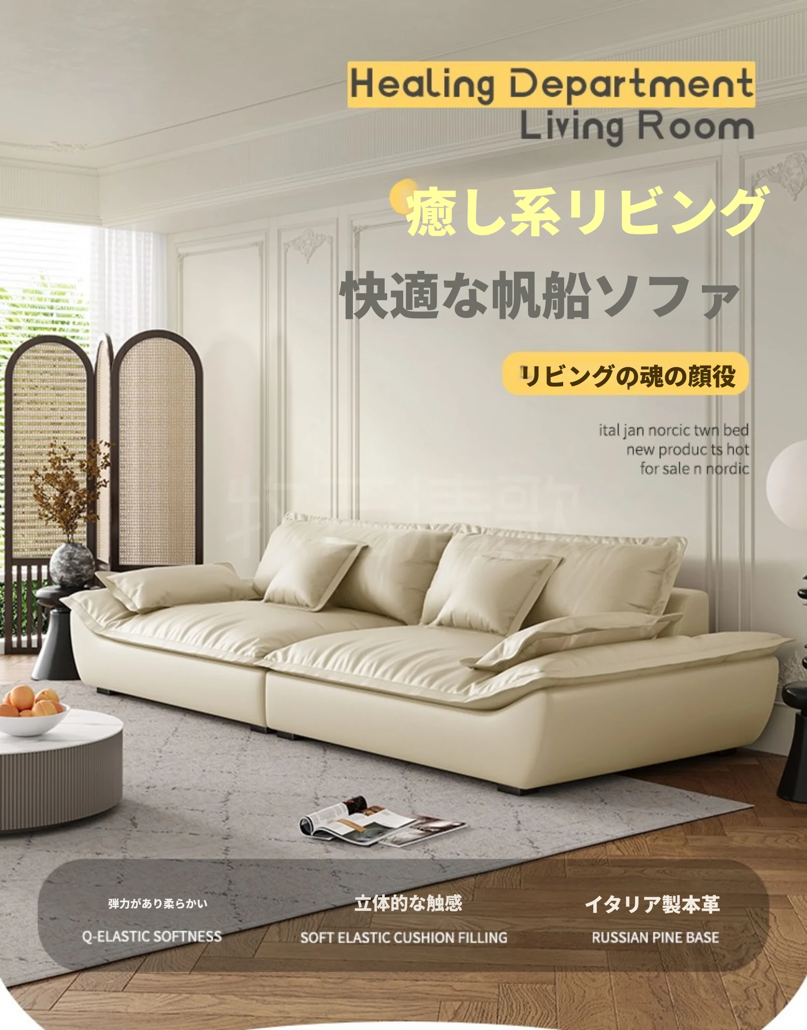 イタリアンミニマリストセーリングソファ|リビングにぴったりのラグジュアリー|コンパクトから広めのサイズに対応|超深い座面で極上の座り心地|ダウン入り本革ソファで贅沢なひとときを!