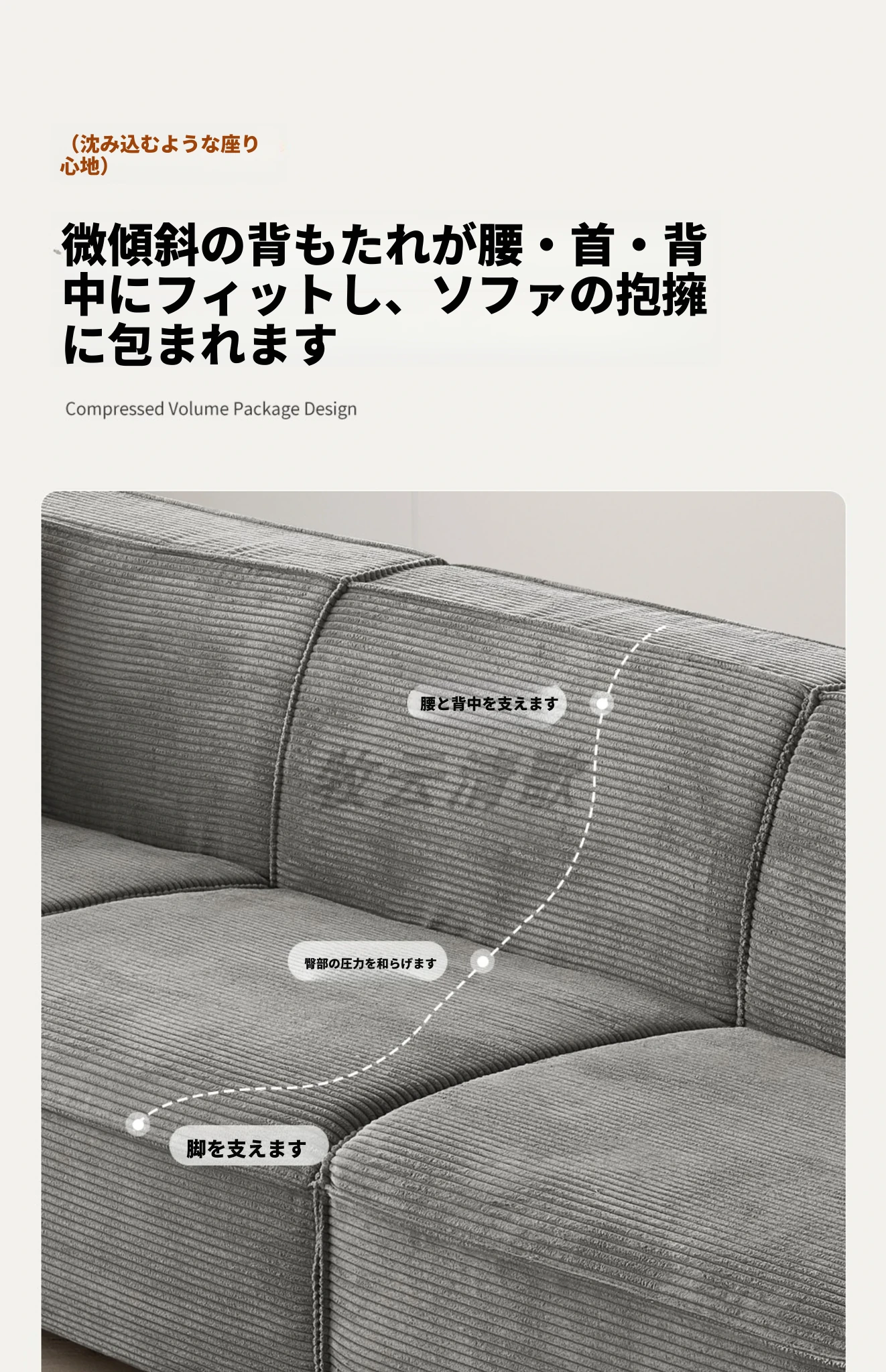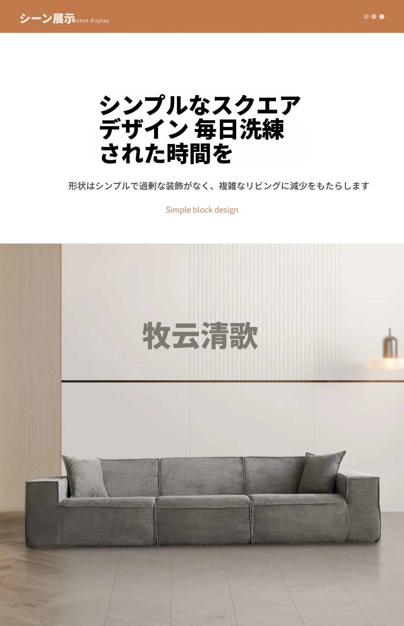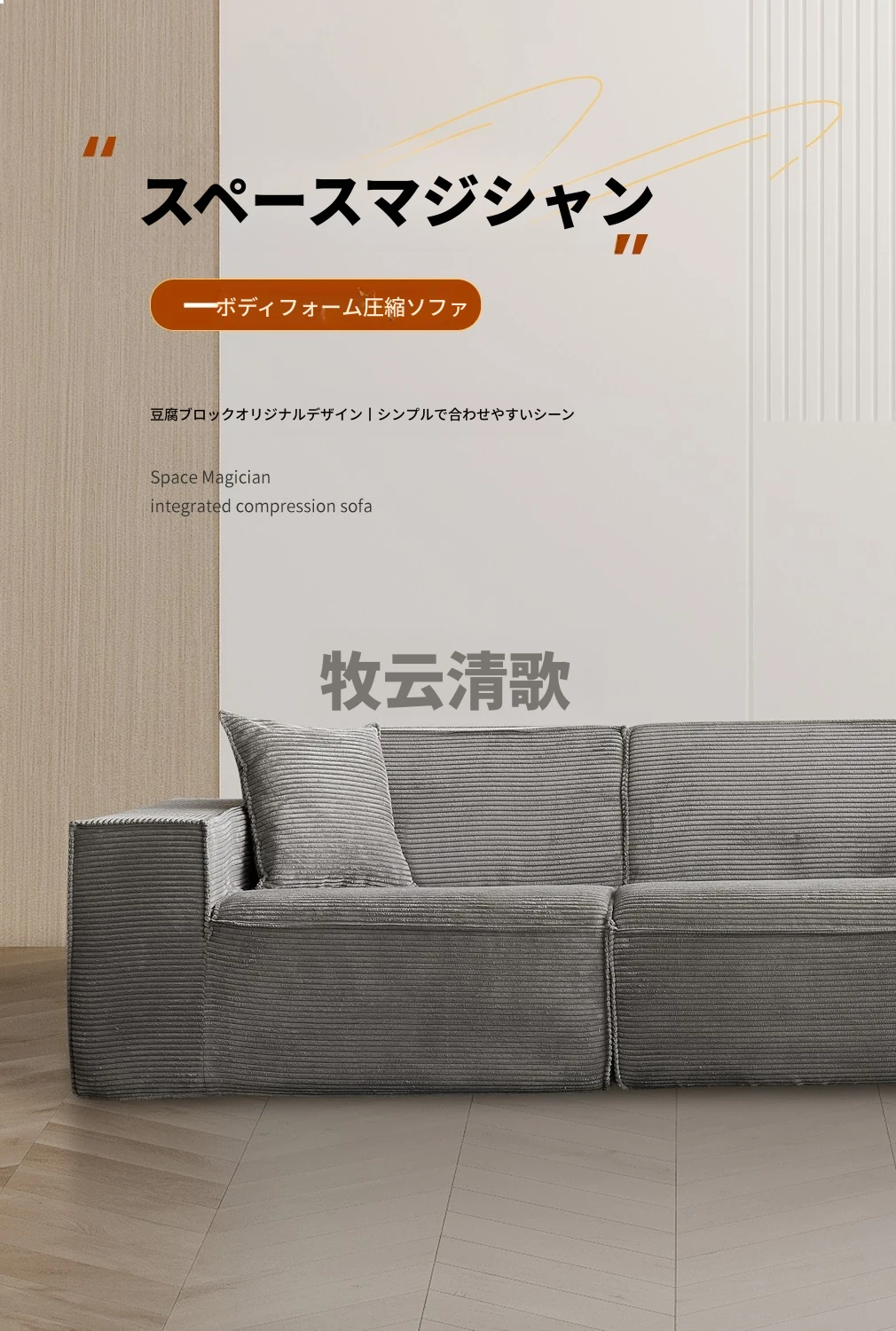 イタリアンミニマルデザインのスポンジ真空圧縮ソファ、現代的なシンプルなコーデュロイ素材の小型豆腐ブロックソファ、リビングにぴったりのスタイリッシュな選択!