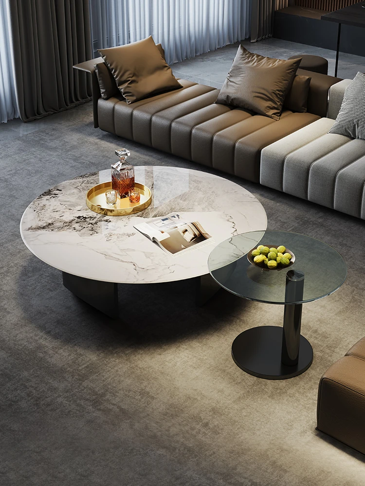 イタリアンミニマルスタイルのステンレス製リビングサイドテーブル - モダンでシンプルなデザイン、コンパクトな小型住宅にぴったりなラグジュアリーなラウンドコーヒーテーブルセット。おしゃれな空間を演出します!