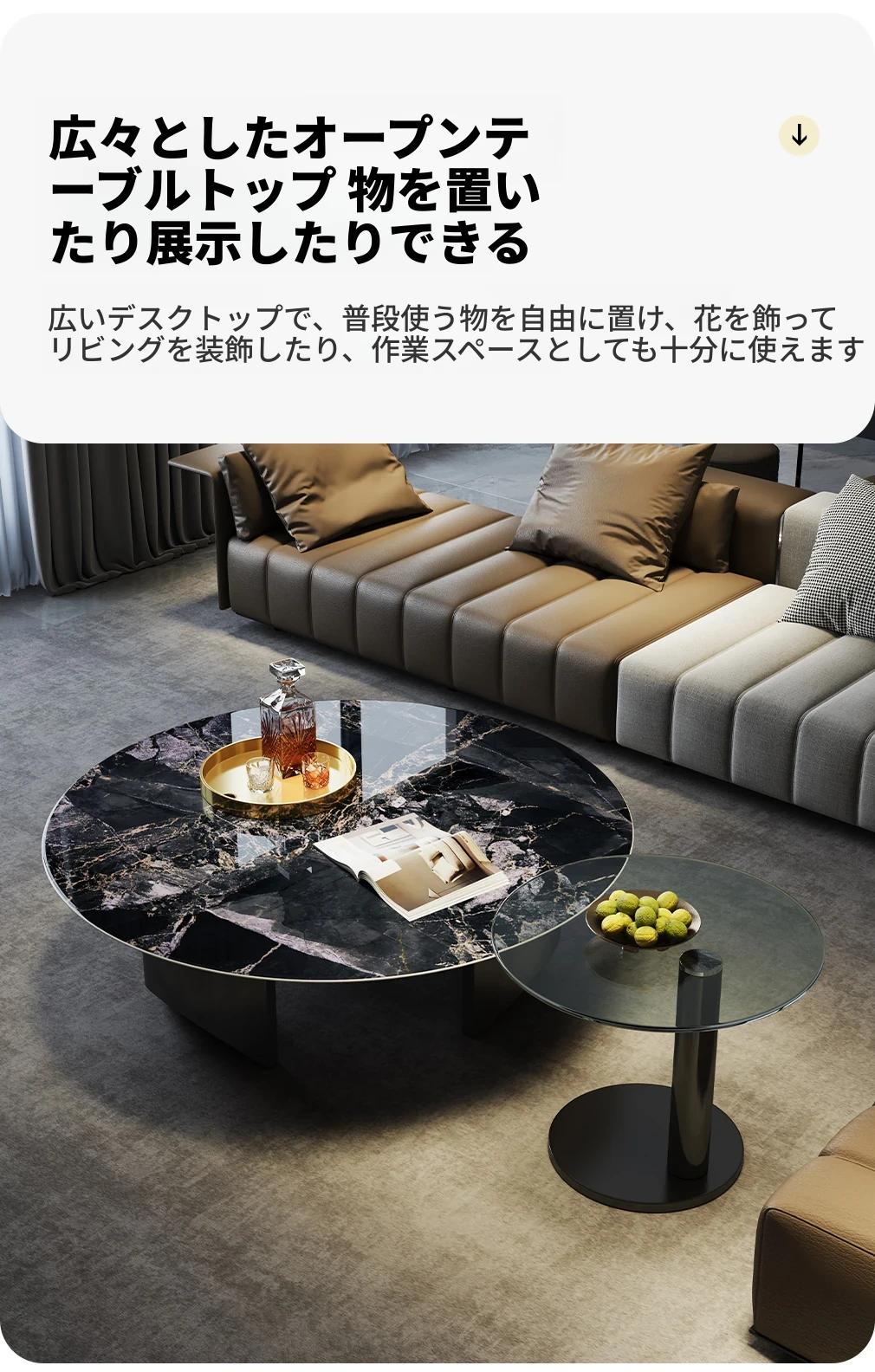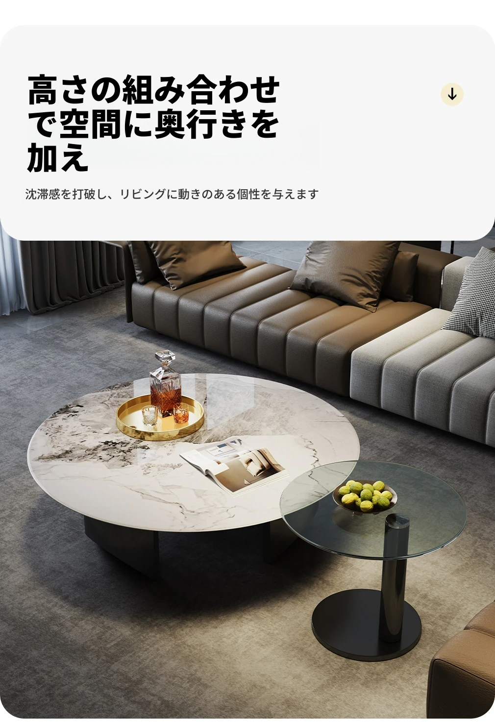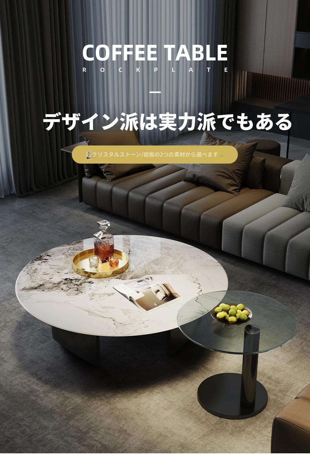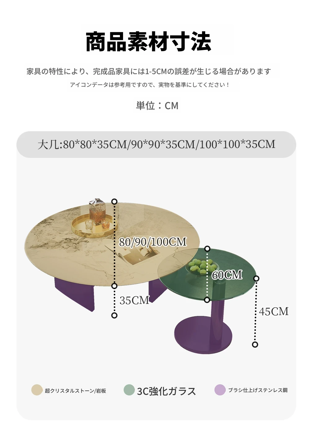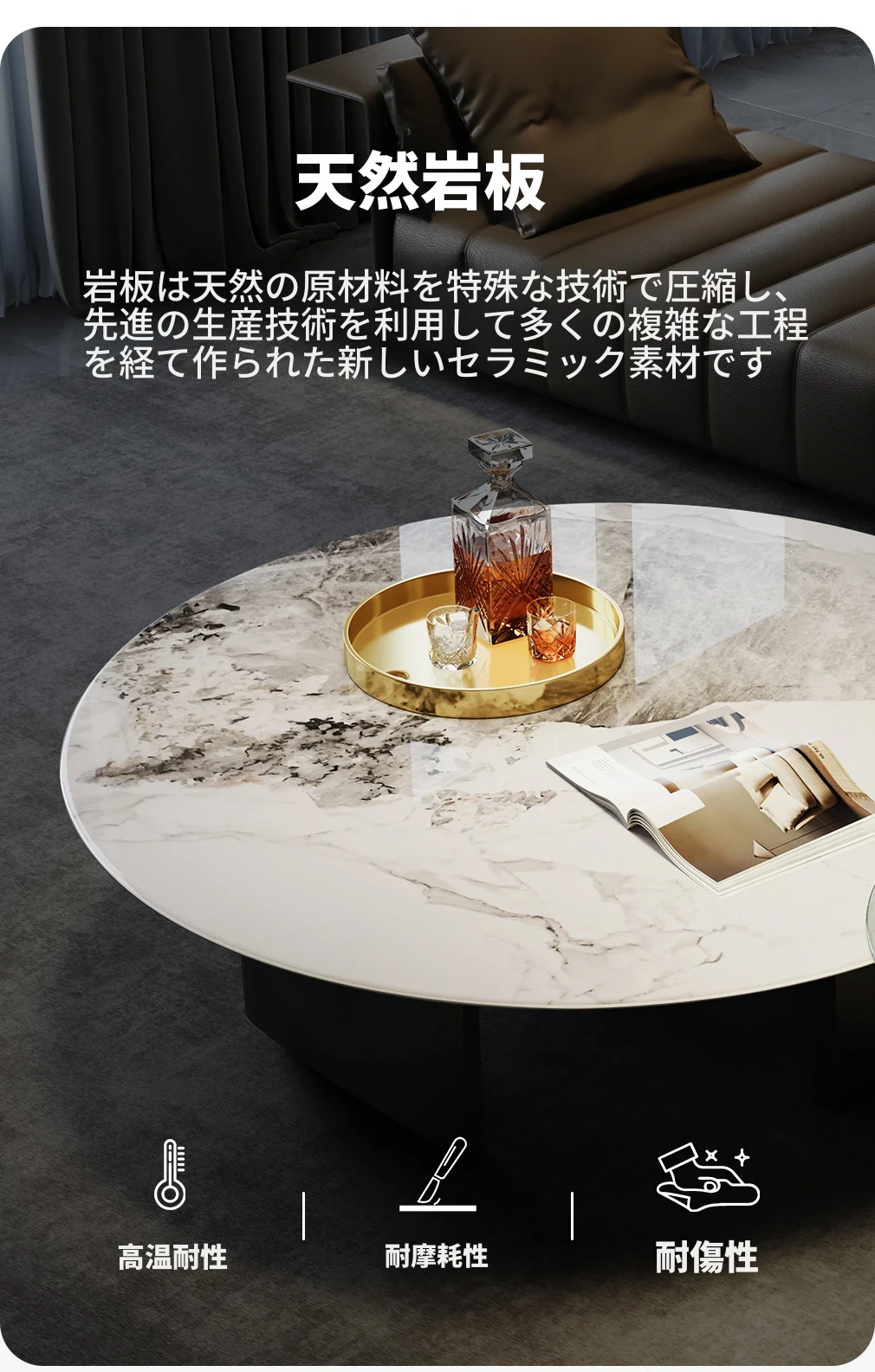 【10CM岩板円形テーブル+サイドテーブルセット】