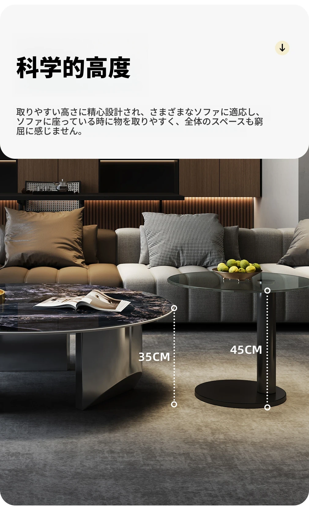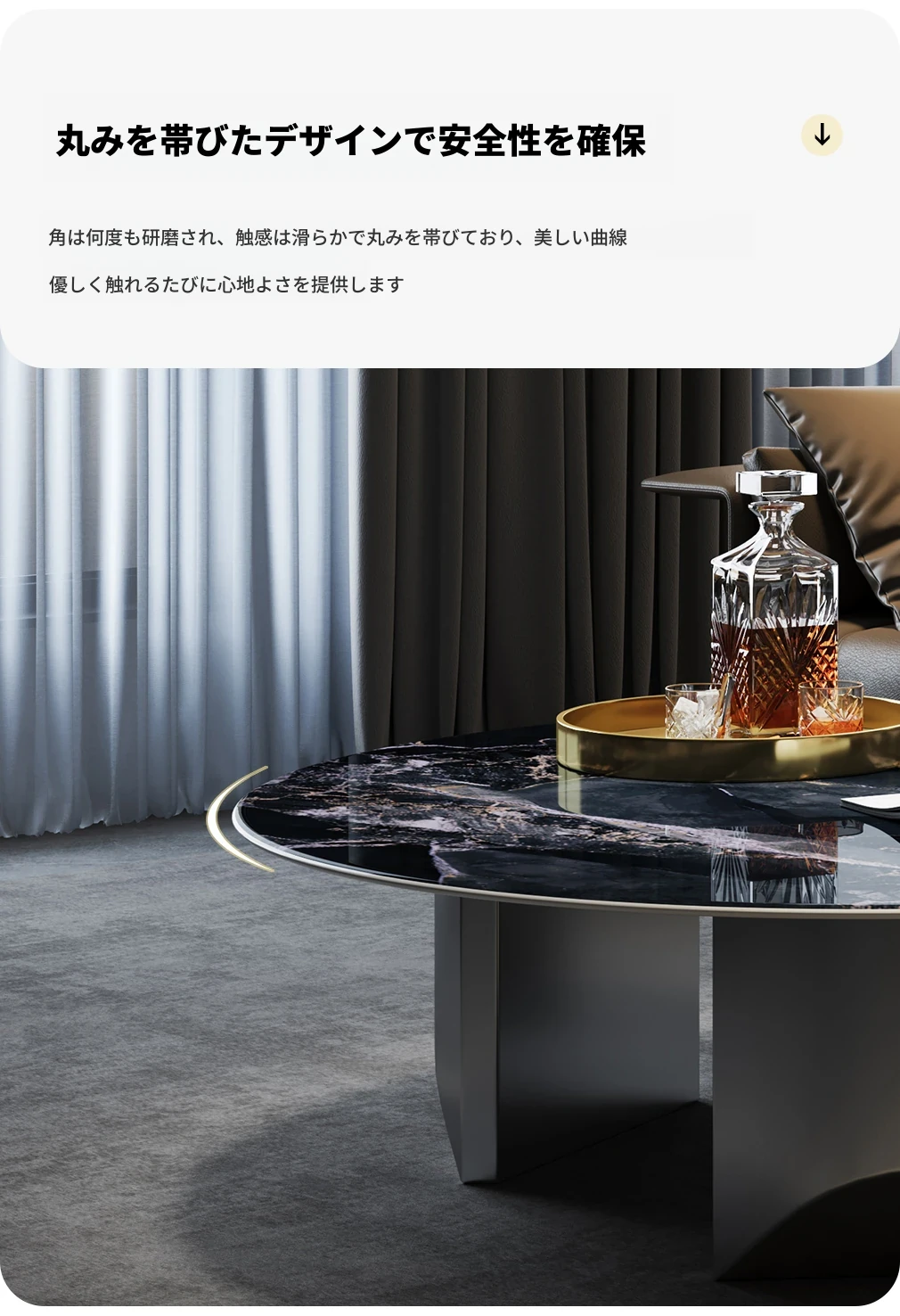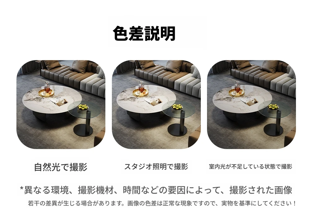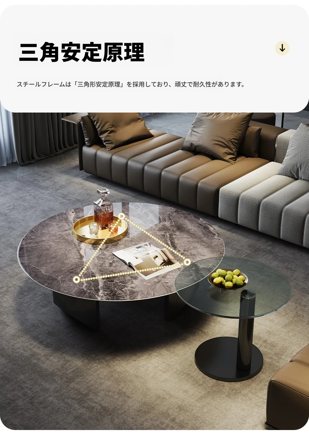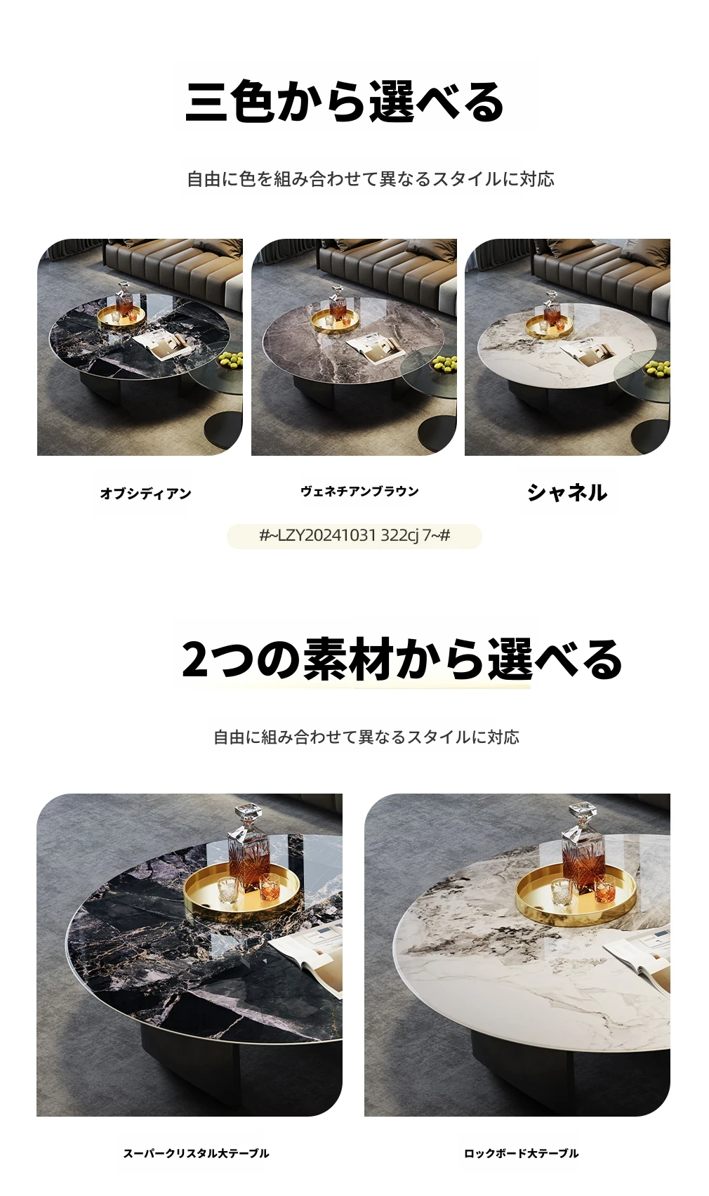 【10CM岩板円形テーブル+サイドテーブルセット】