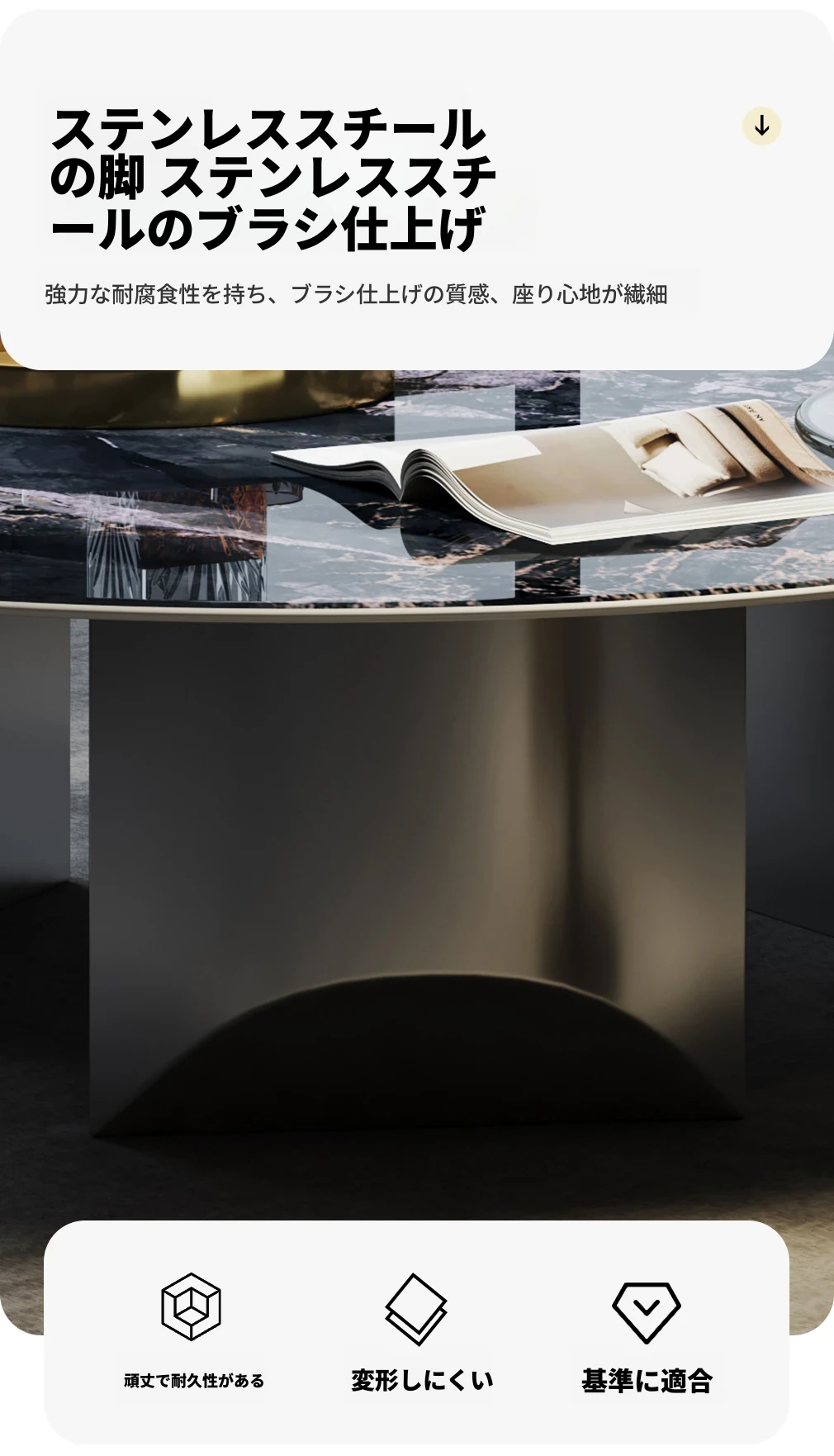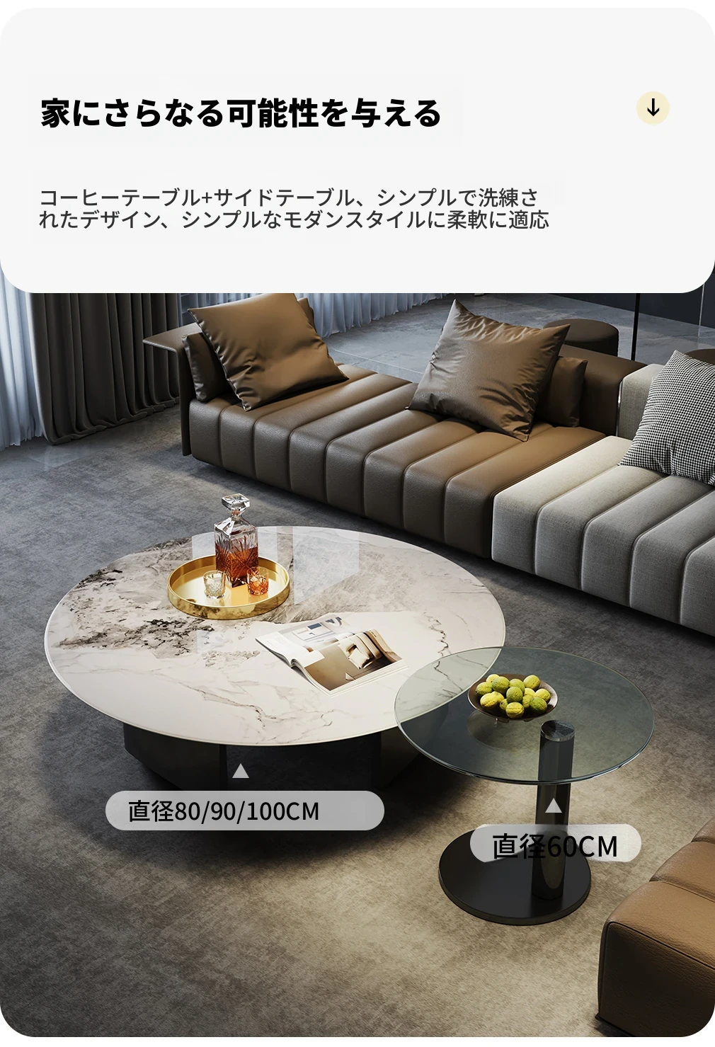 【80CM岩板円形テーブル+サイドテーブルセット】
