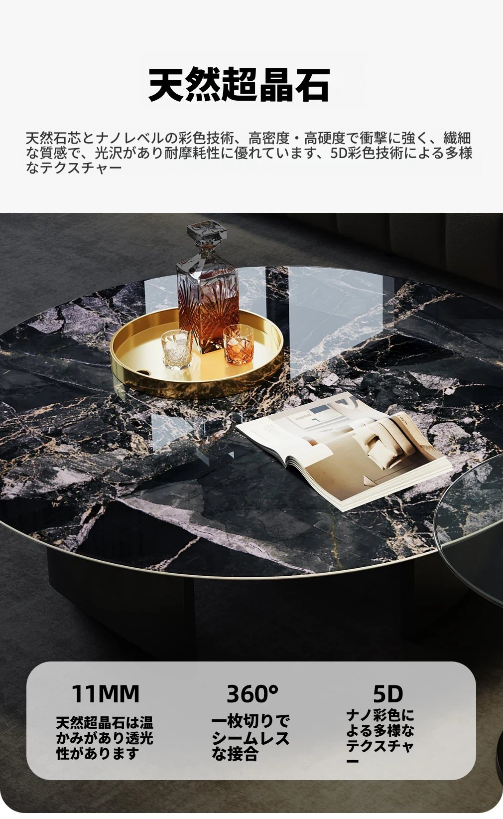 【10CM超晶石円形テーブル+サイドテーブルセット】
