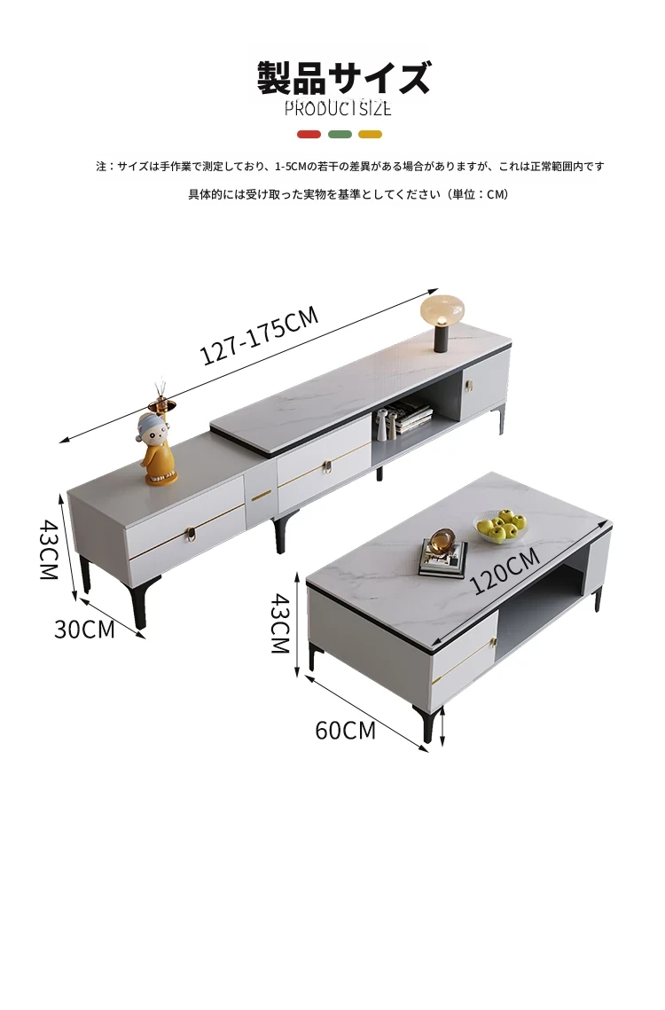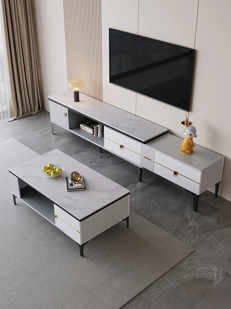 1.2メートル岩板コーヒーテーブル+伸縮テレビキャビネット