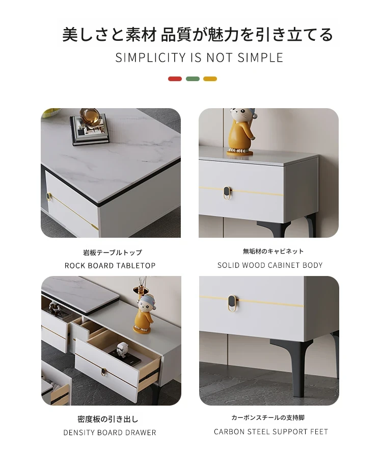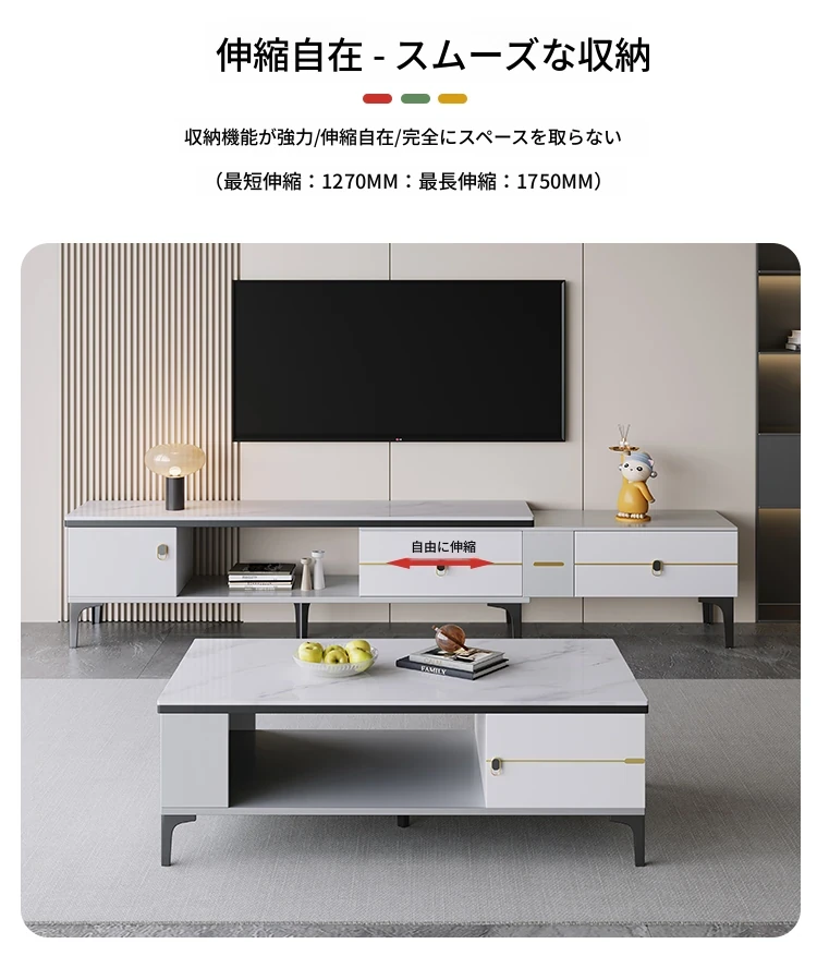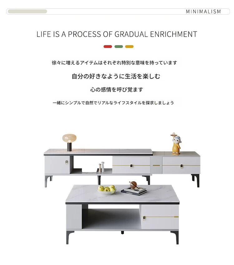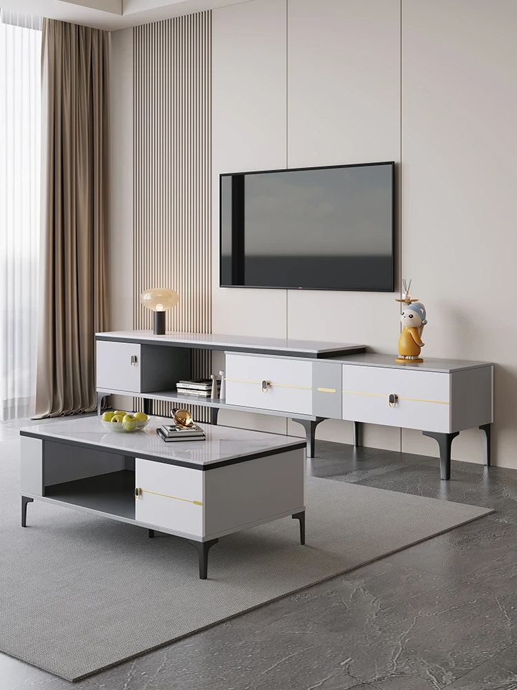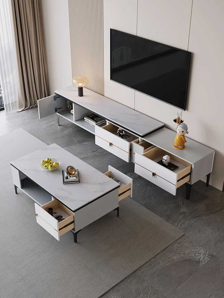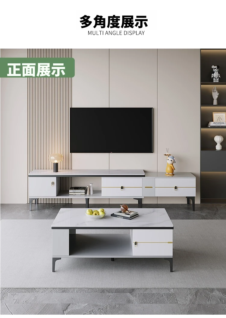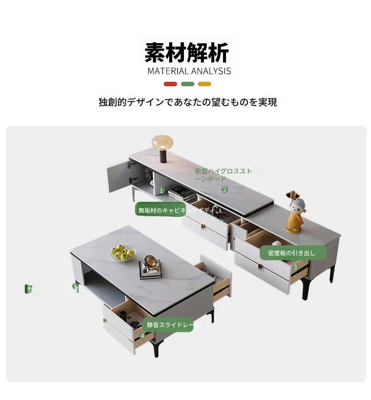 イタリアンミニマリズムスタイルの岩板製コーヒーテーブル&テレビキャビネットセット!リビングルームにぴったりのラグジュアリーで多機能な収納型スクエアテーブル。洗練されたデザインでおしゃれな空間を演出!