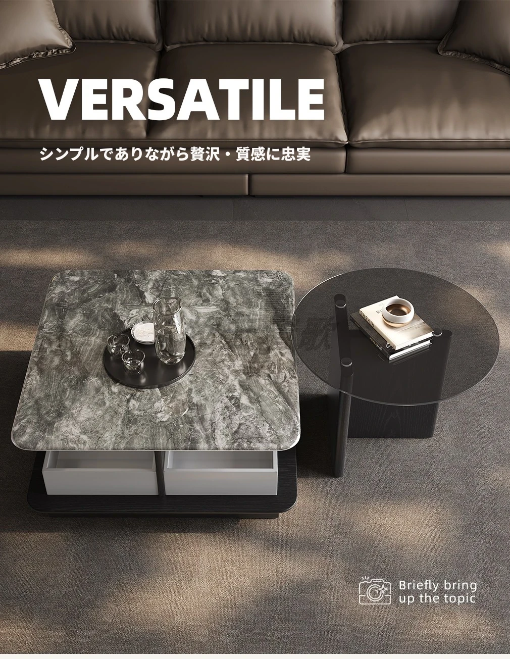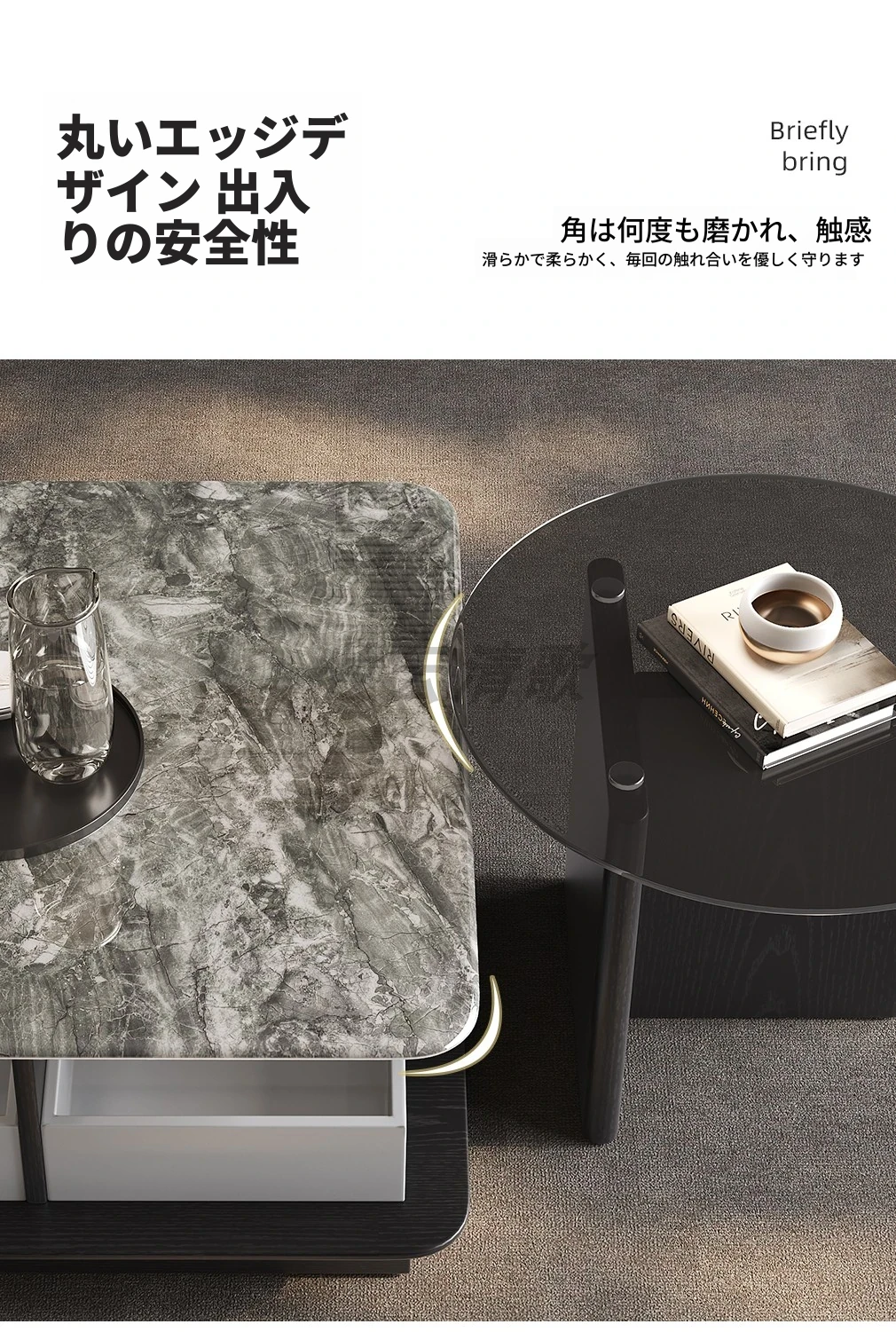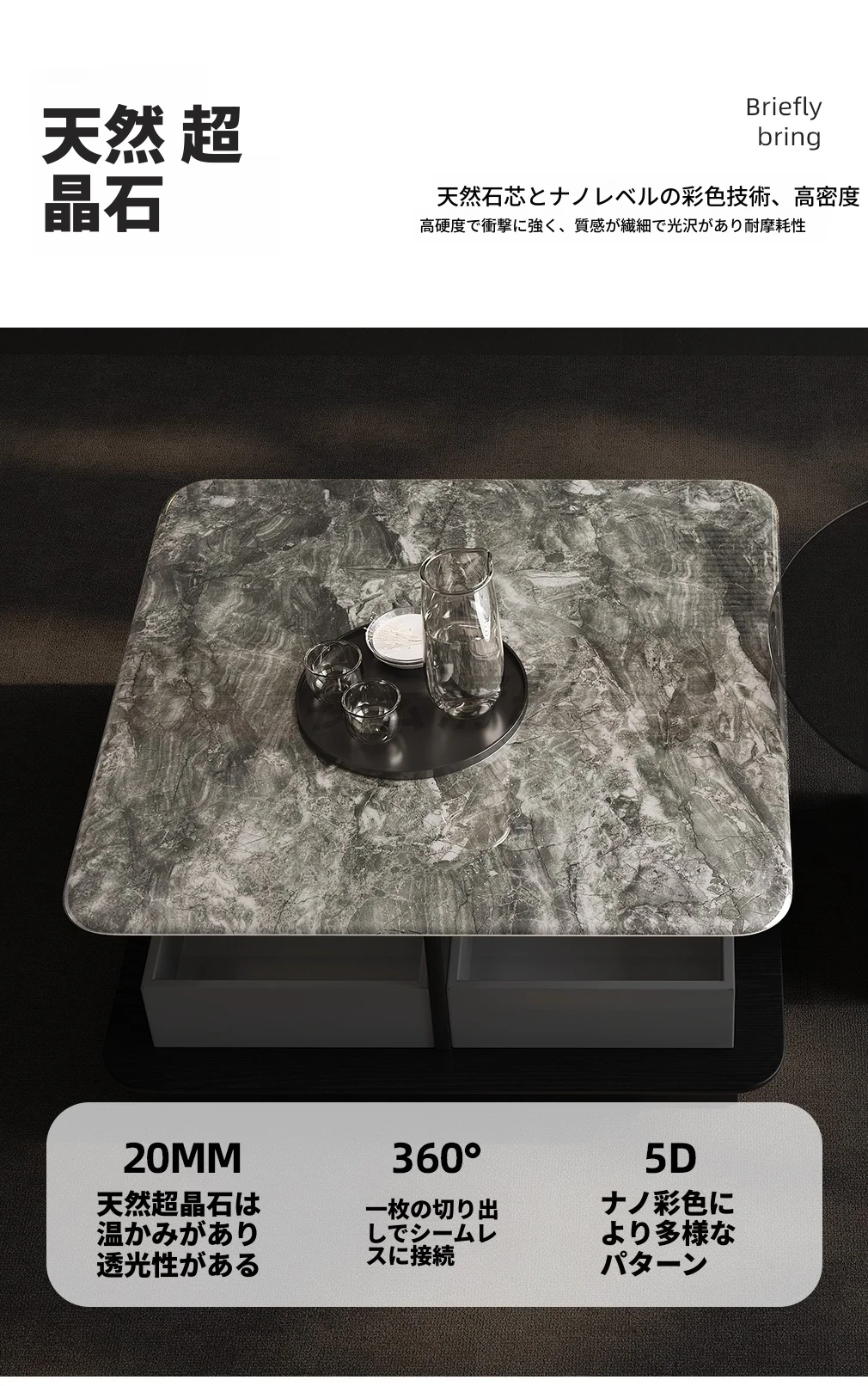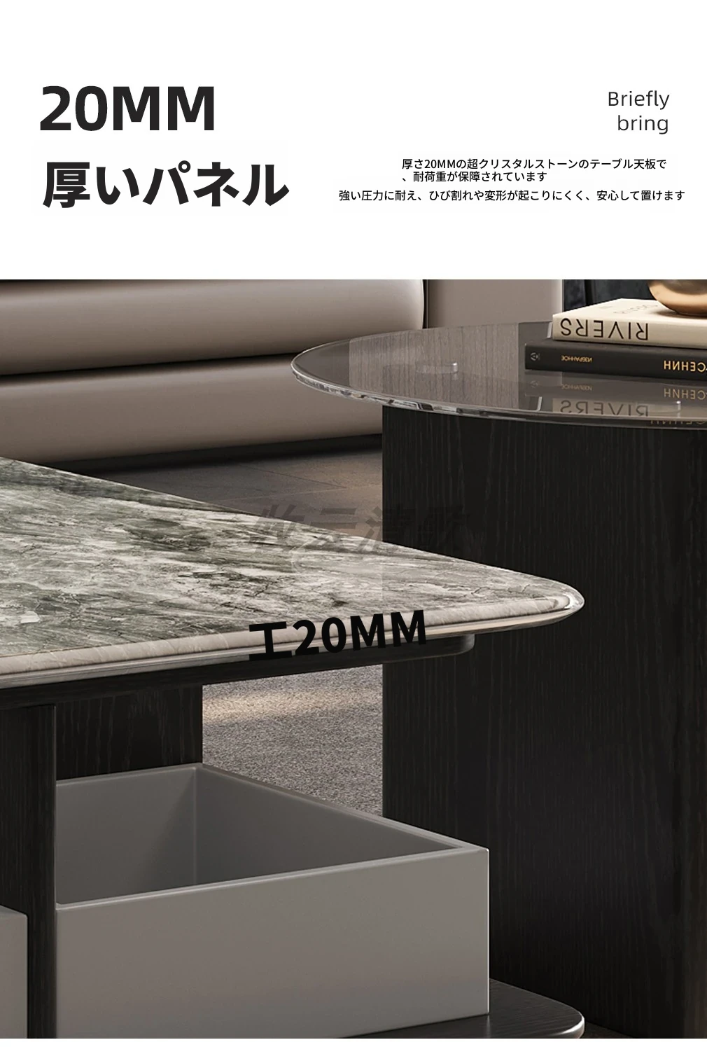 イタリアンミニマリズムの超クリスタルストーンコーヒーテーブルセット – ラグジュアリーでモダンなデザイン、小さなスペースにもぴったりな高級感溢れるリビング用コーヒーテーブル。