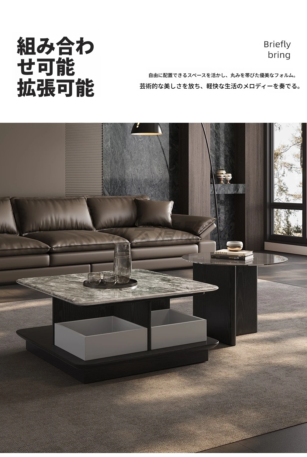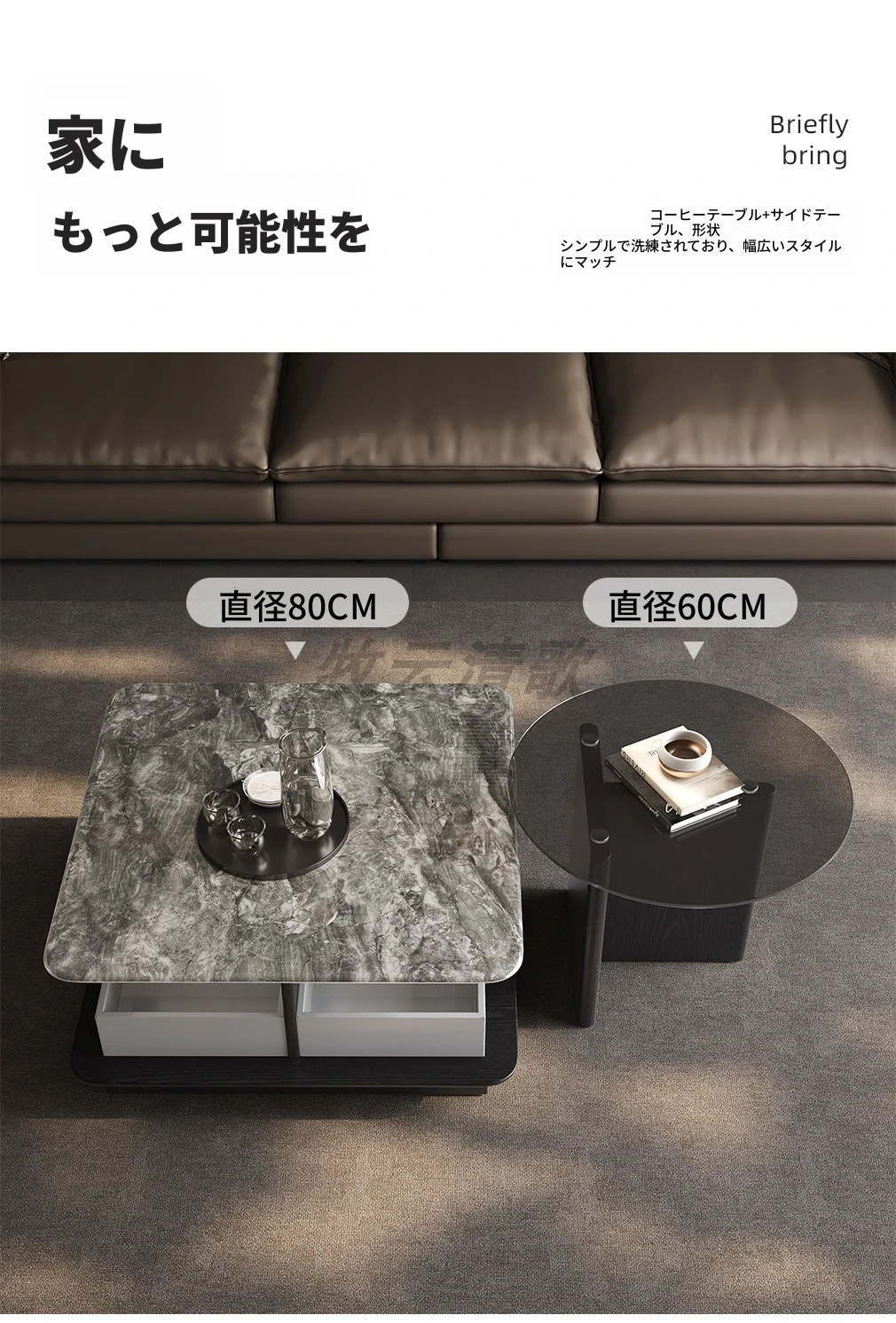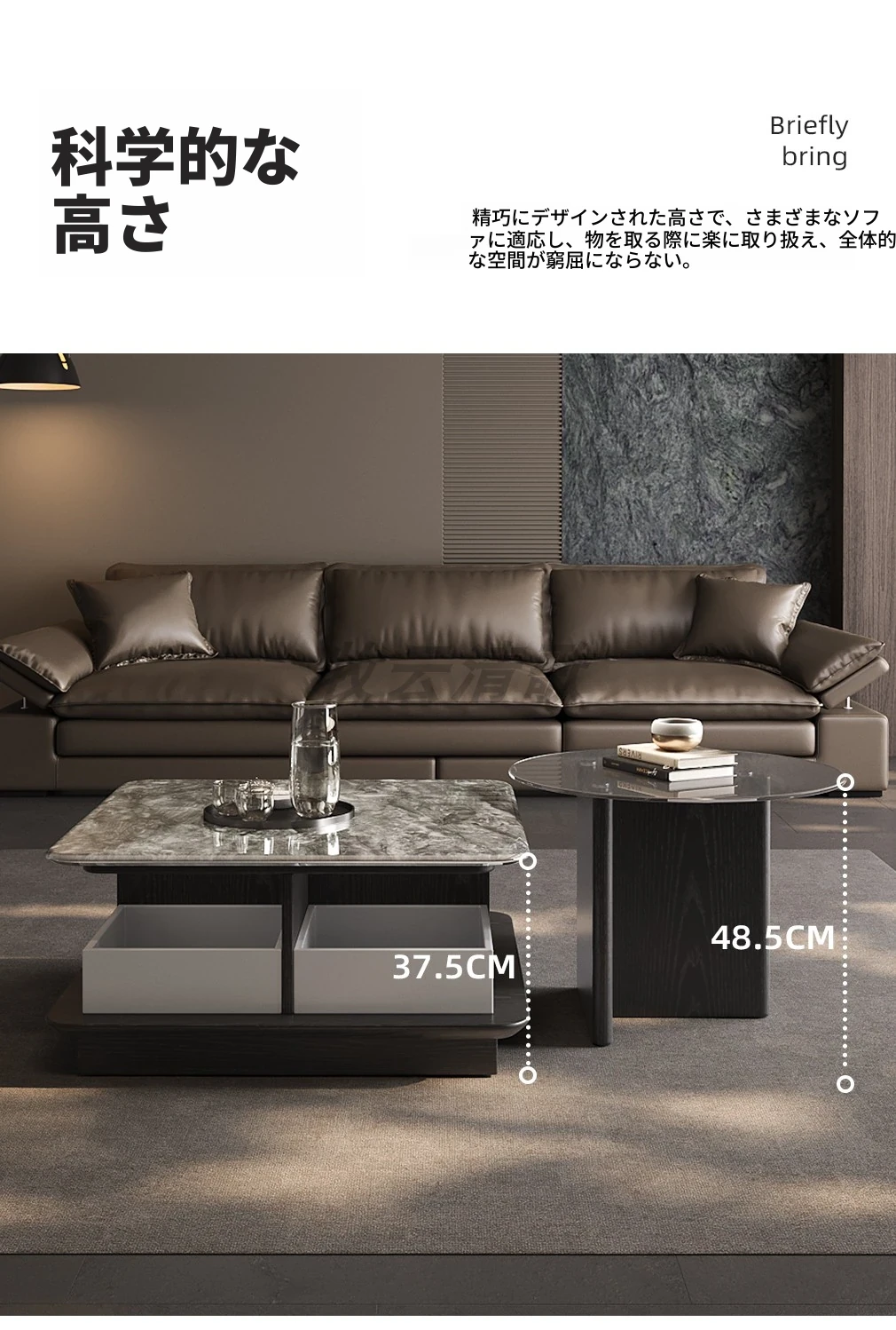イタリアンミニマリズムの超クリスタルストーンコーヒーテーブルセット – ラグジュアリーでモダンなデザイン、小さなスペースにもぴったりな高級感溢れるリビング用コーヒーテーブル。