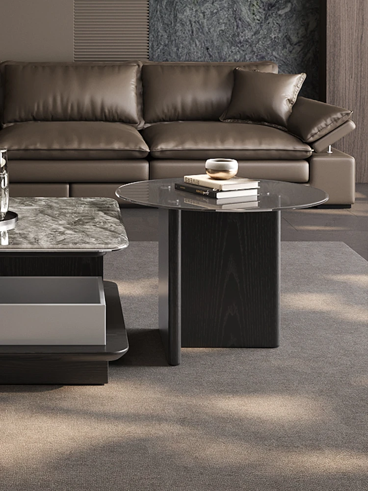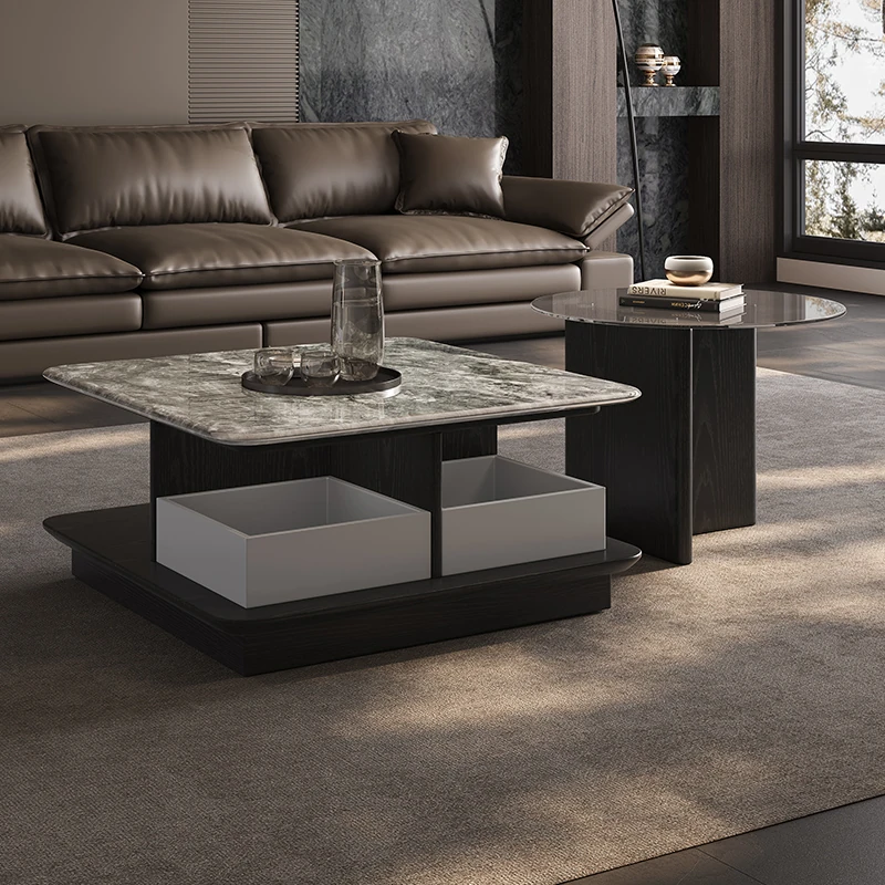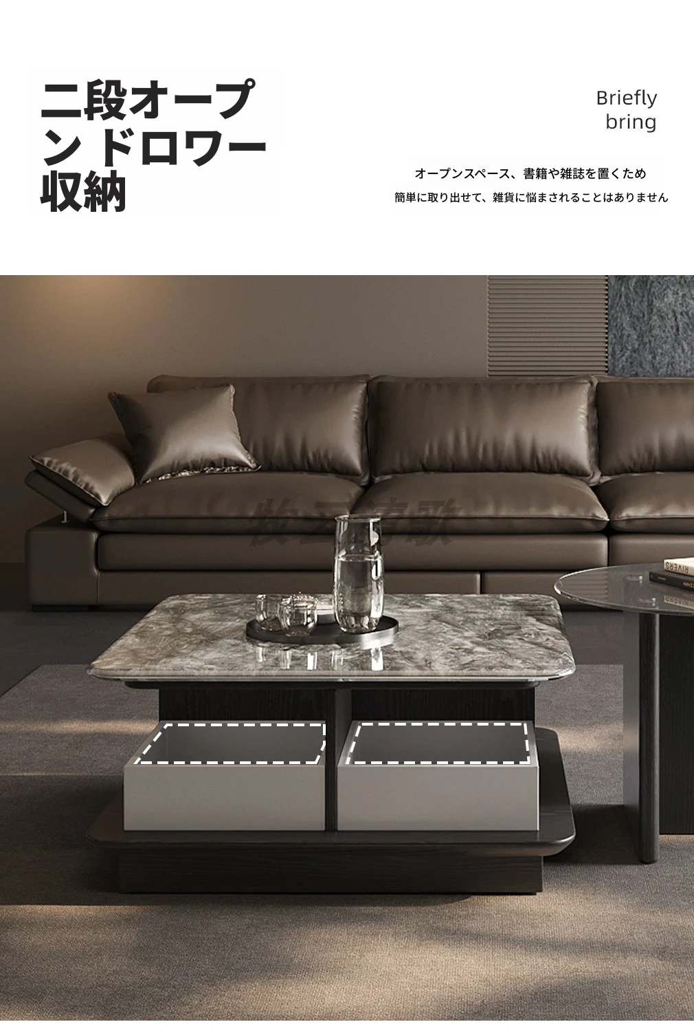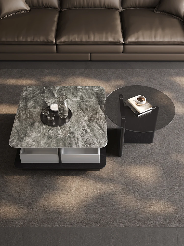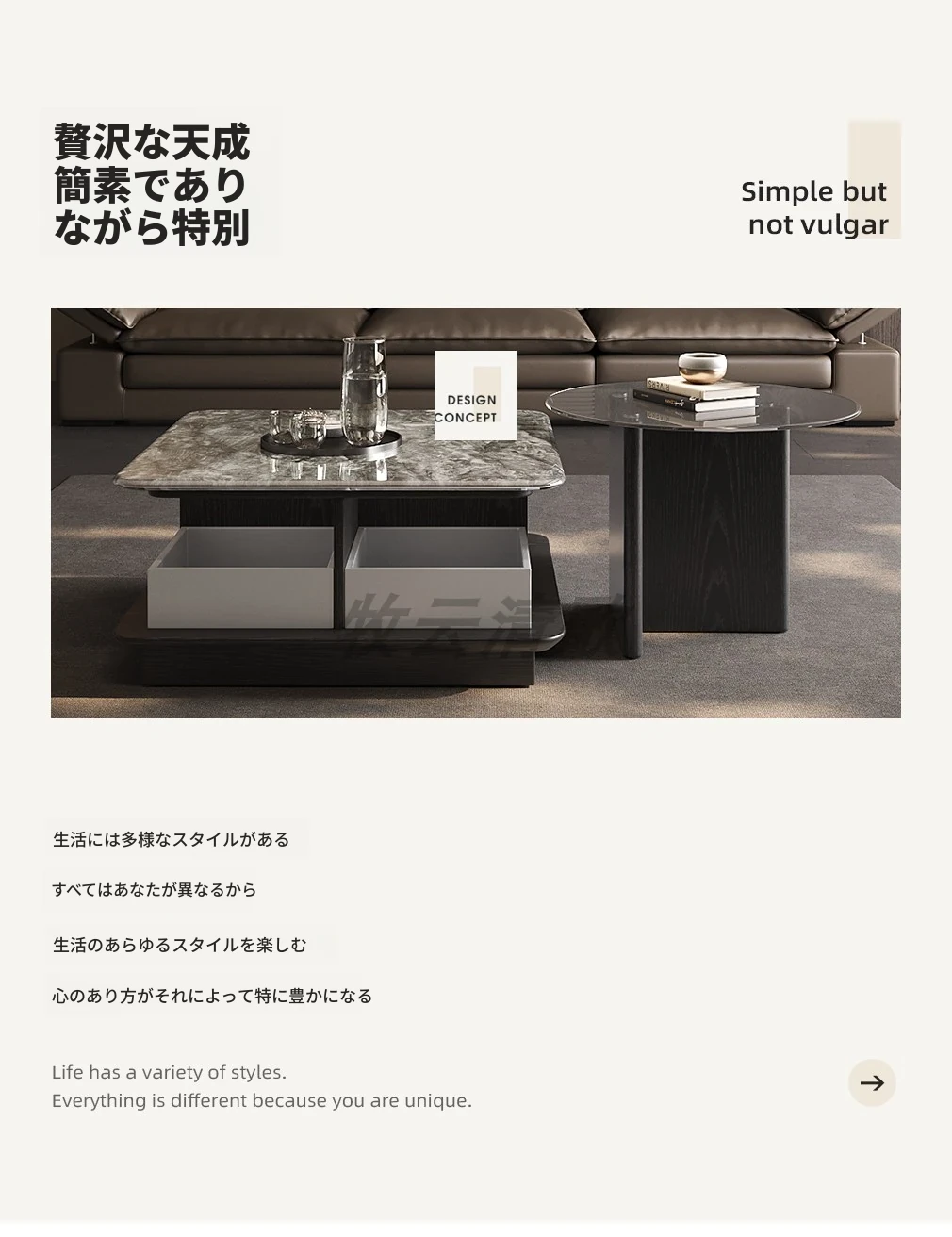 イタリアンミニマリズムの超クリスタルストーンコーヒーテーブルセット – ラグジュアリーでモダンなデザイン、小さなスペースにもぴったりな高級感溢れるリビング用コーヒーテーブル。