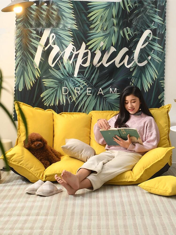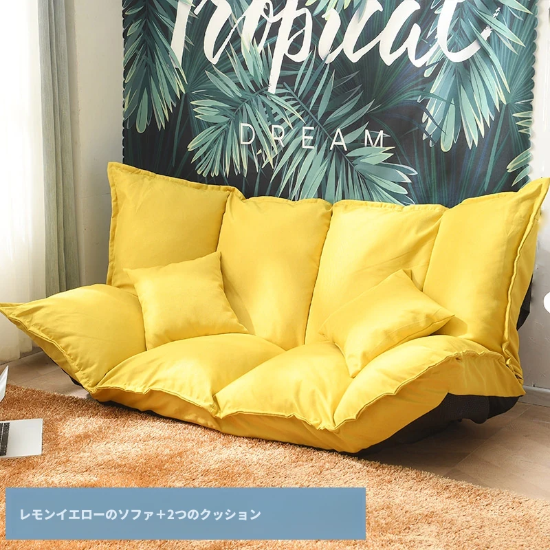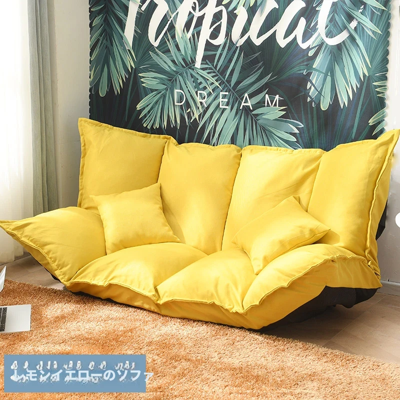 160cmレモンイエローソファ+2つのクッション+カーテン