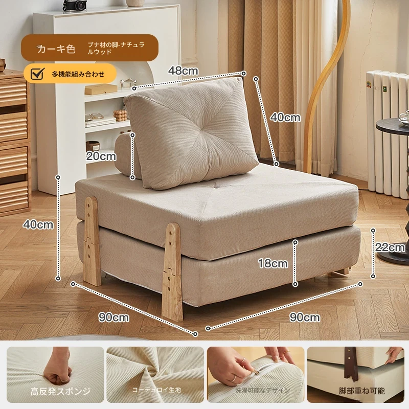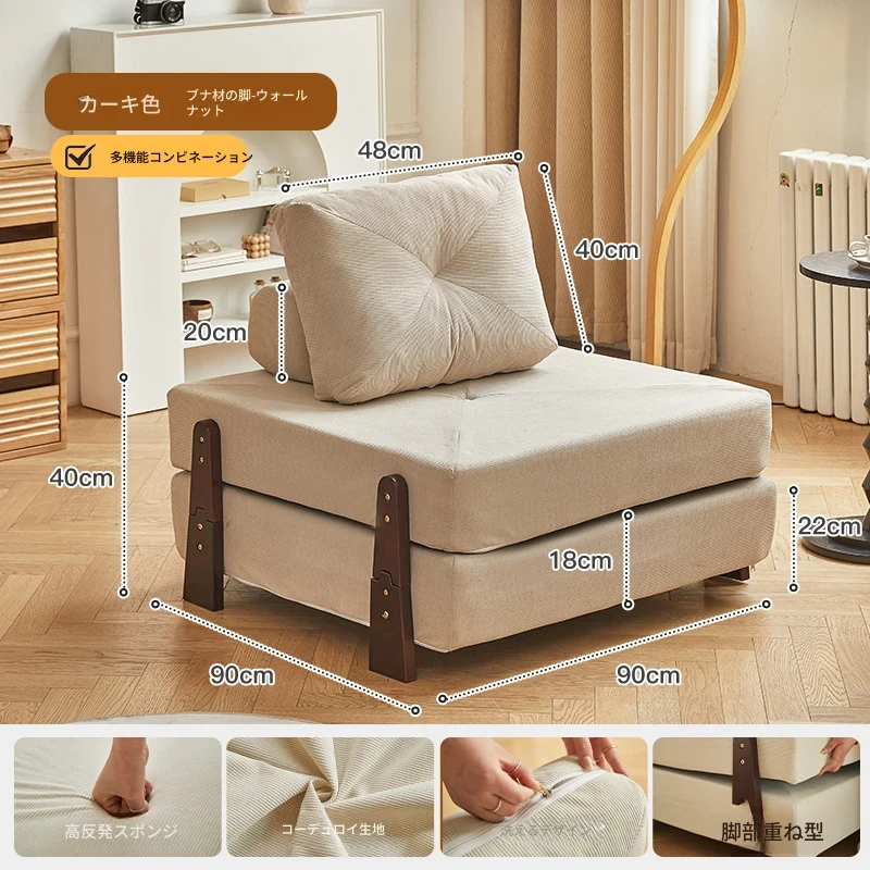 カーキ + ウォールナット色のビーチ材の脚【アップグレード版 睡眠可・リラックス可】