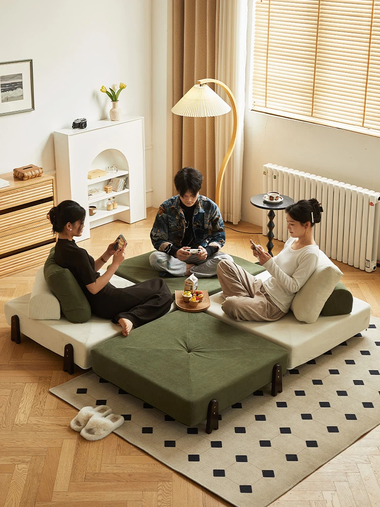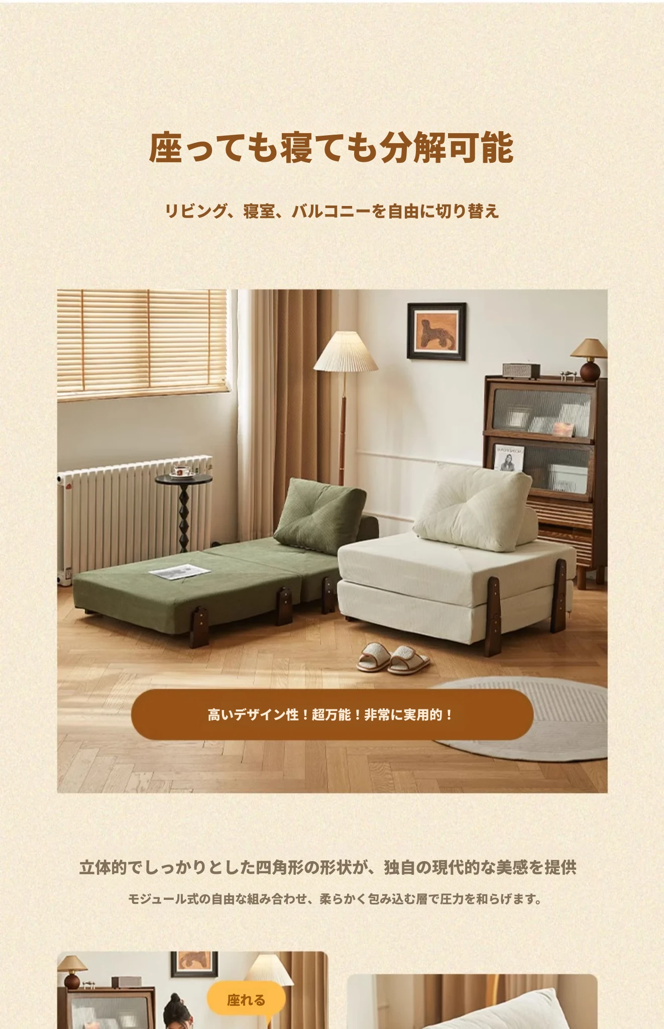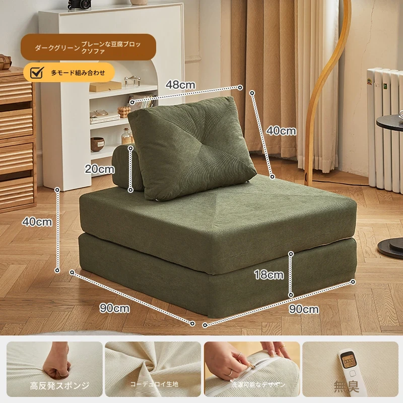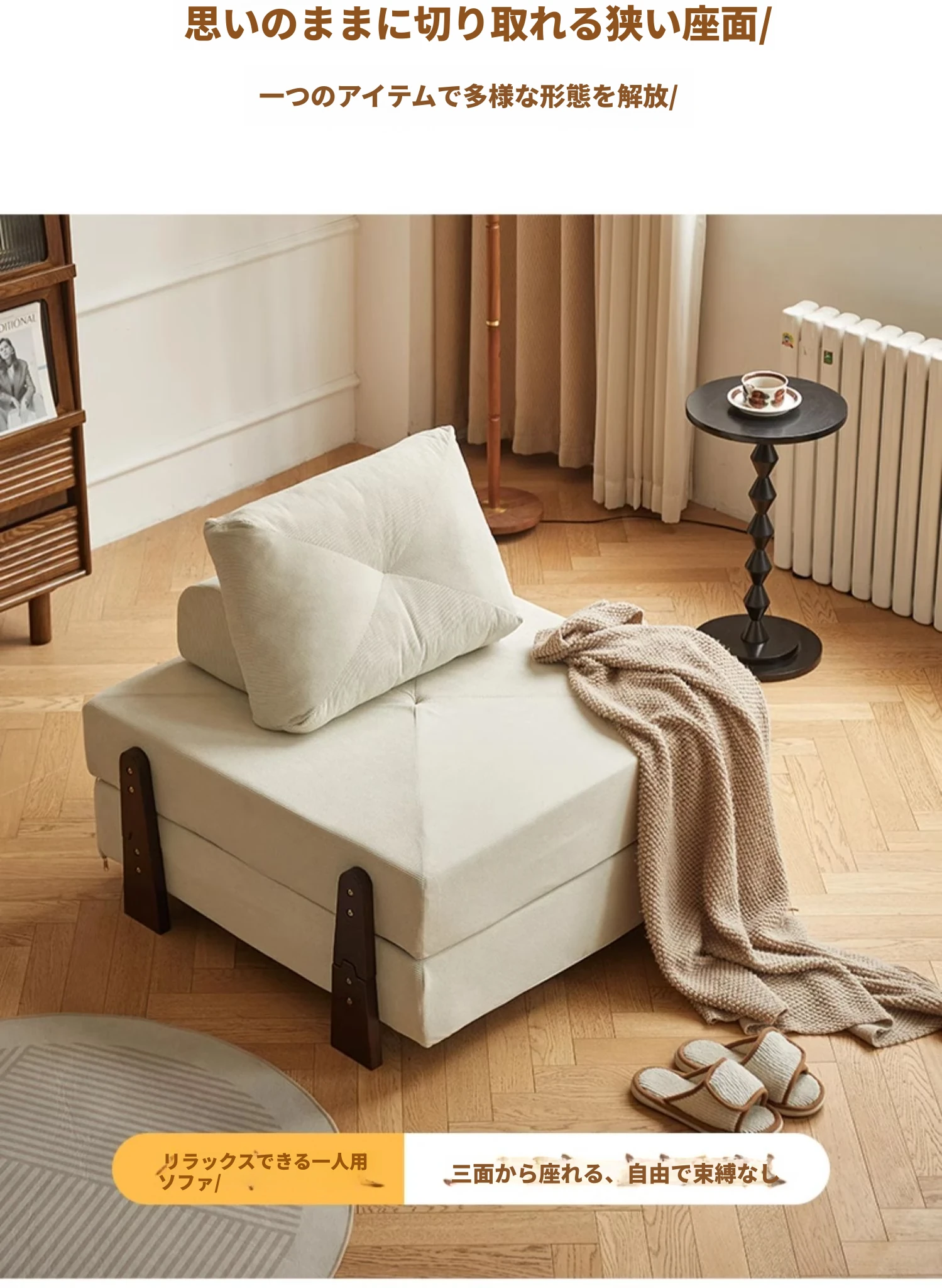 リラックスできる一人用ソファベッド!客間やバルコニー、窓際にぴったりの快適な寝そべりソファ。休憩やリラックスタイムに最適なフロアマットスタイルの畳ソファ。心地よい空間をあなたの生活に!