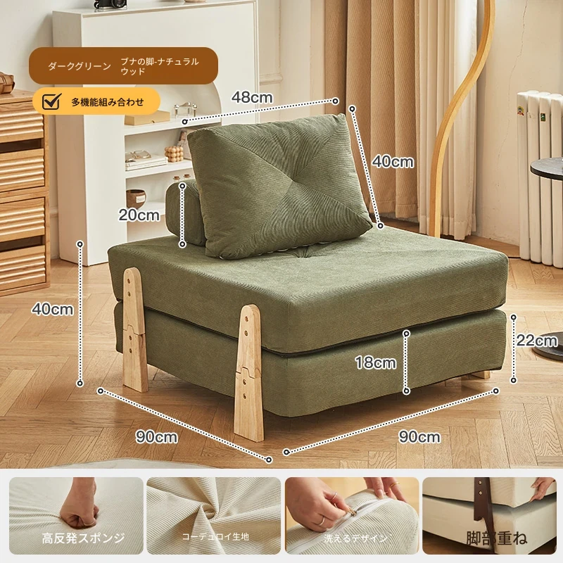 ダークグリーン + ウォールナット色のビーチ材の脚【アップグレード版 睡眠可・リラックス可】