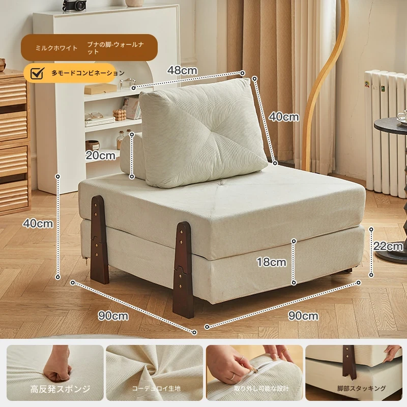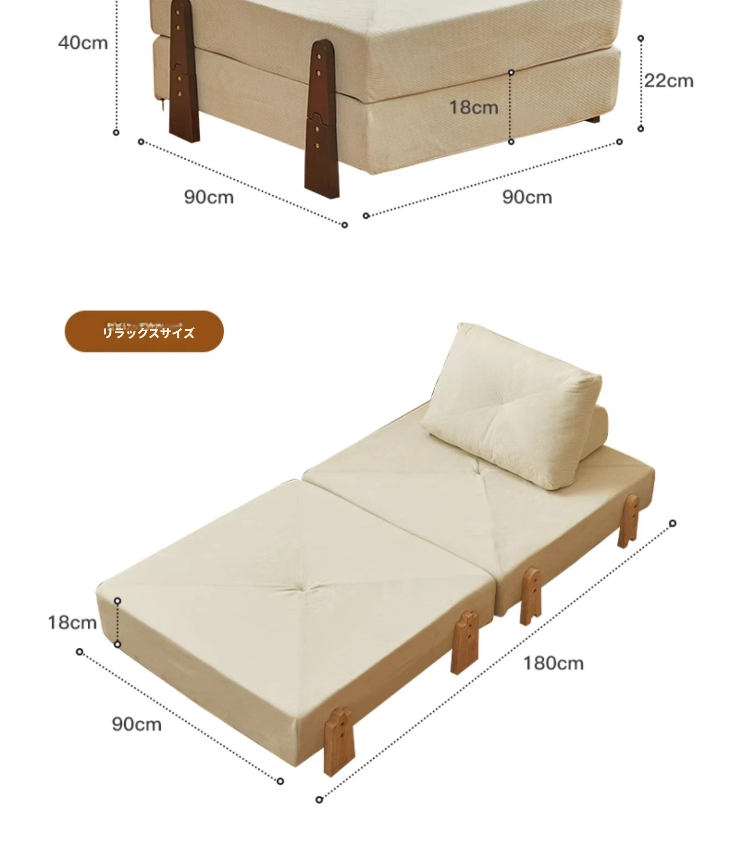 アイボリー + ウォールナット色のビーチ材の脚【アップグレード版 睡眠可・リラックス可】