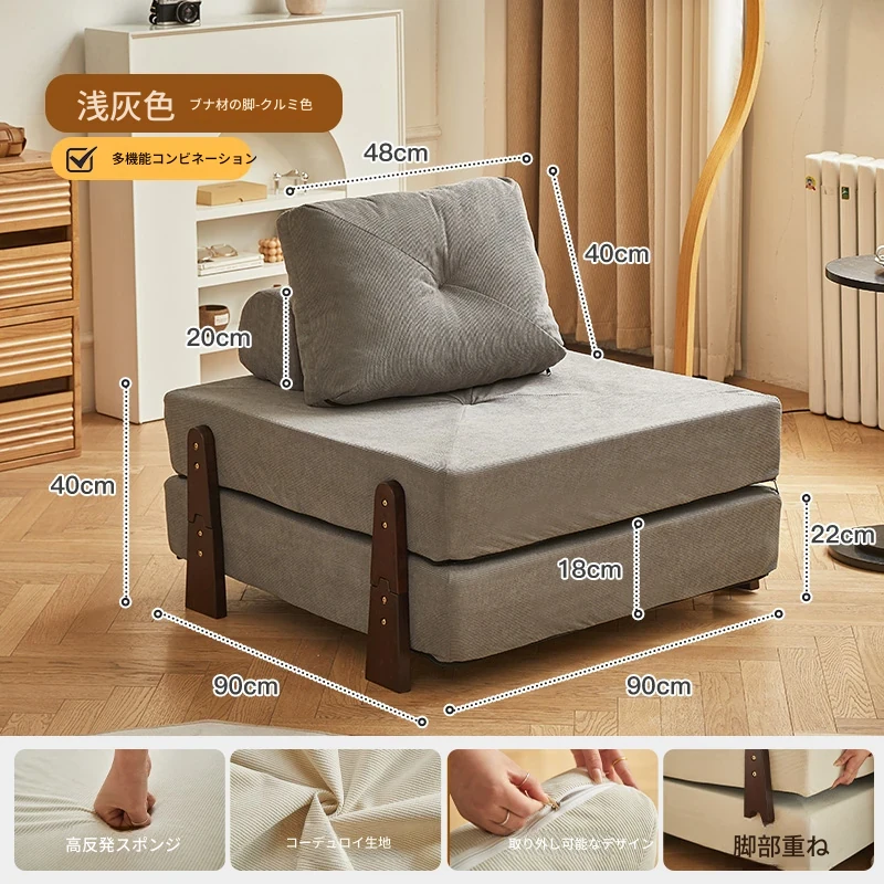 ライトグレー + ナチュラルなビーチ材の脚【アップグレード版 睡眠可・リラックス可】