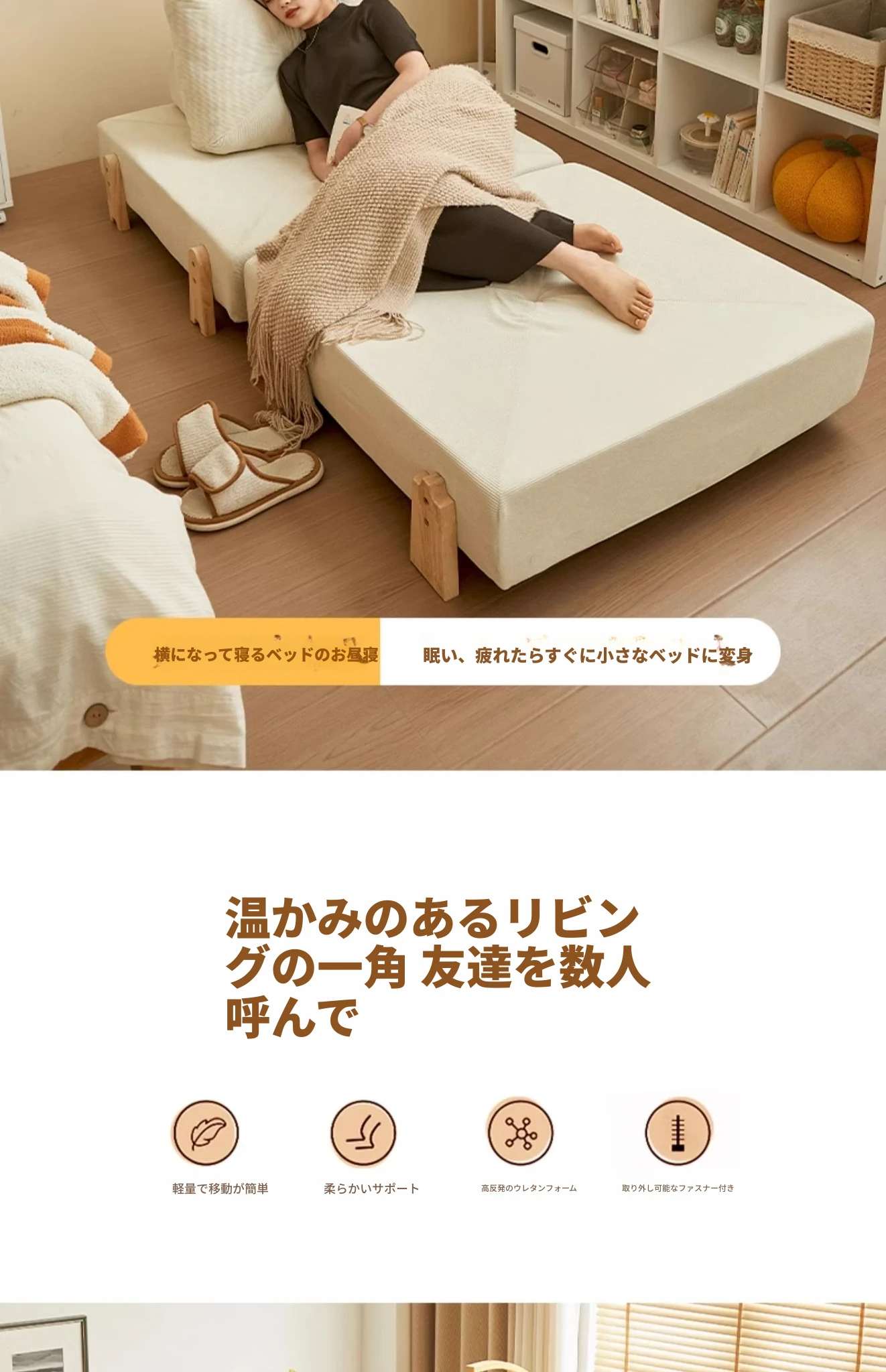 アイボリー + ナチュラルなビーチ材の脚【アップグレード版 睡眠可・リラックス可】