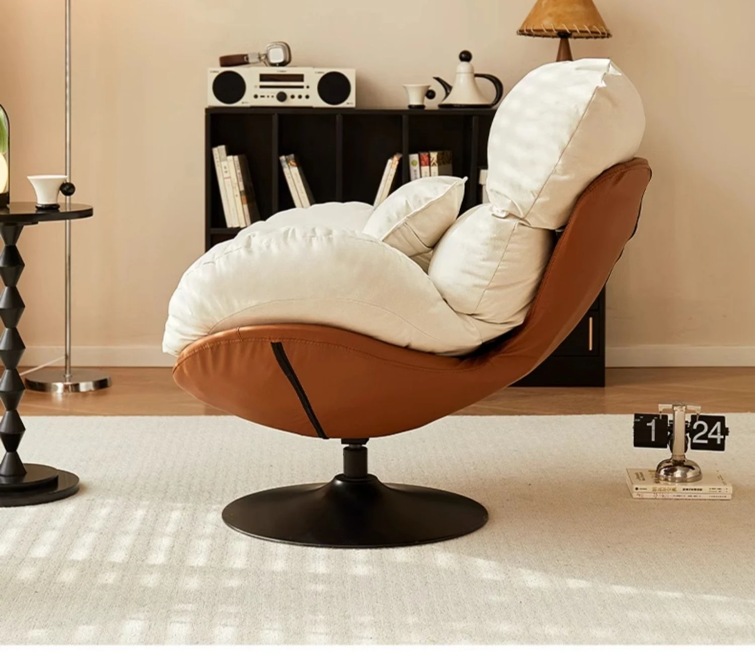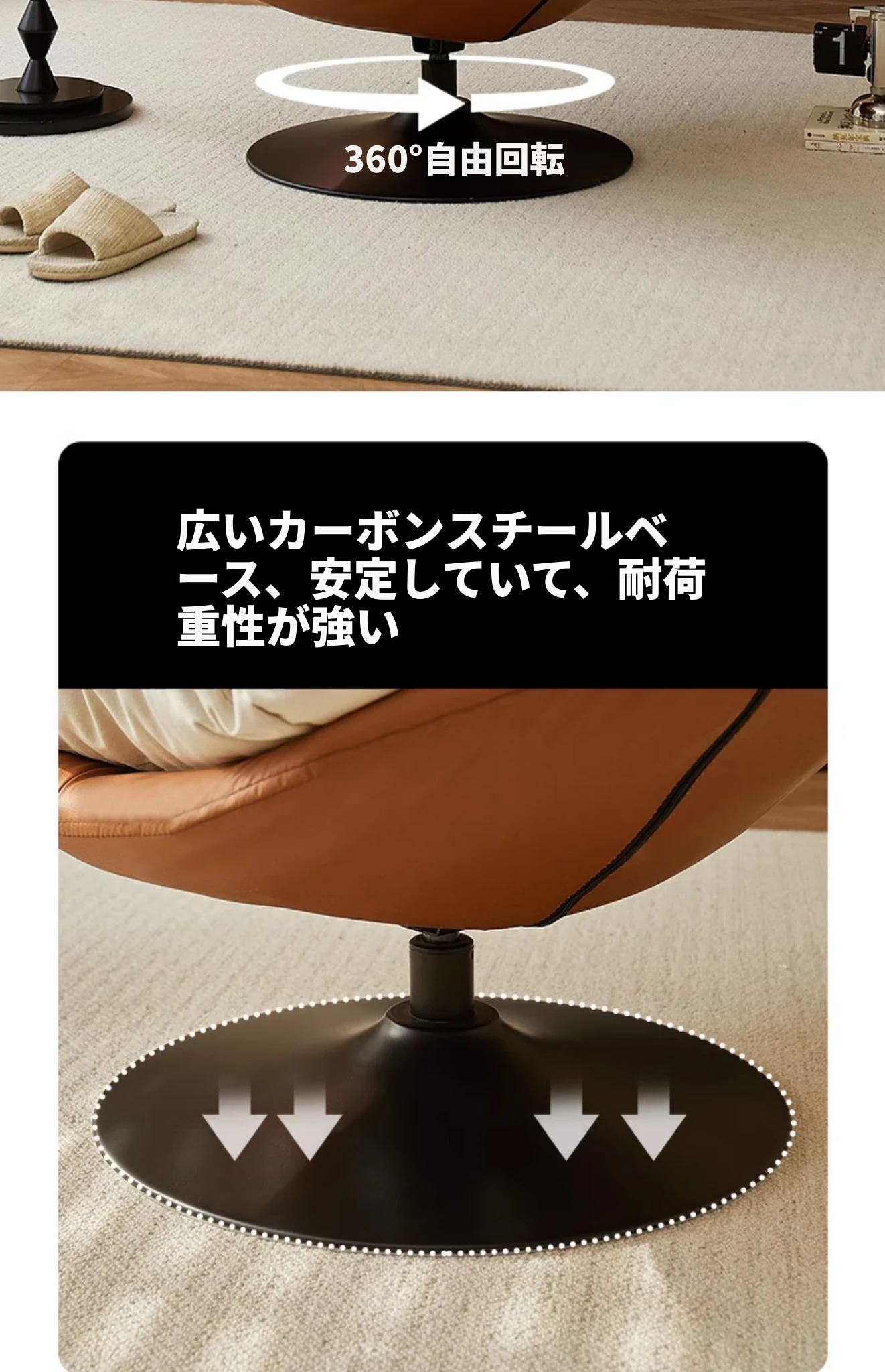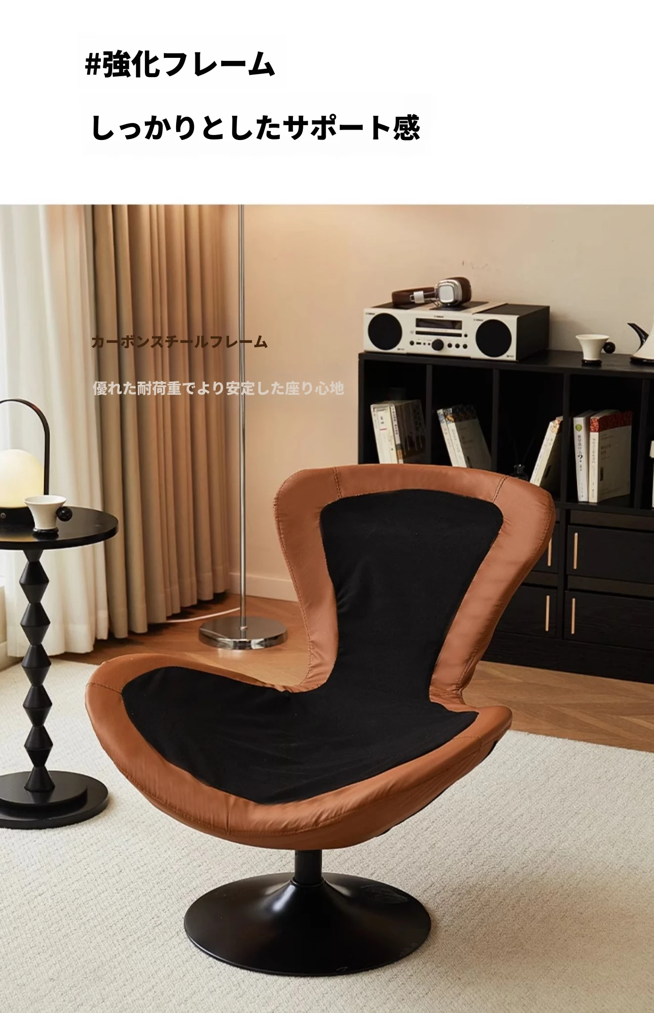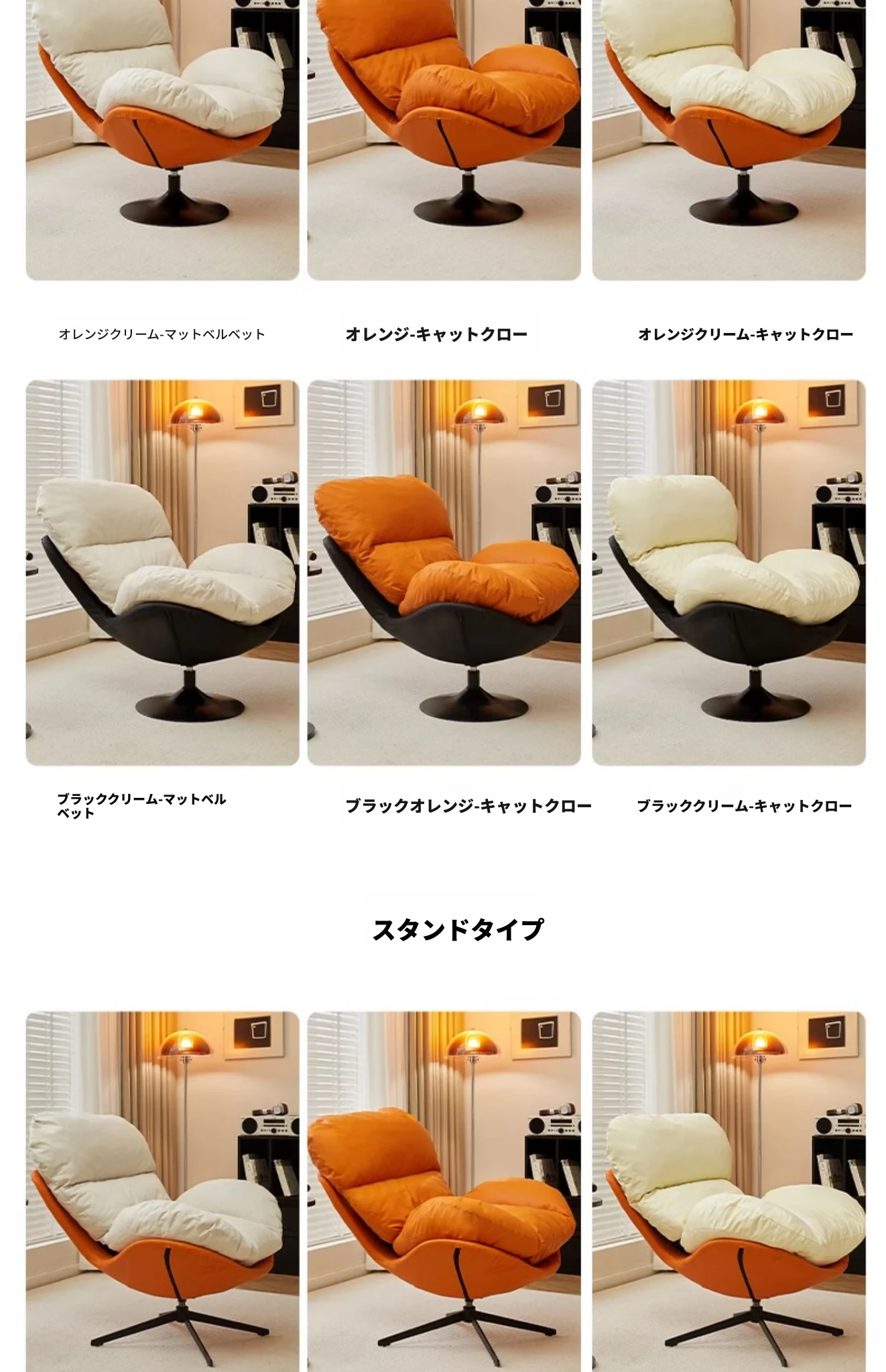 オレンジ&クリーム色マットフロッキー - ブラックトレー【回転可能】