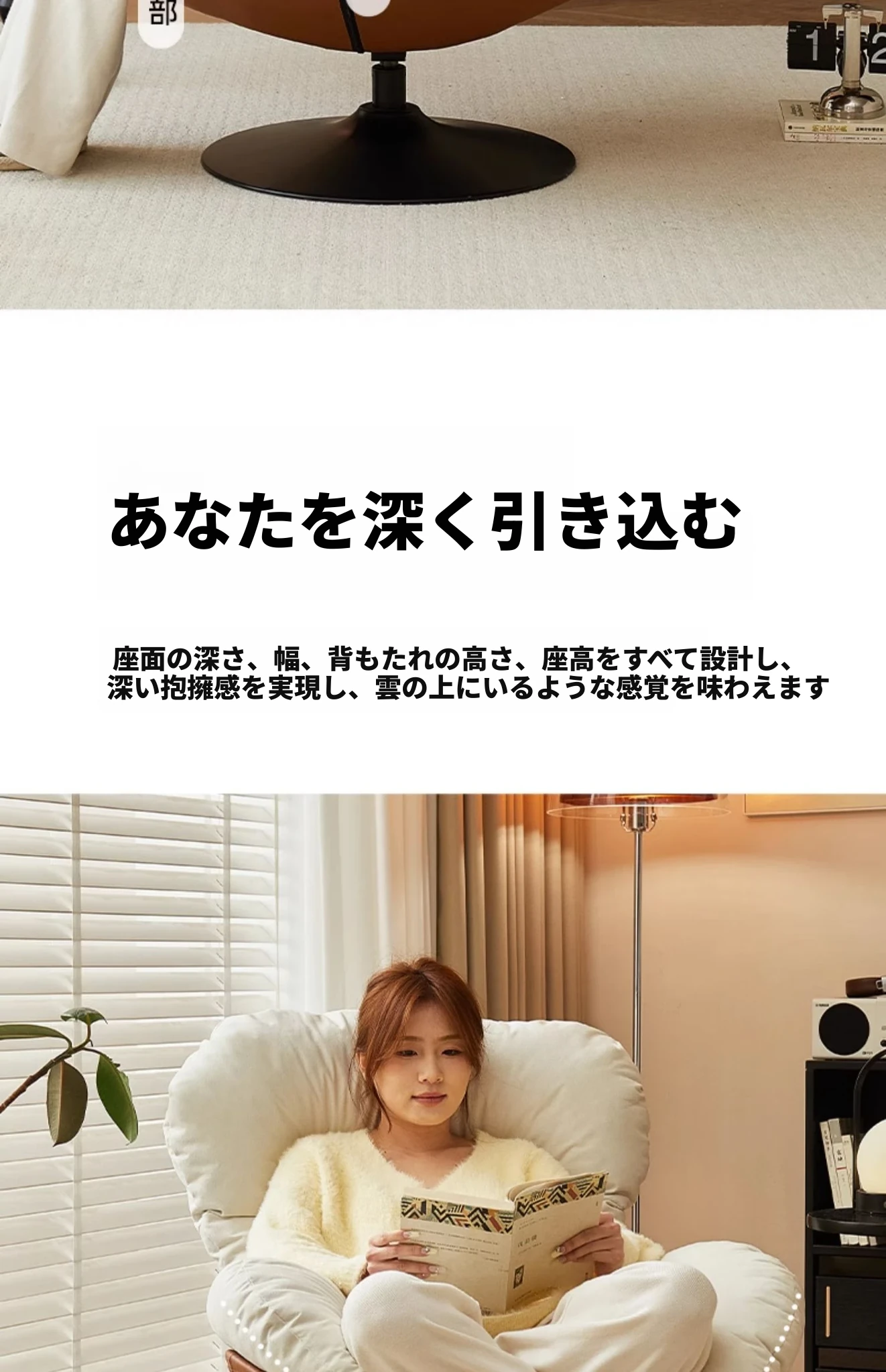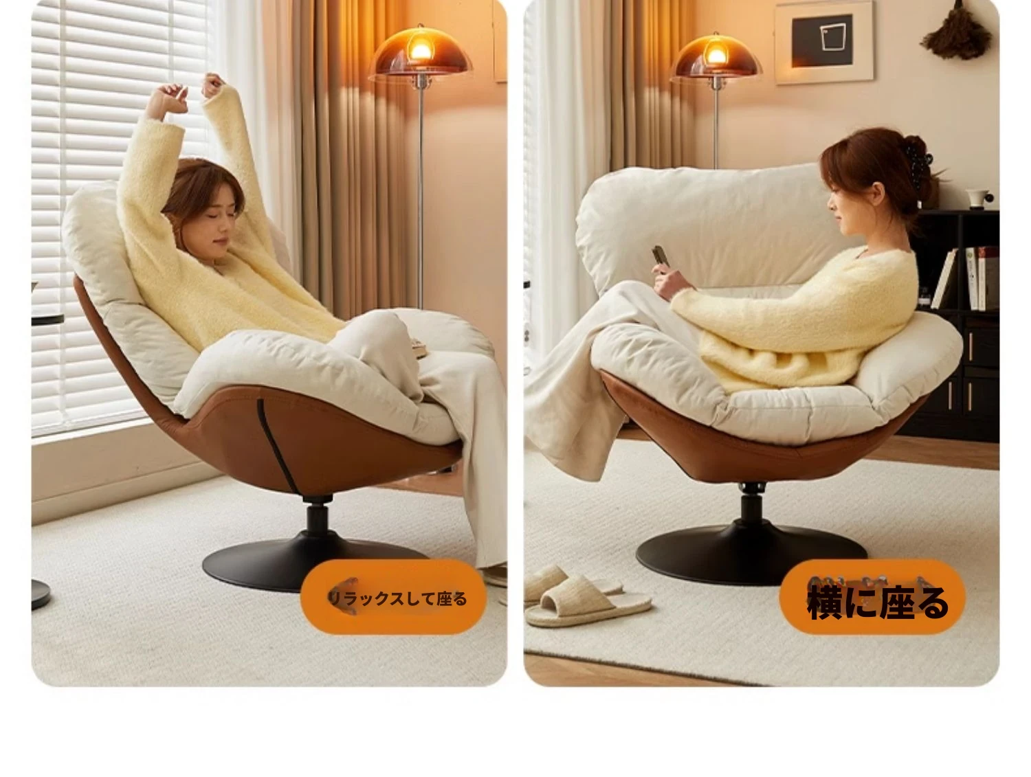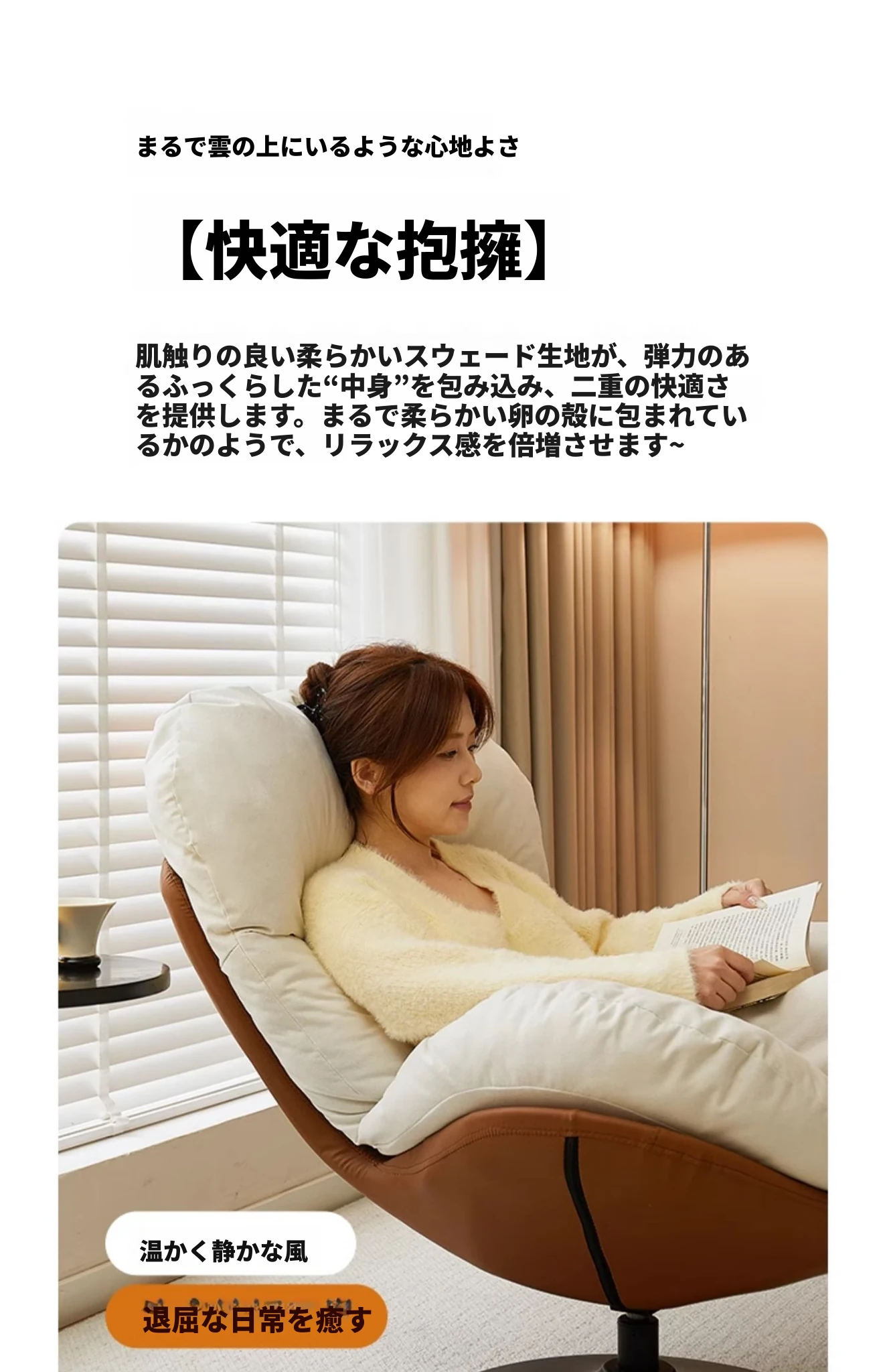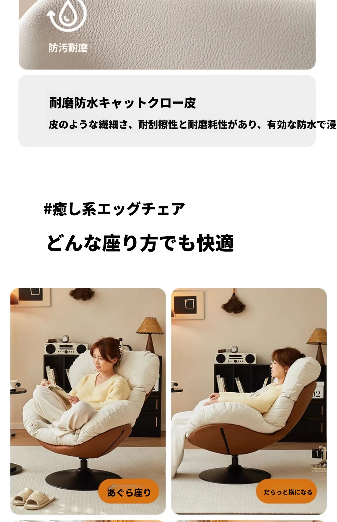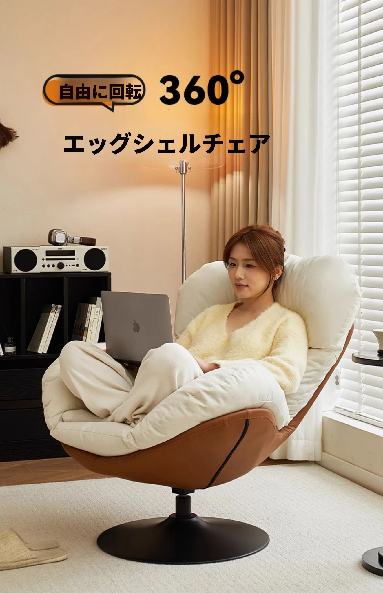 リラックスできる回転式一人用ソファー!寝転んだり、座ったり自由自在。バルコニーやリビングにぴったりのくつろぎスペースを演出するエッグシェイプソファー。快適な時間をあなたに!
