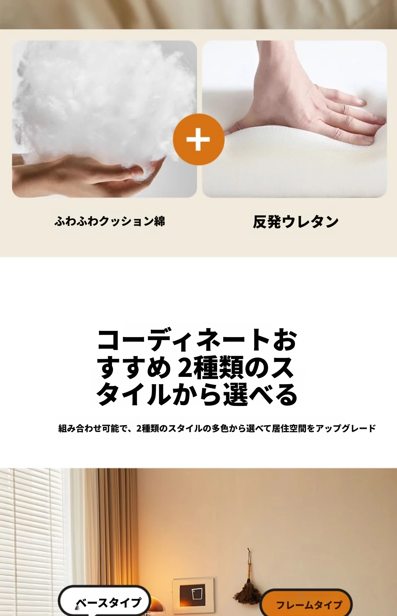 オレンジ&アイボリーのマットフリース - ブラックスタンド