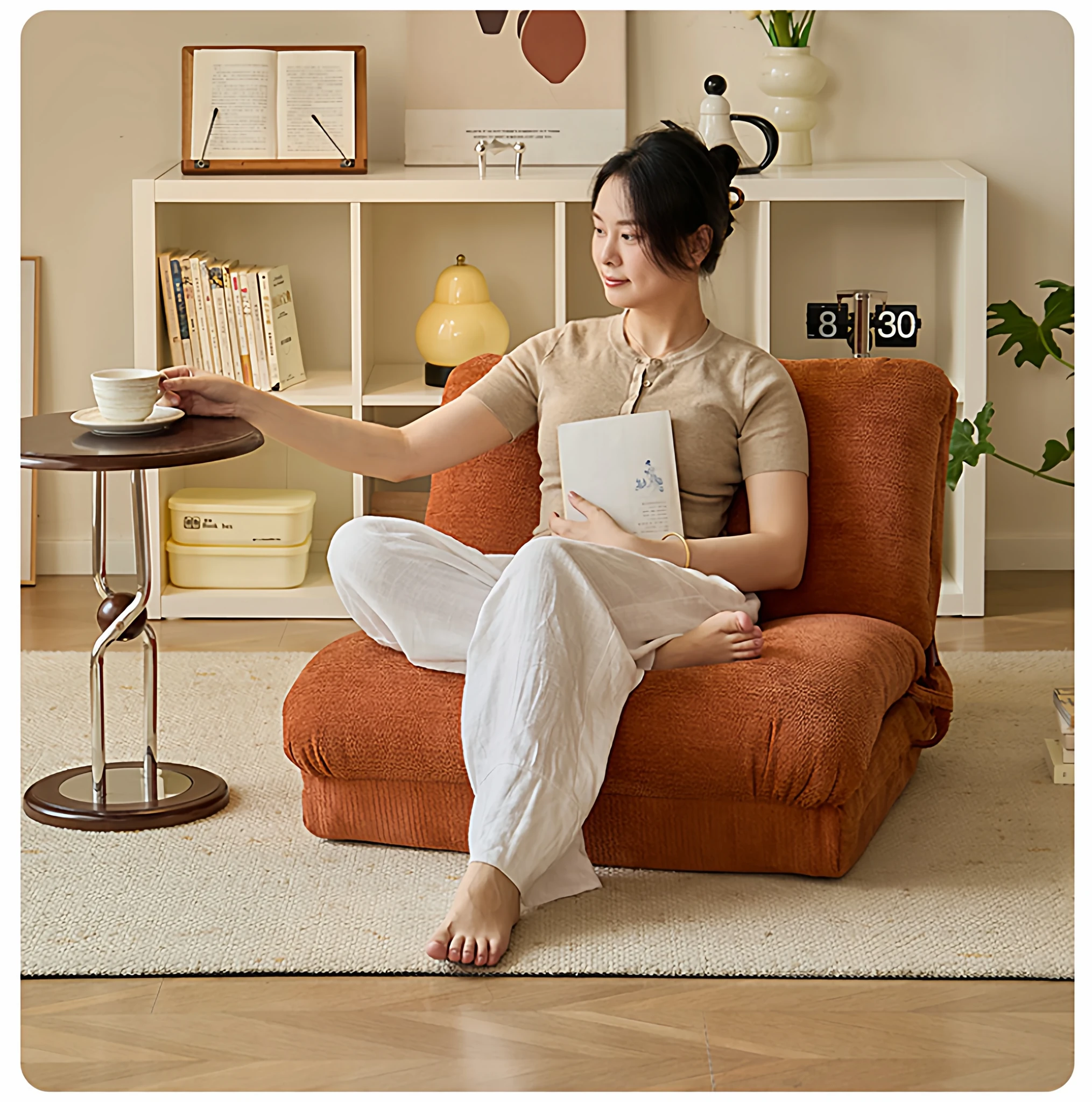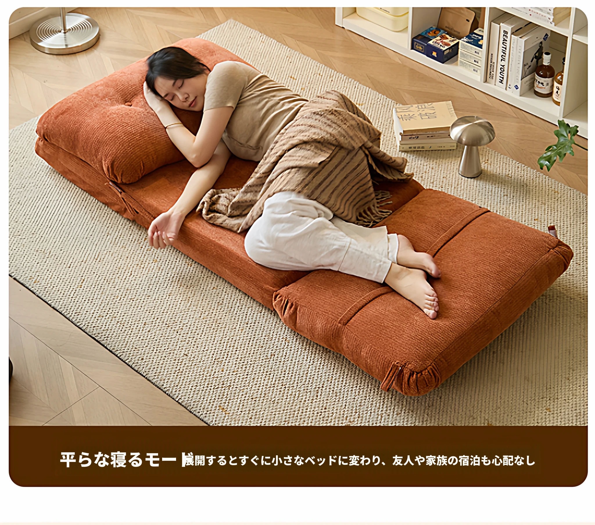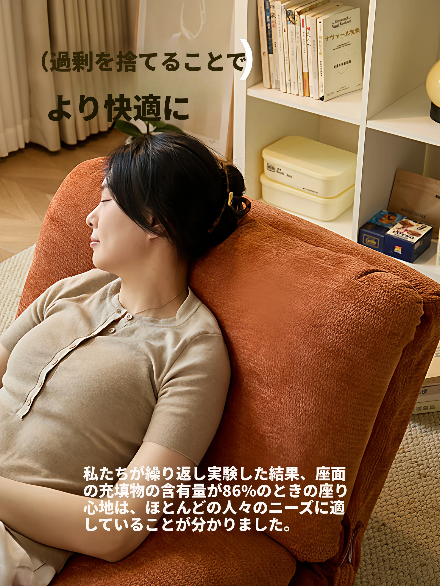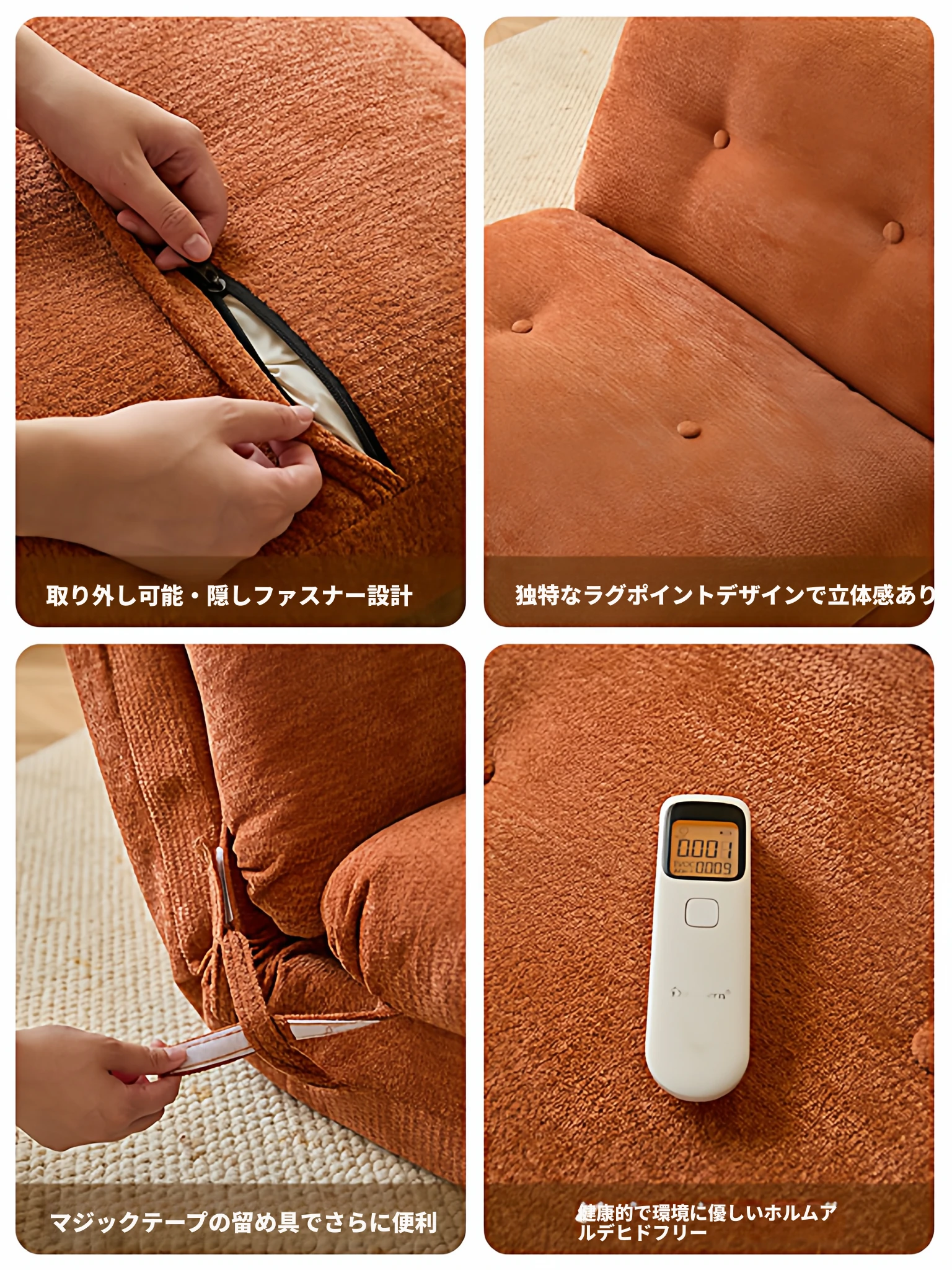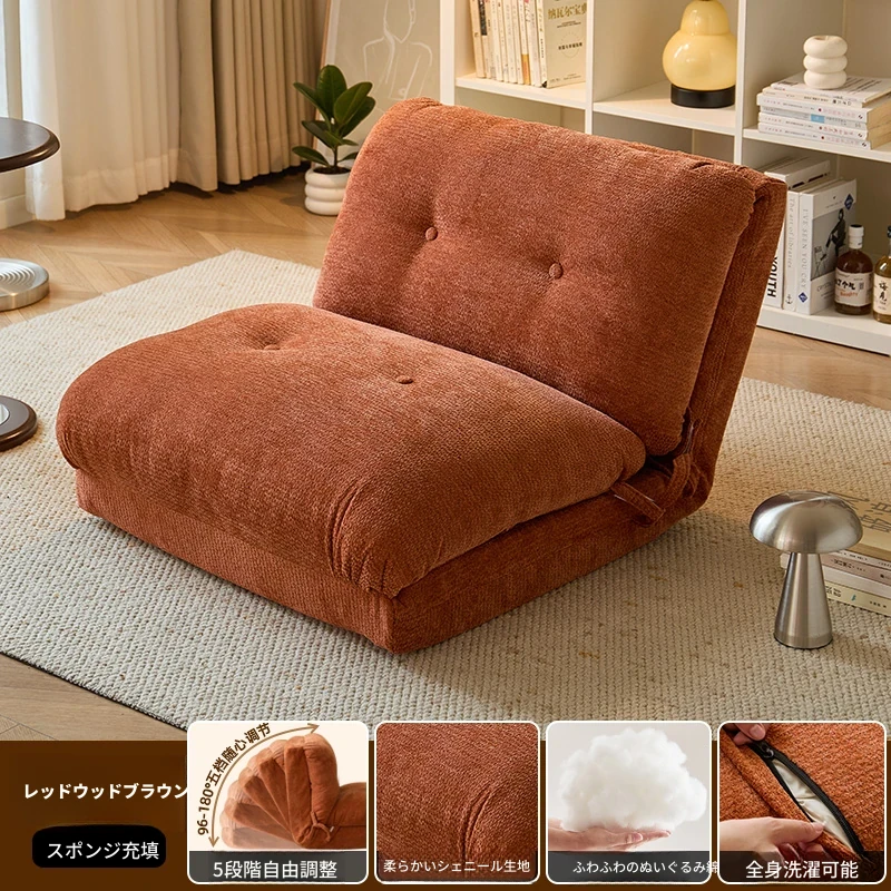 リラックスできるソファ!寝転んでもOK、寝てもOK!寝室やリビングにぴったりの背もたれ付きチェア。地べたで使えるカジュアルなデザインで、畳やバルコニー、窓際にも最適な一人用ソファです。