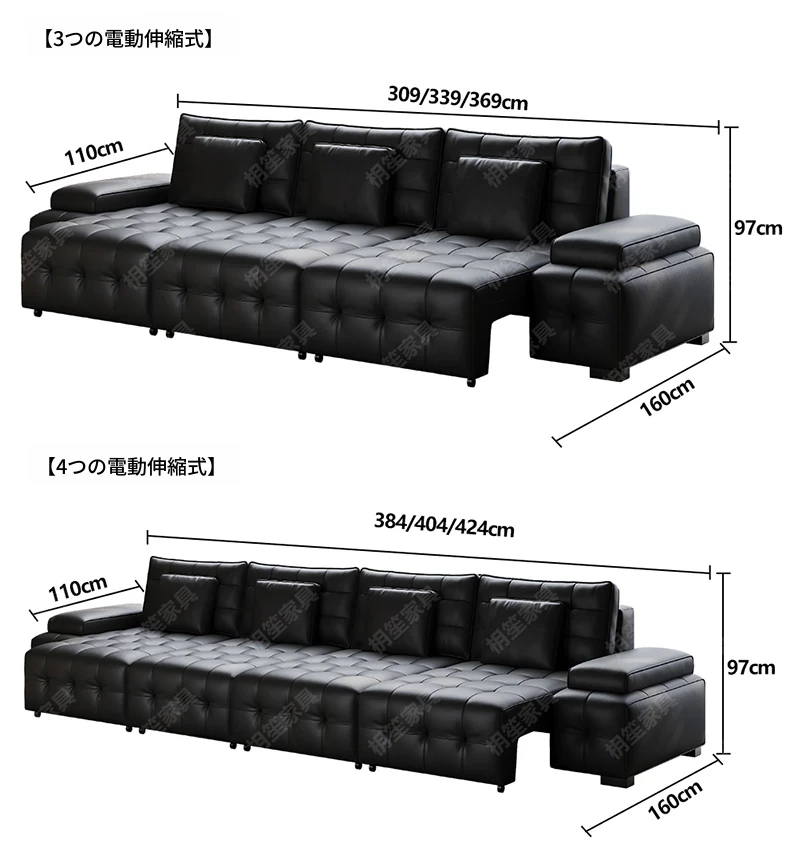 3.09mトリプル電動リクライニング【電動伸縮タイプ/360度全本革】