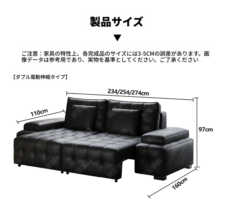 2.74mダブル電動リクライニング【電動伸縮タイプ/360度全本革】