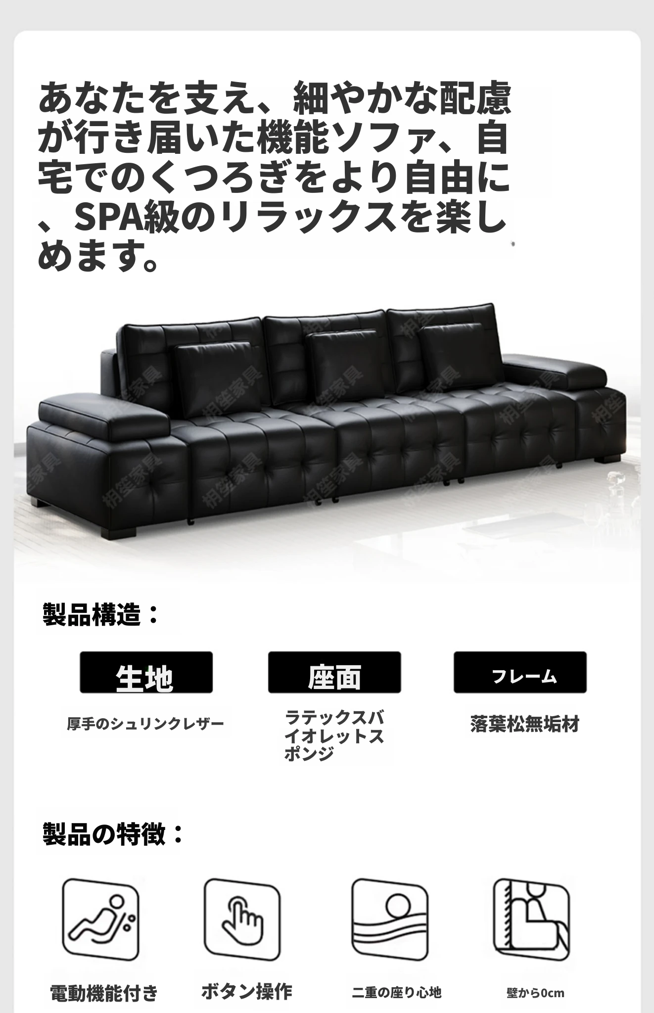 3.09mトリプル電動リクライニング【電動伸縮タイプ/接触面本革】