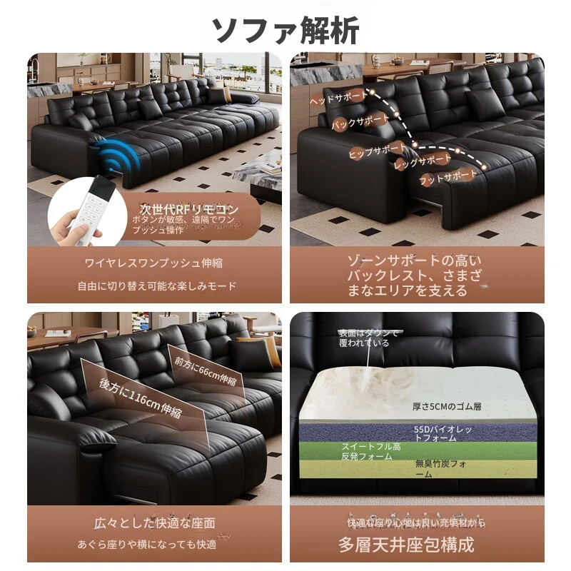 【加厚真皮全覆盖】2.65メートル3人用【ワイヤレスリモコン電動】