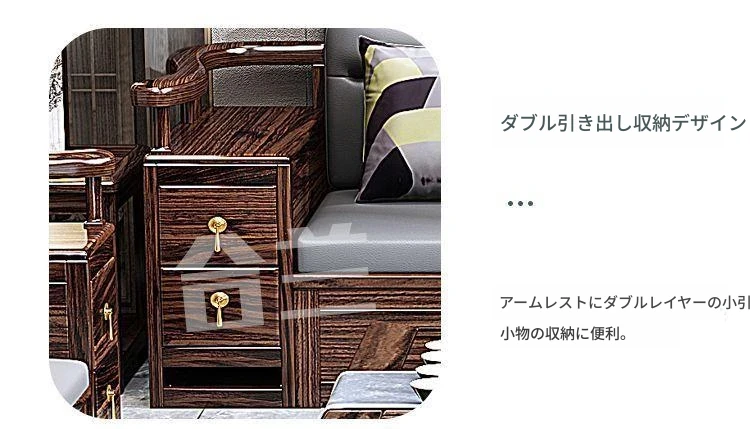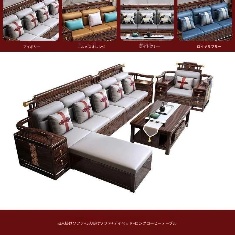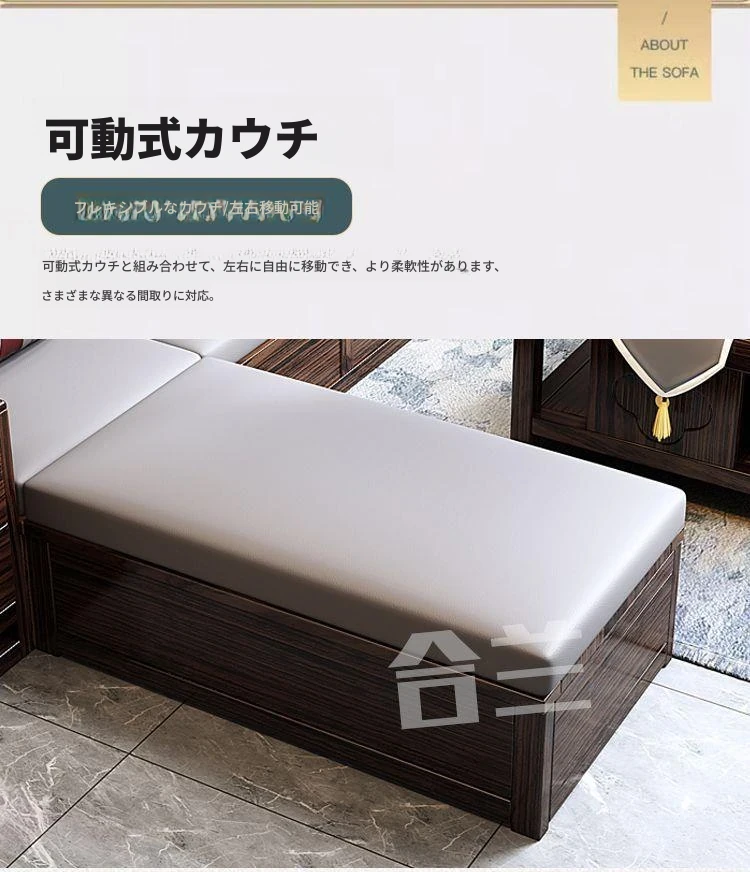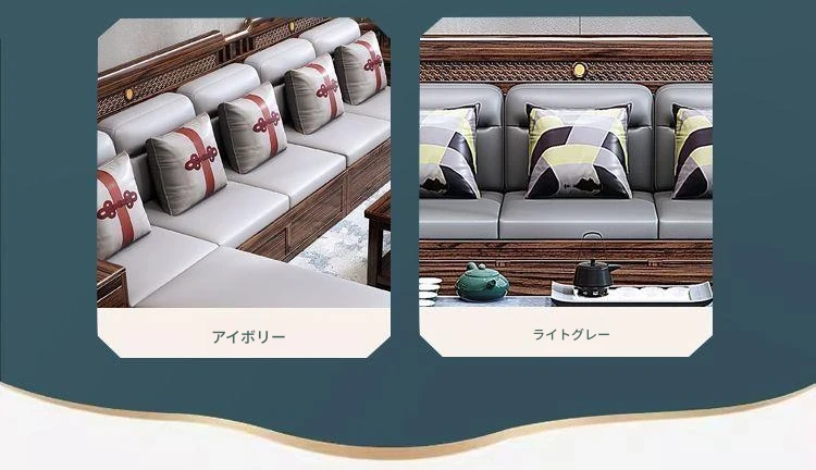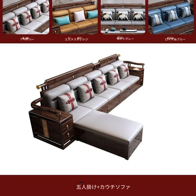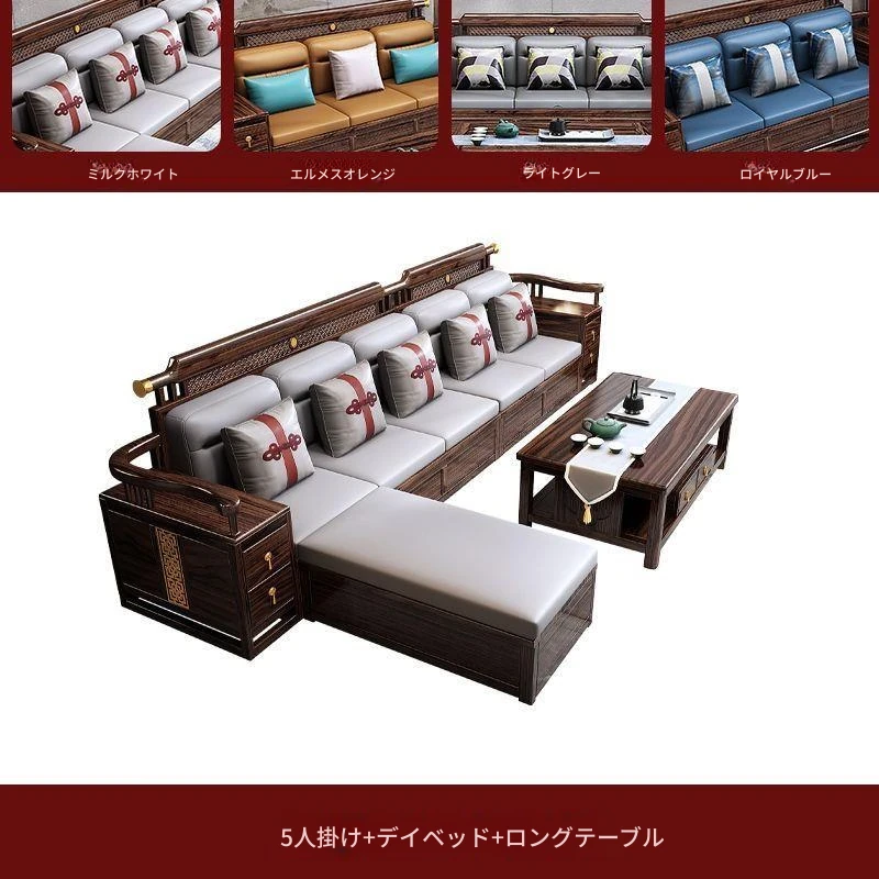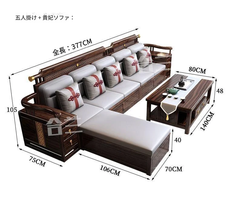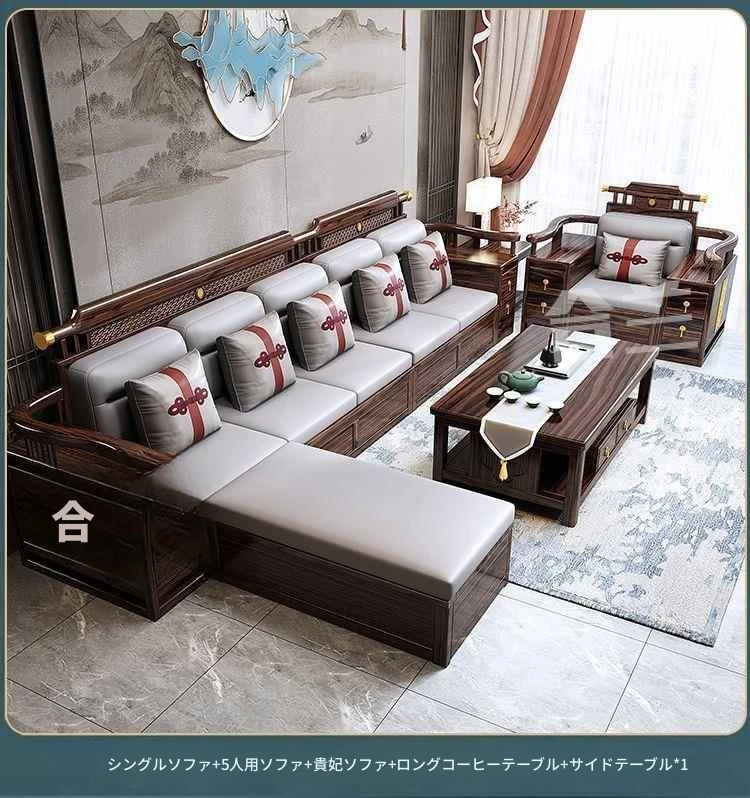 五人掛け+貴妃ソファ+長い茶卓【アップグレード猫爪皮】