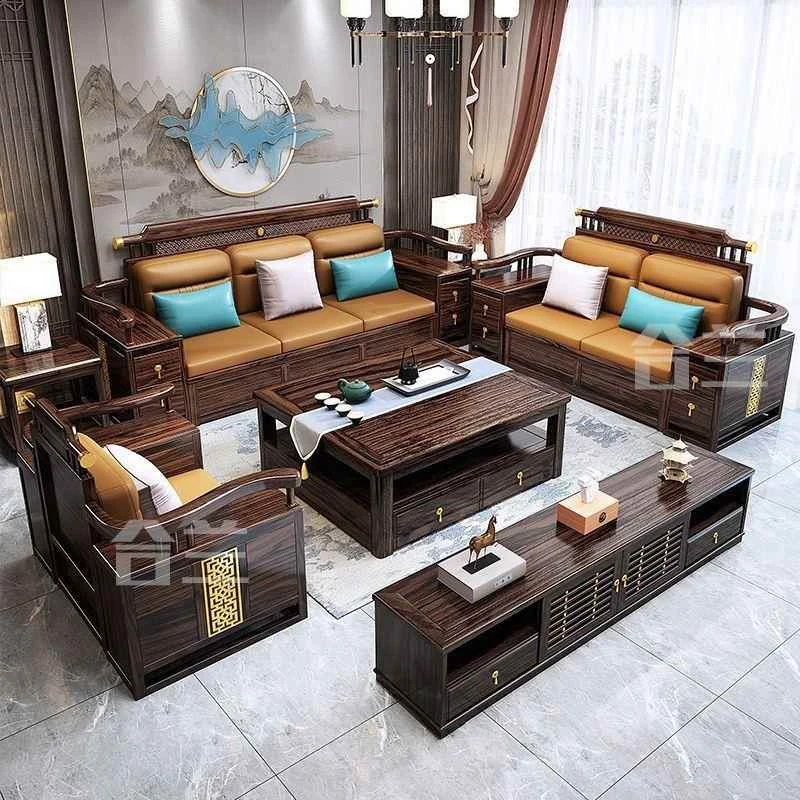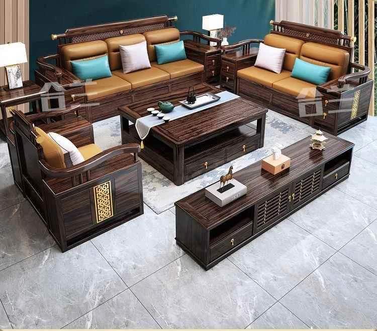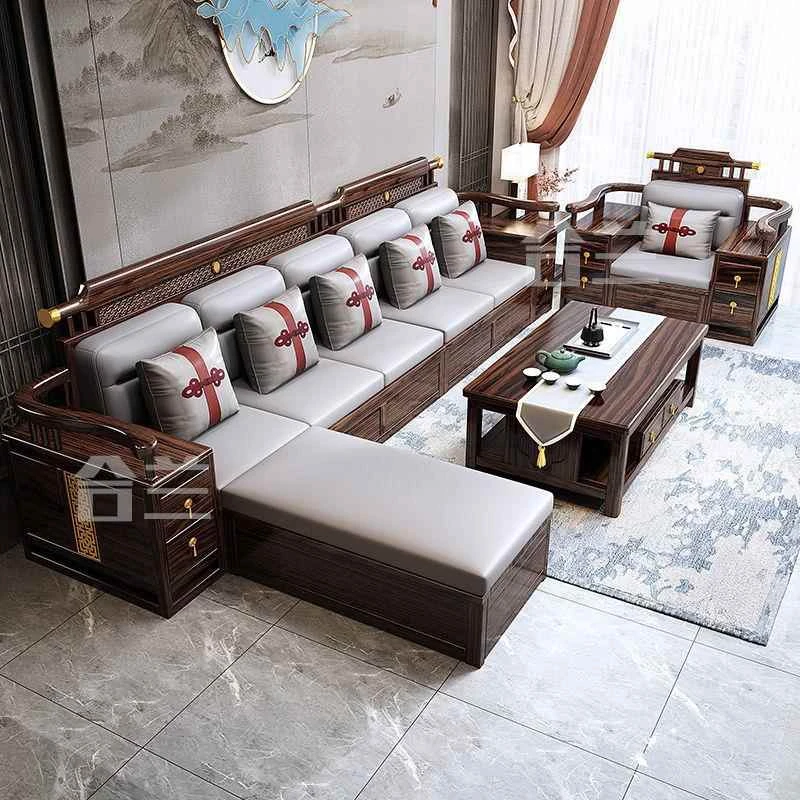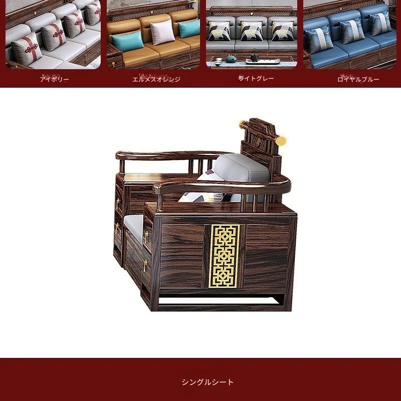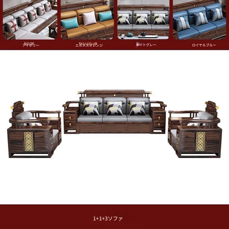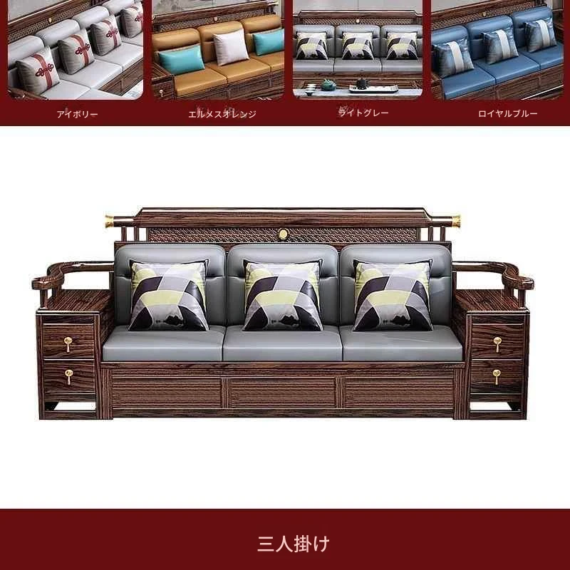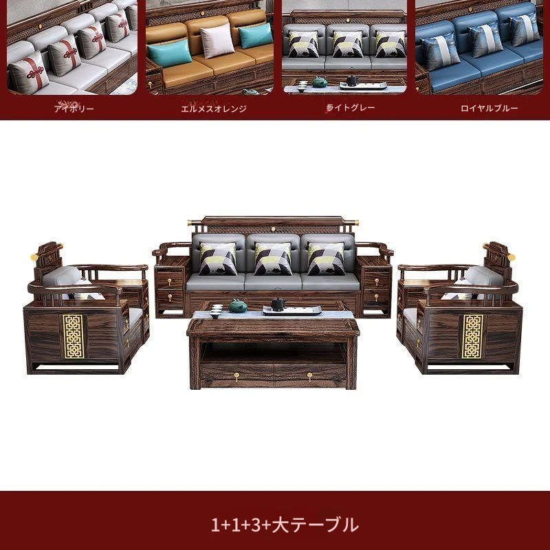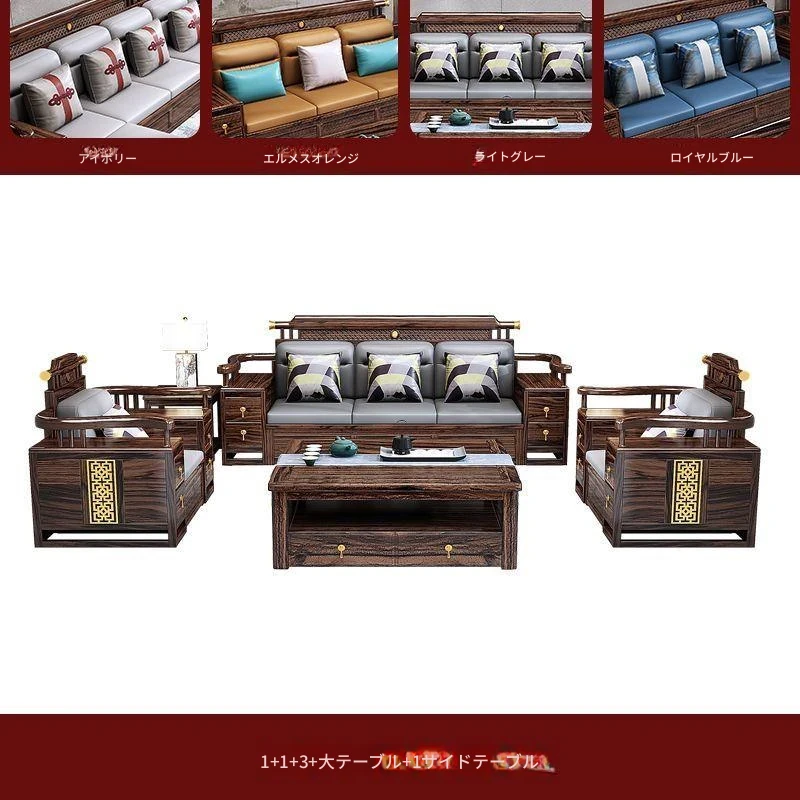 五人掛け+貴妃ソファ+長い茶卓【アップグレード猫爪皮】