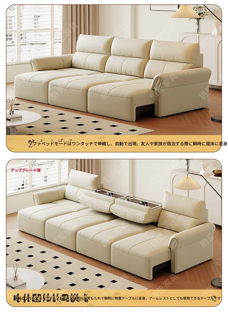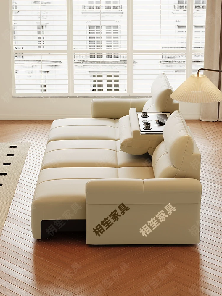 3.8m四電動位【接触面-加厚摔纹頭層牛皮/中位翻蓋茶几】