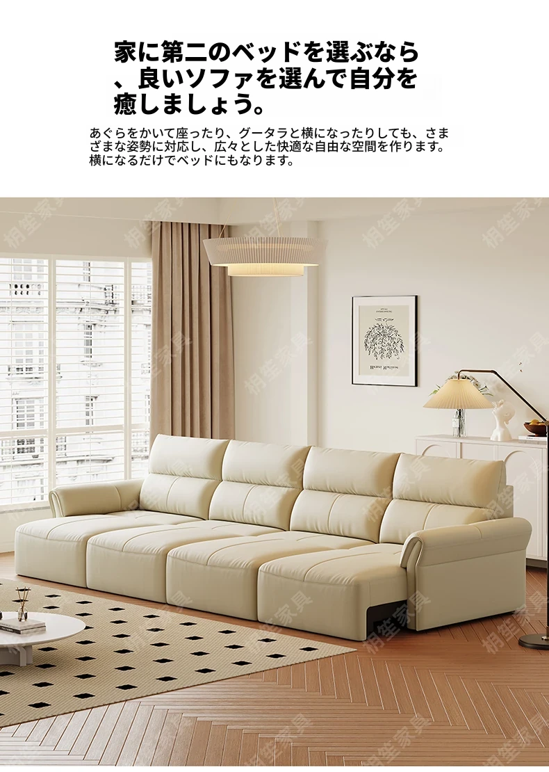 3.7m四電動位【接触面-加厚摔纹頭層牛皮/電動伸縮款】