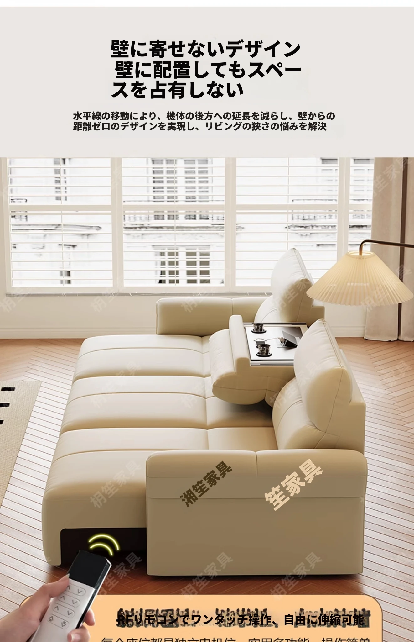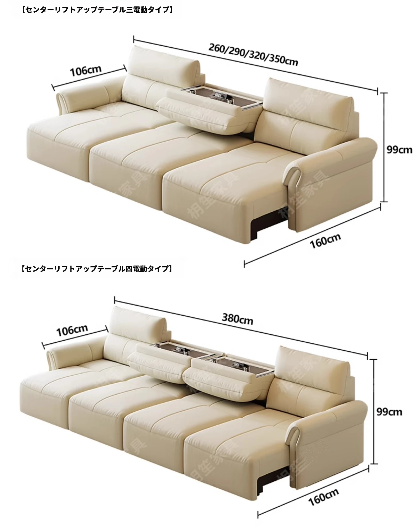 3.8m四電動位【全真皮-加厚摔纹頭層牛皮/中位翻蓋茶几】